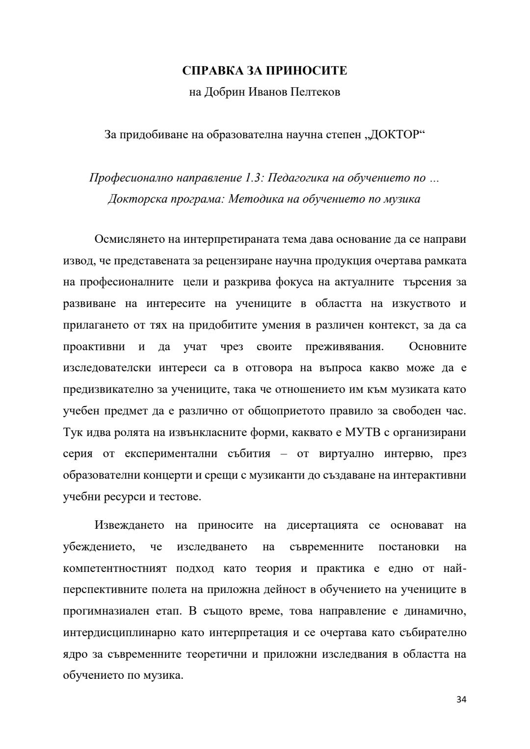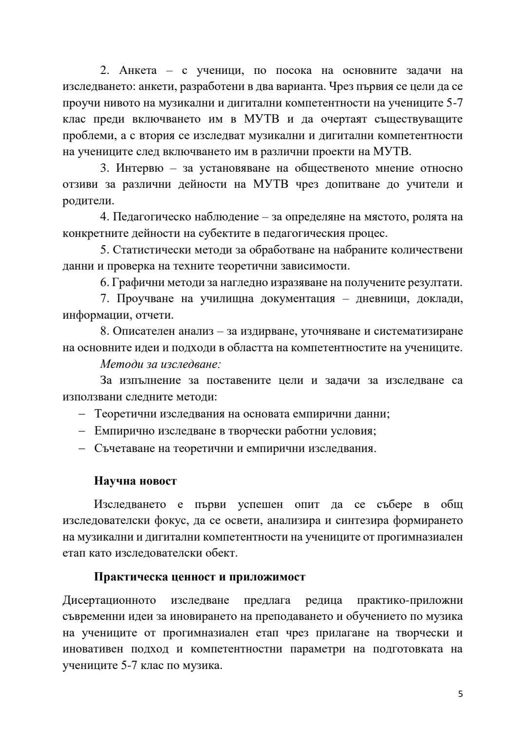 Формиране на музикални и дигитални компетентности при ученици от прогимназиален етап чрез Музикална училищна телевизия : Автореферат / Добрин Иванов Пелтеков ; Науч. ръководител Стефан Русков