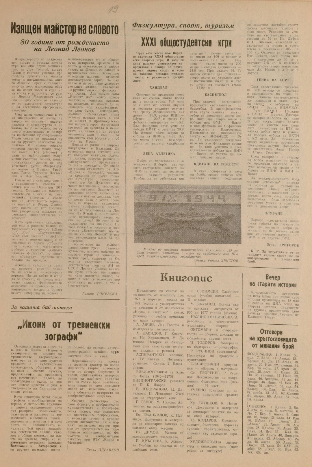 Год.18, 9-10 (211-212). Наука и труд : Орган на университетските комитети на БКП, ДКМС, СБУ и на Ректората при ВТУ "Братя Кирил и Методий"