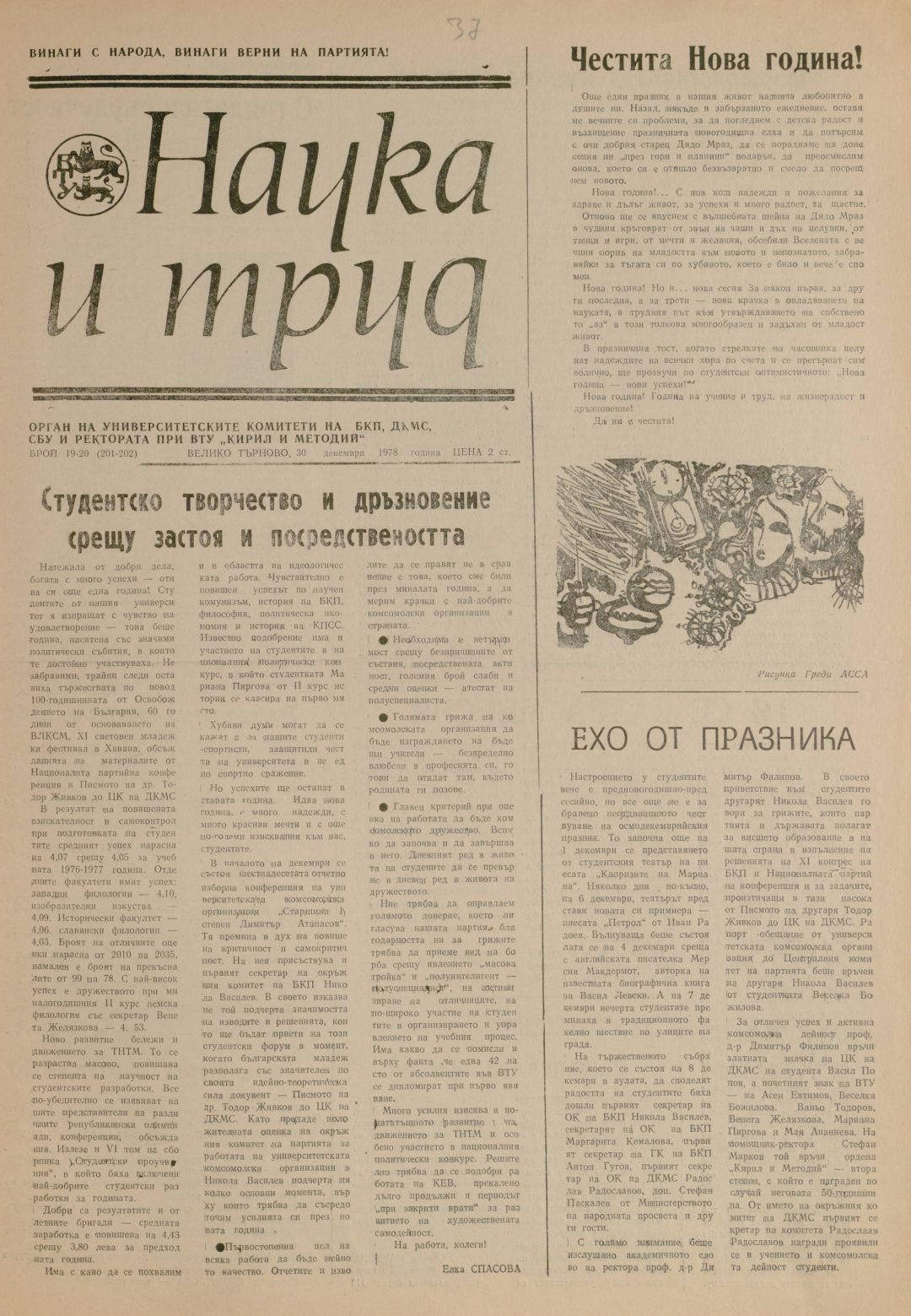 Год.17,19-20 (201-202). Наука и труд : Орган на университетските организации на БКП, ДКМС, СУ и Ректората при ВПИ "Братя Кирил и Методий"