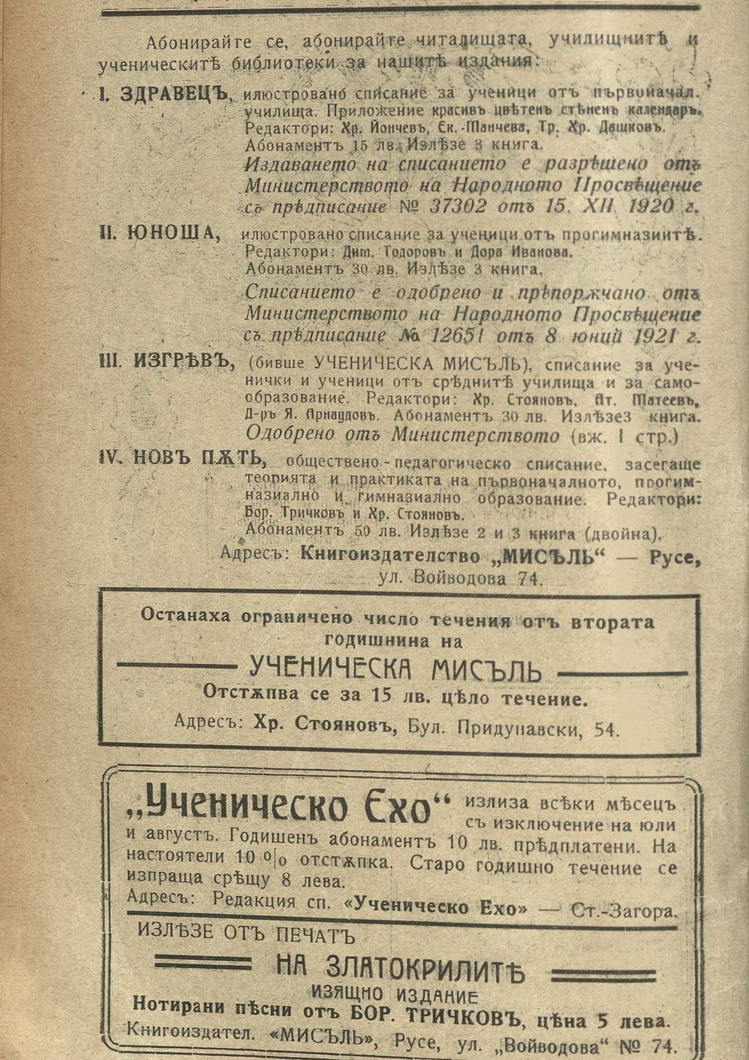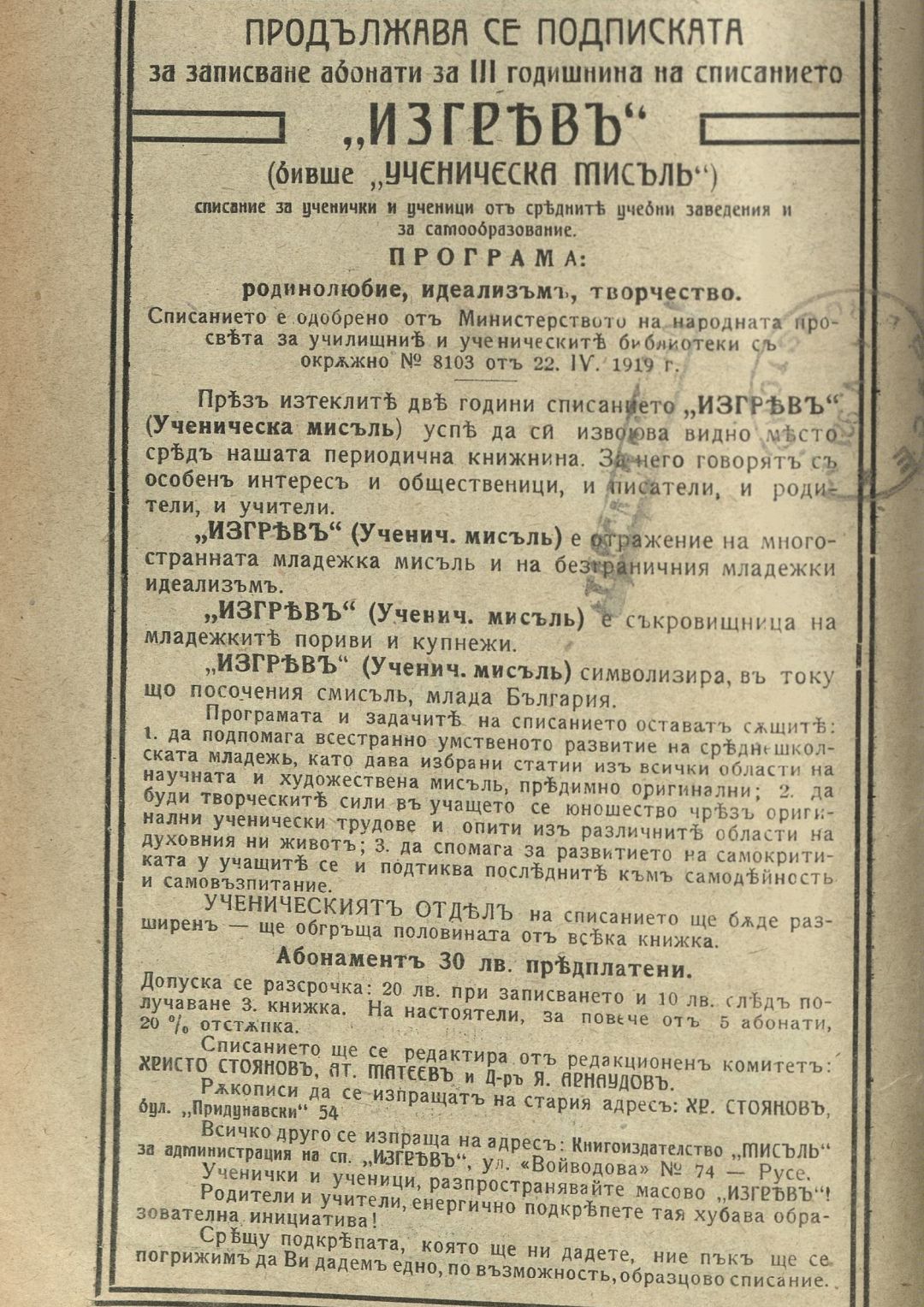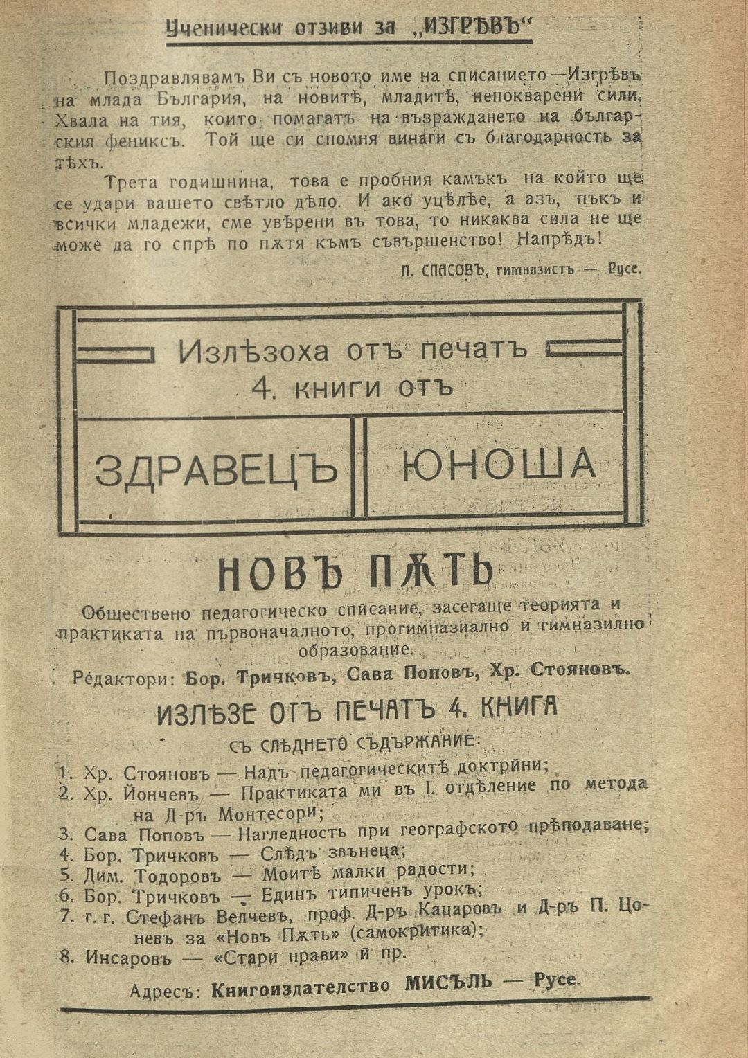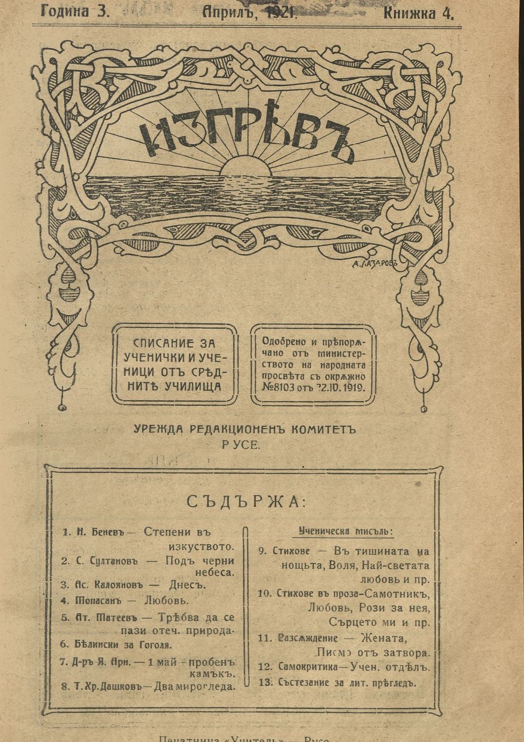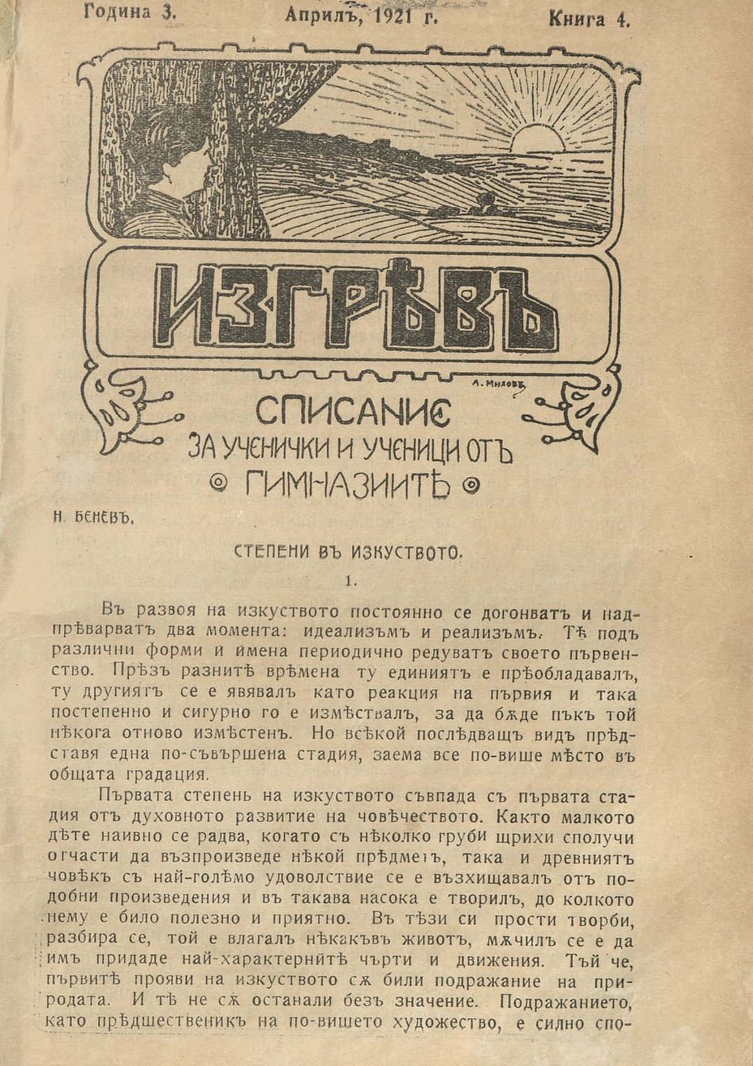 Год. 3, Кн. 4. Изгрев : Списание за ученички и ученици от средните училища