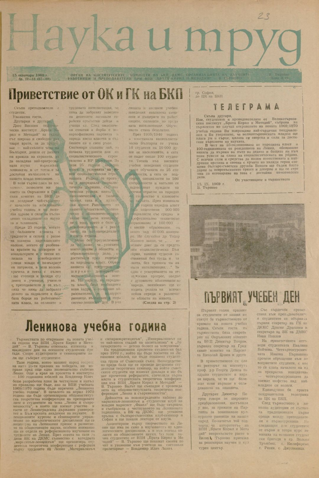 Год. 7,12-13 (67-68). Наука и труд : Орган на институтските комитети на БКП, ДКМС и Организацията на преподавателите и служителите при ВПИ "Братя Кирил и Методий"
