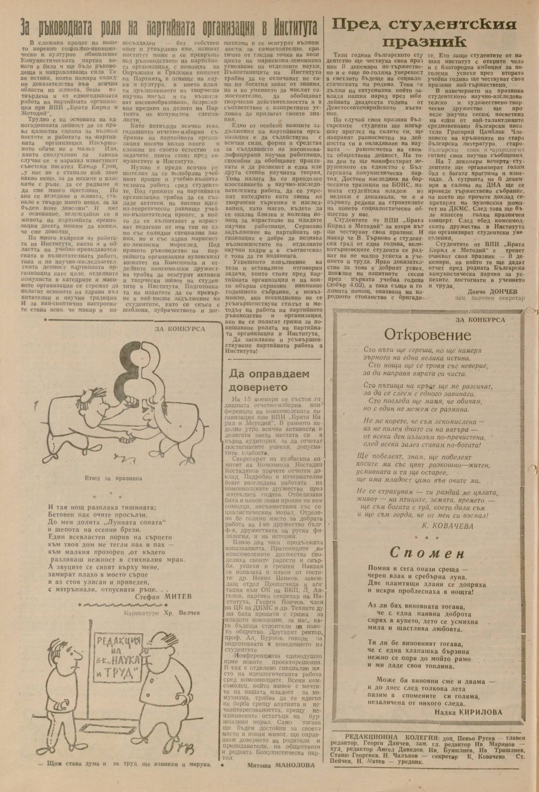 Год. 2, 6-7 (7-8). Наука и труд : Орган на Ректората, ДКМС и Профкомитета при ВПИ "Братя Кирил и Методий"