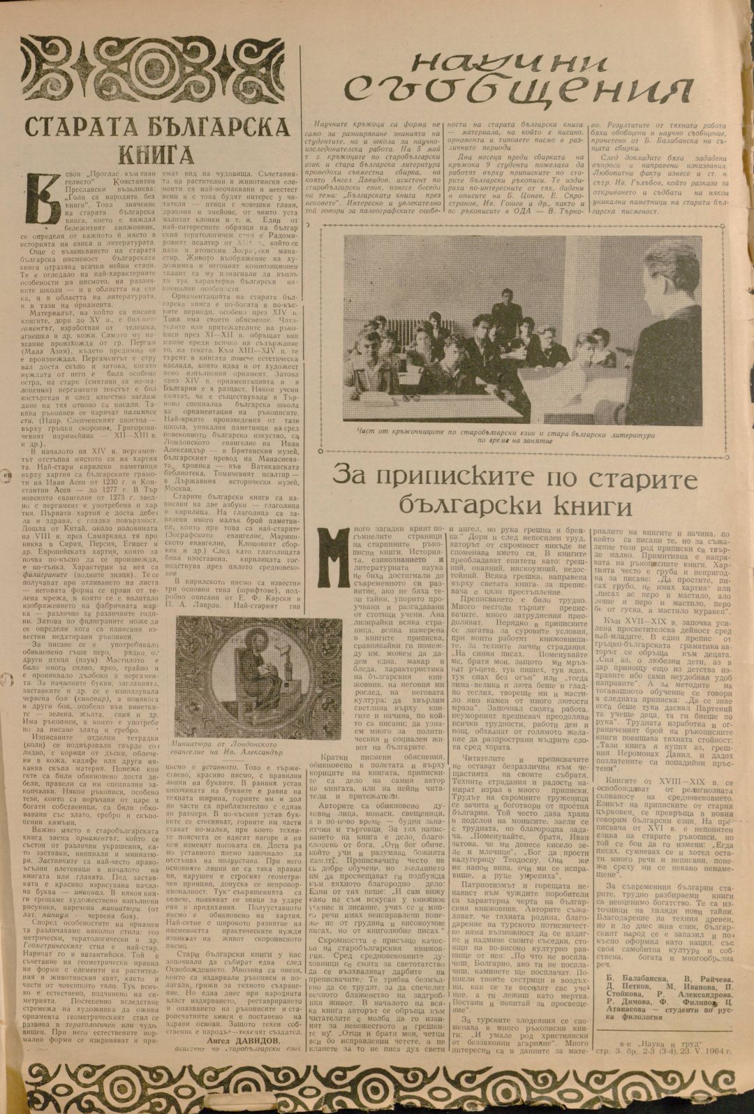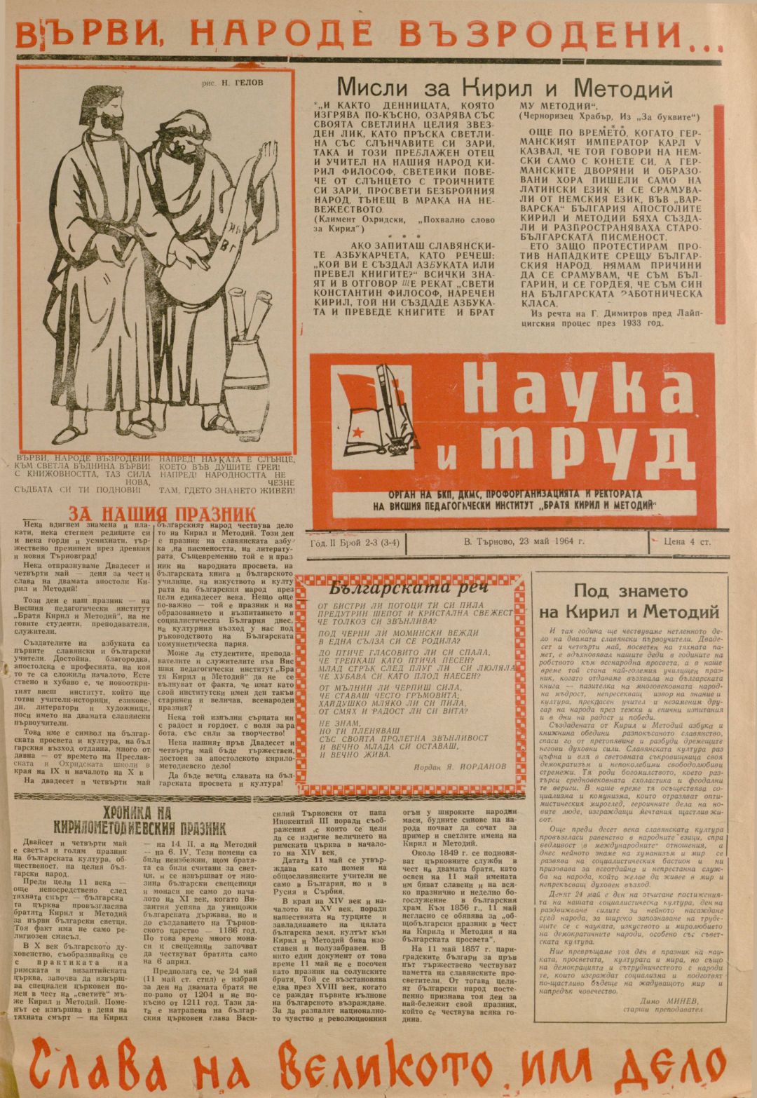 Год. 2, 2-3 (3-4). Наука и труд : Орган на Ректората, ДКМС и Профкомитета при ВПИ "Братя Кирил и Методий"