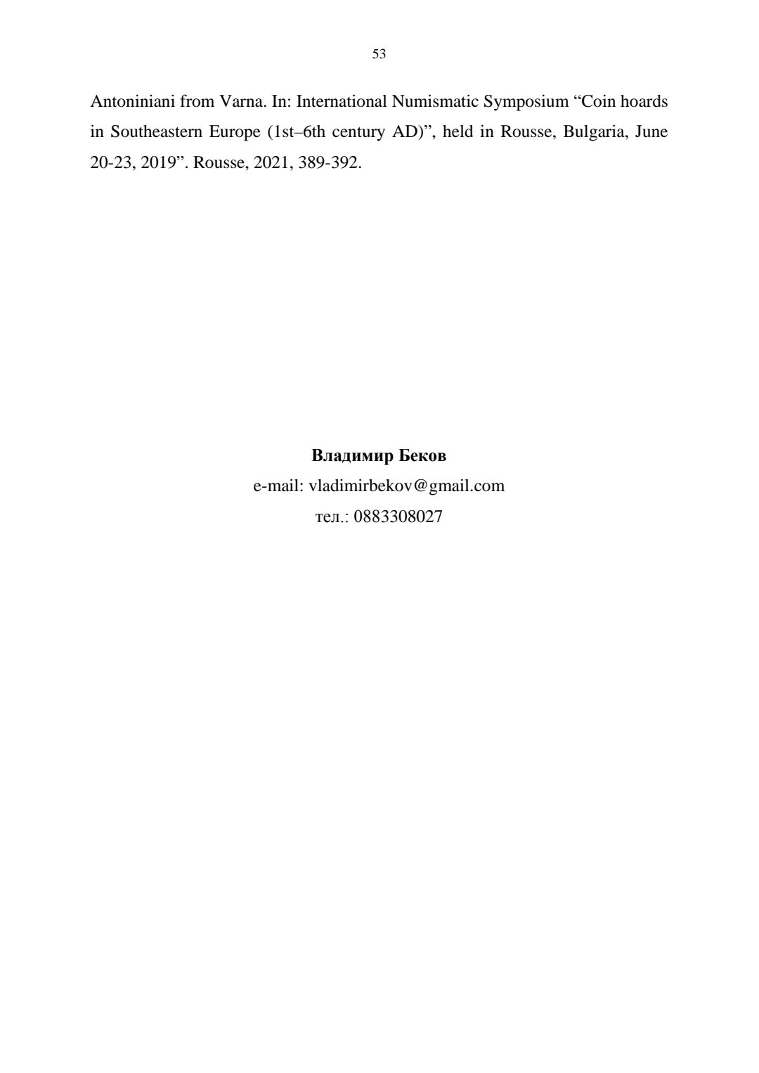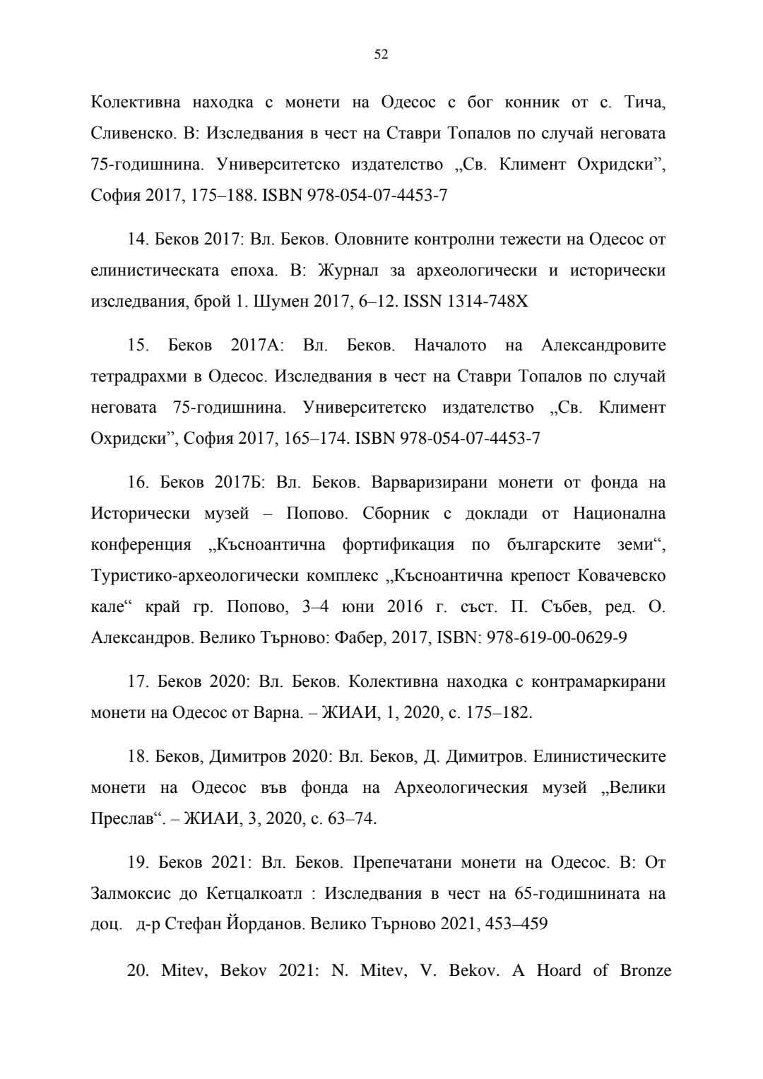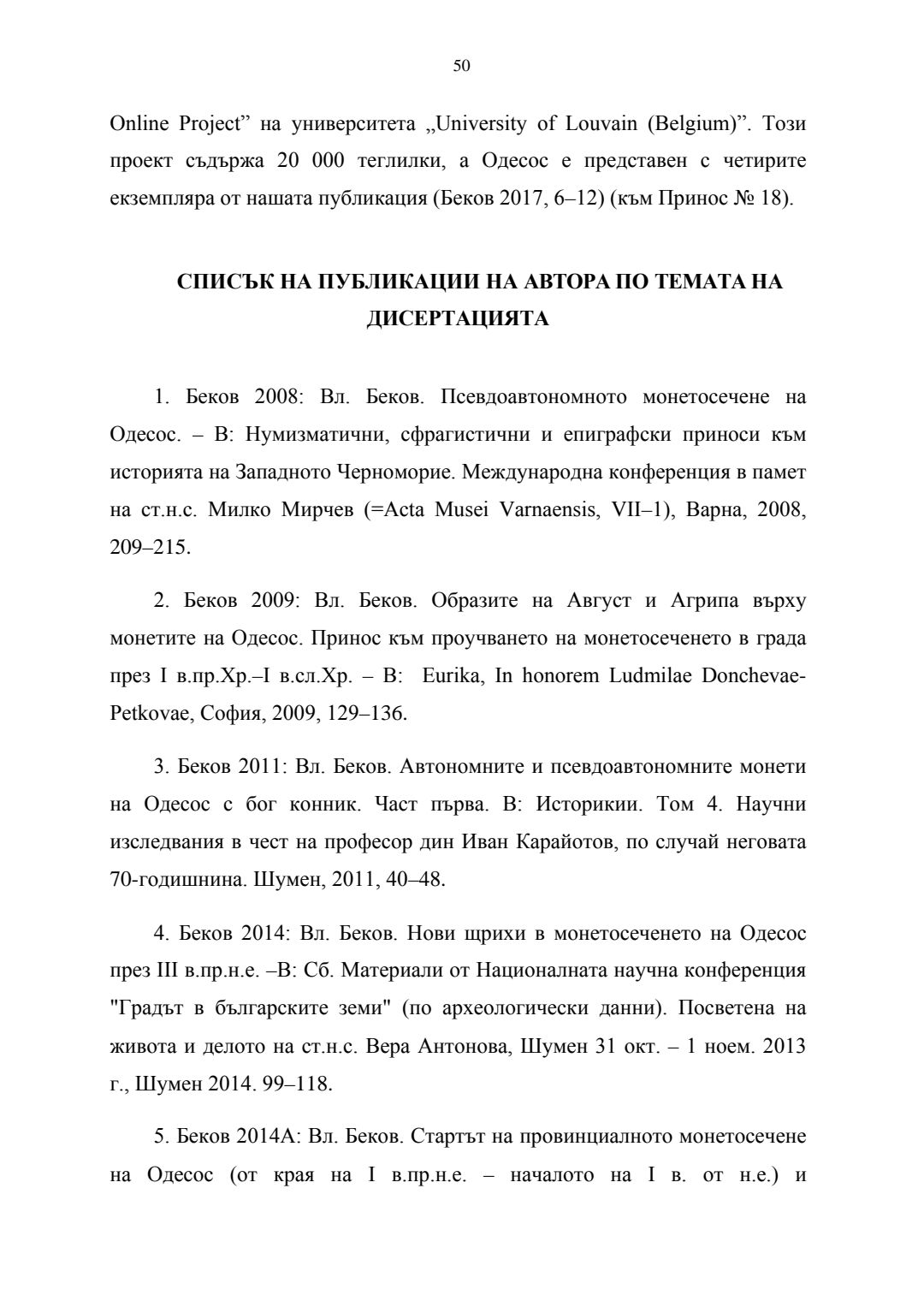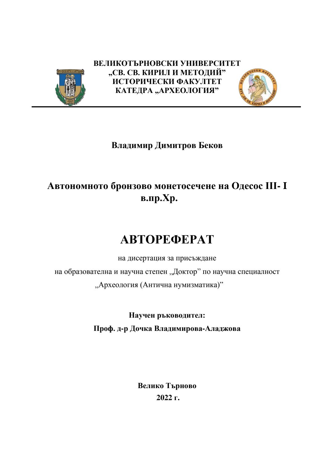 Автономното бронзово монетосечене на Одесос III-I в. пр. Хр. : Автореферат / Владимир Димитров Беков ; Науч. ръководител Дочка Владимирова-Аладжова