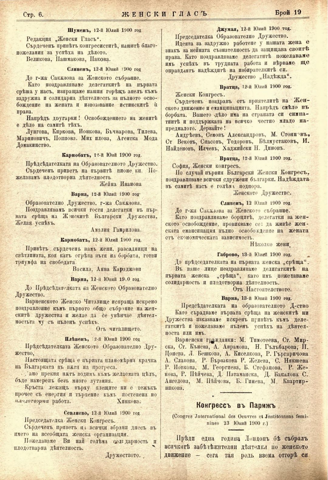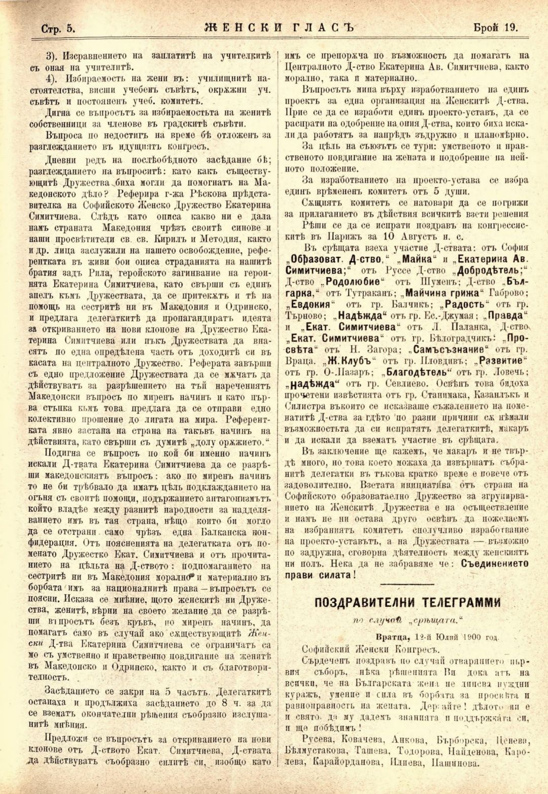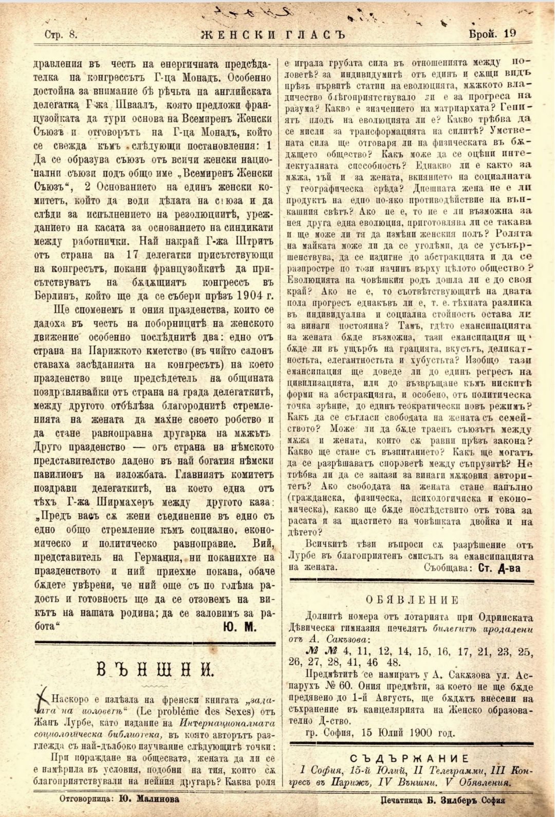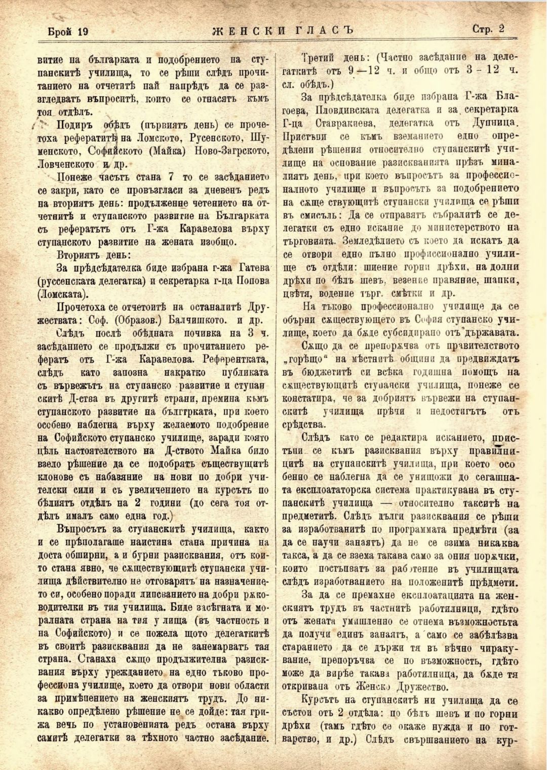 Год. 1,№ 19. Женски глас : Орган, посветен на интересите на жената