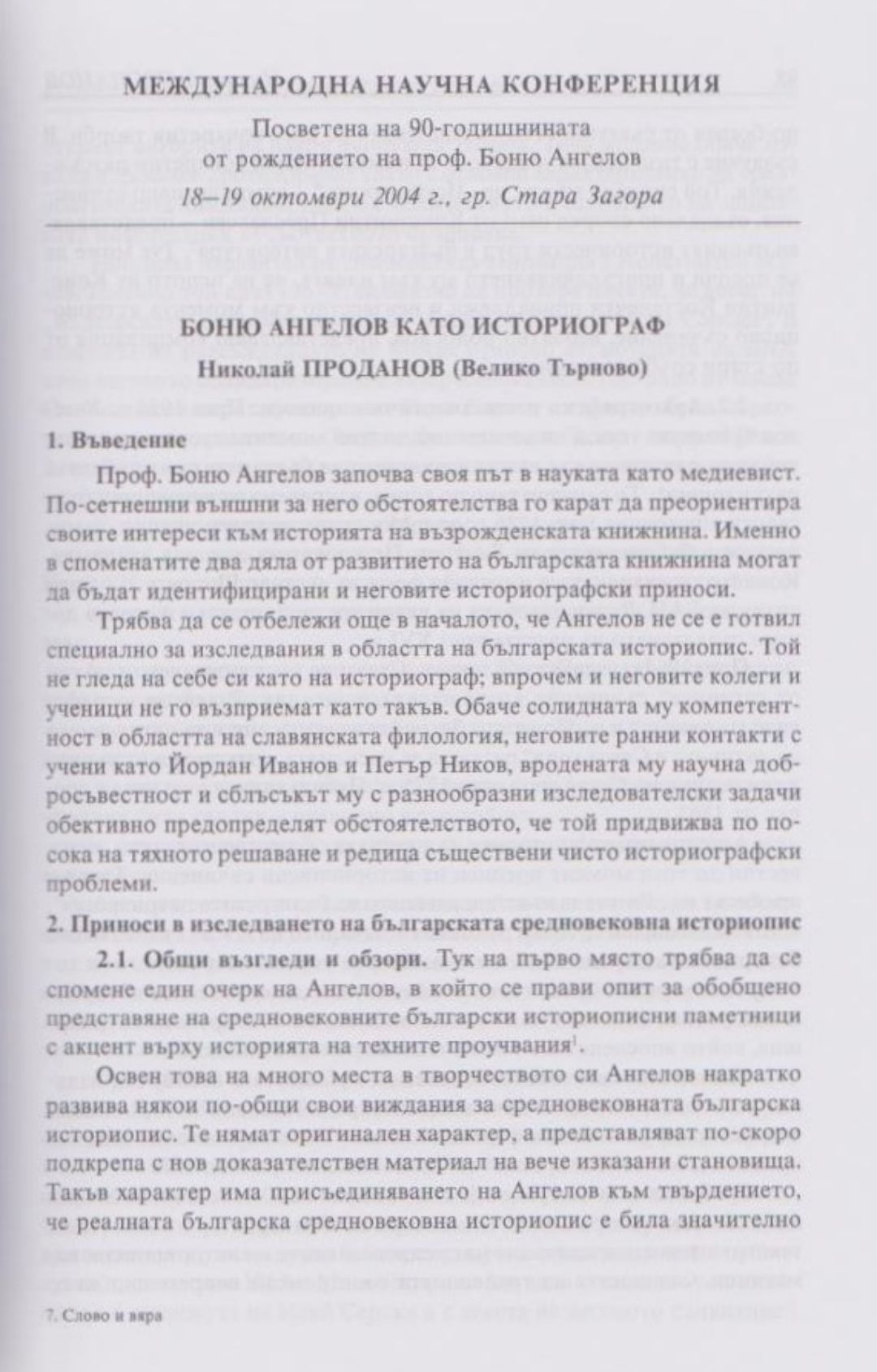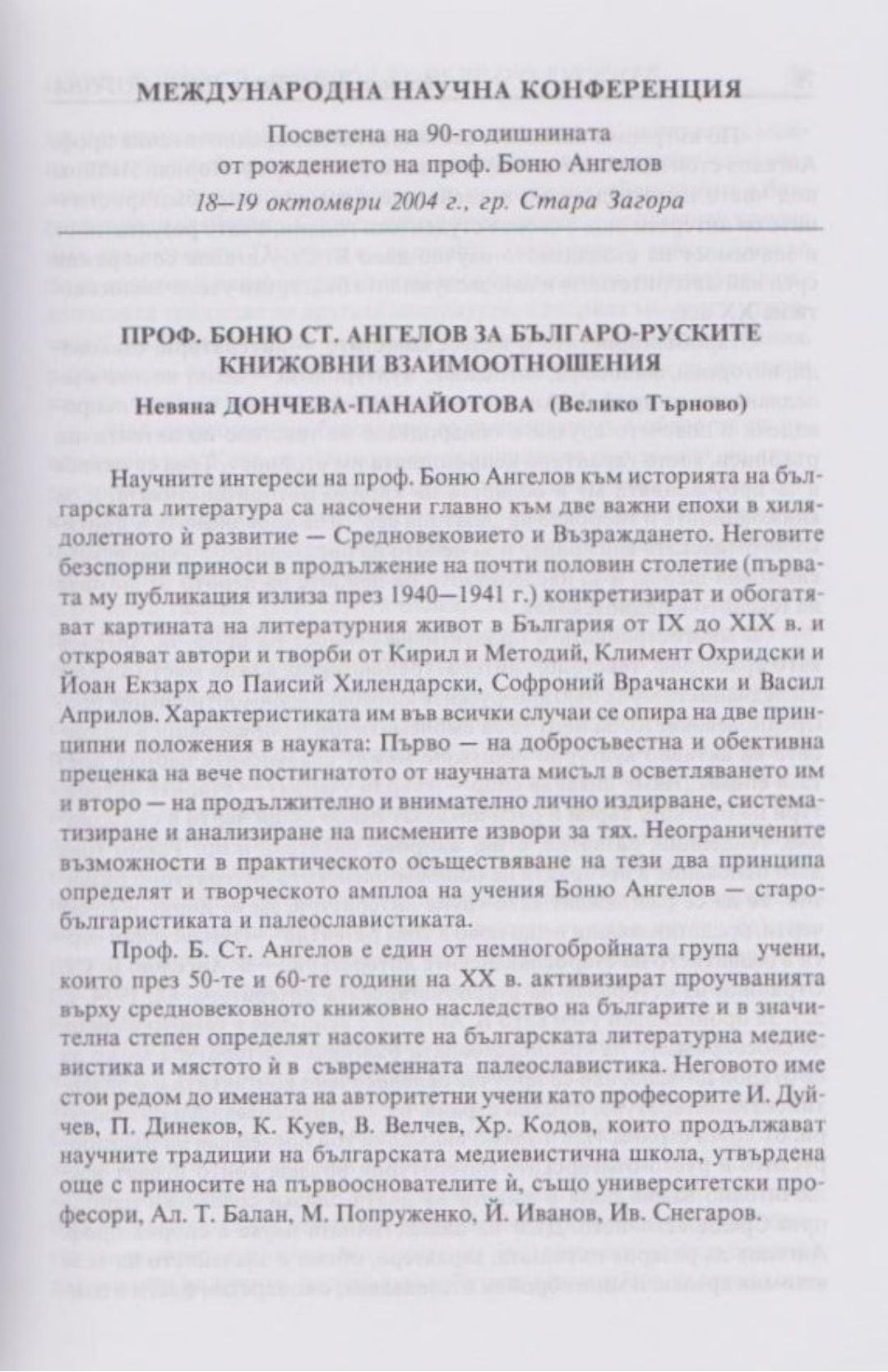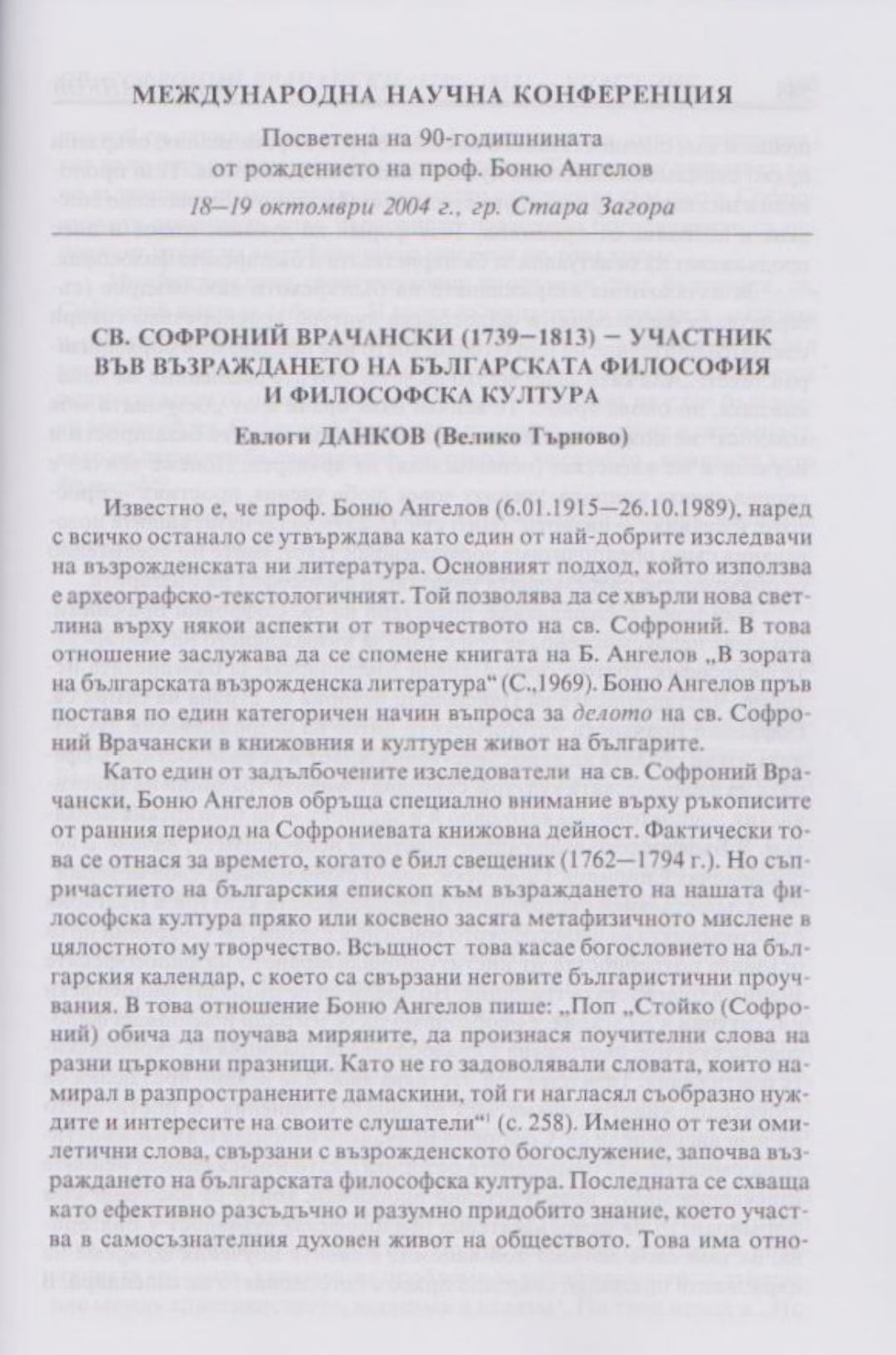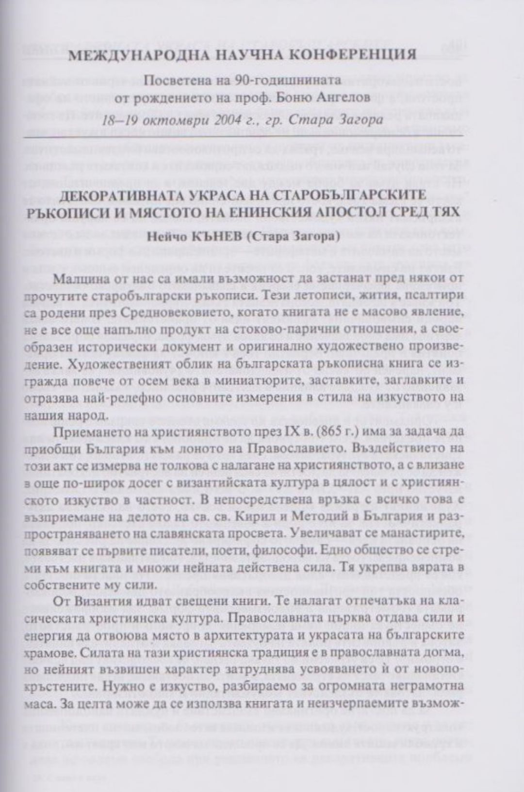 Слово и вяра : Международна научна конференция, посветена на 90-тодишнината от рождението на проф. Боню Ст. Ангелов : 18-19 октомври 2004 г., Стара Загора