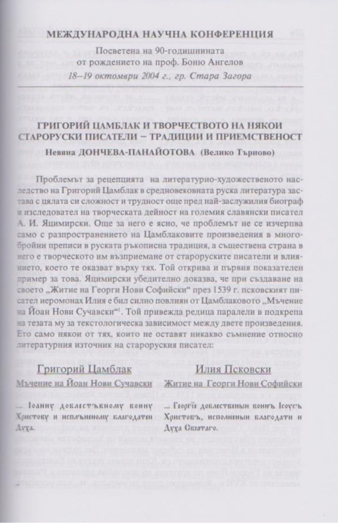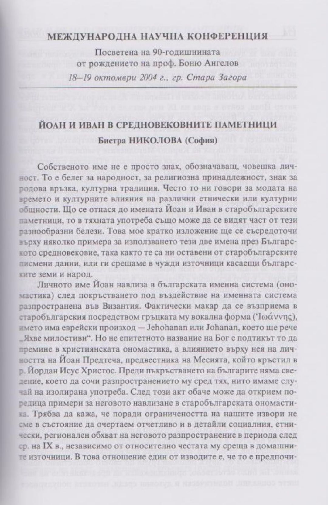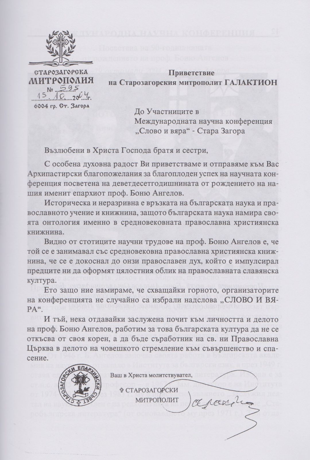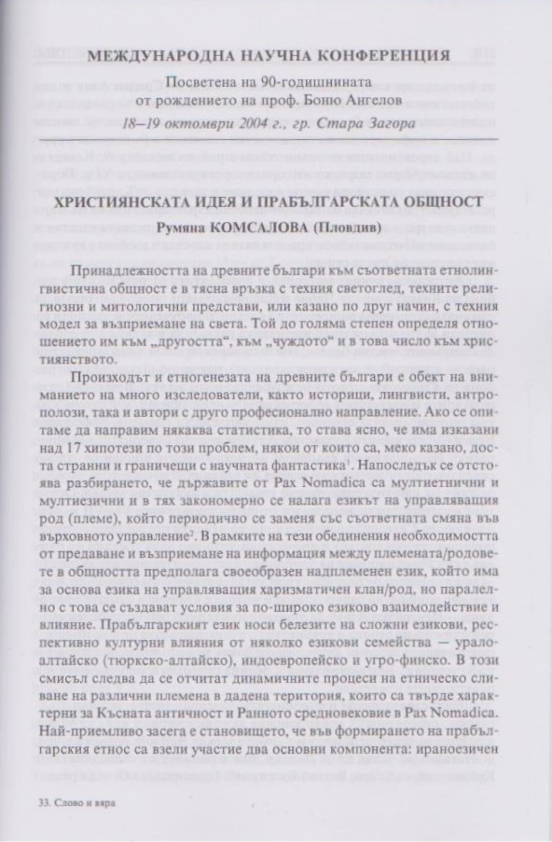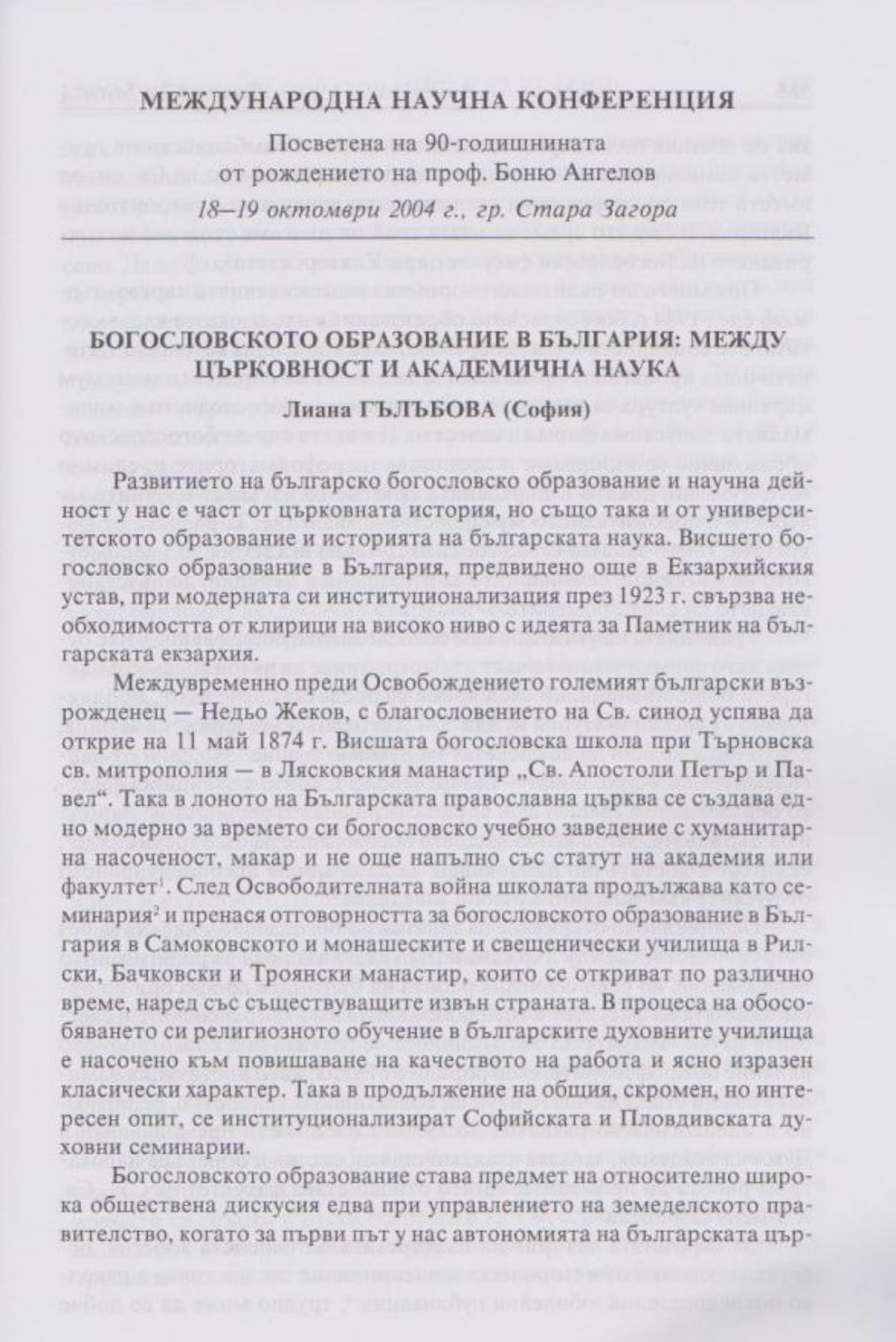 Слово и вяра : Международна научна конференция, посветена на 90-тодишнината от рождението на проф. Боню Ст. Ангелов : 18-19 октомври 2004 г., Стара Загора