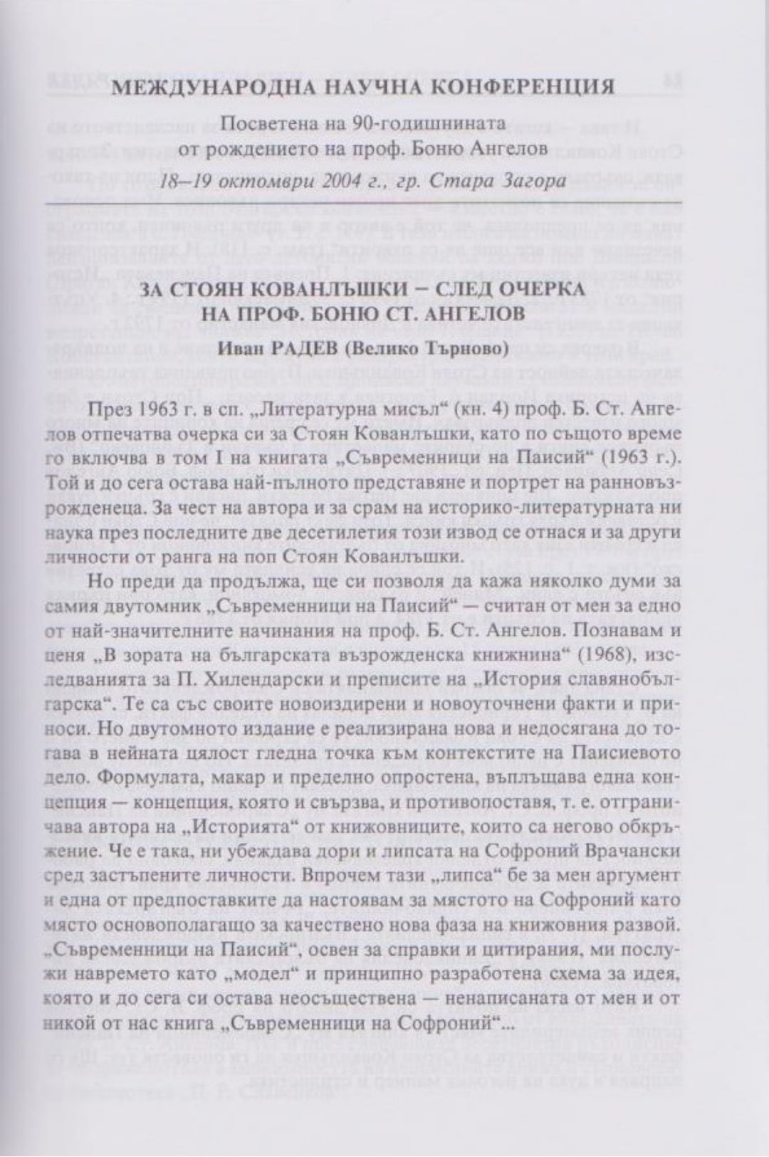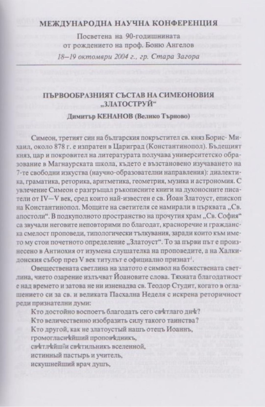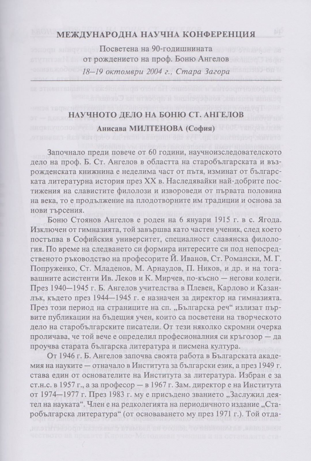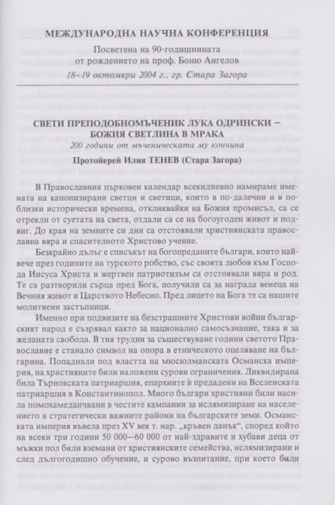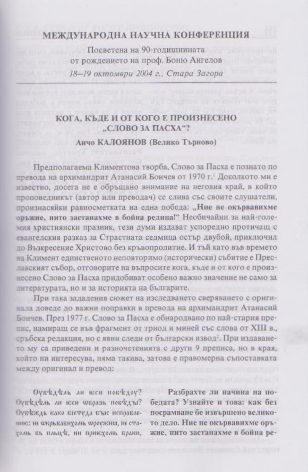 Слово и вяра : Международна научна конференция, посветена на 90-тодишнината от рождението на проф. Боню Ст. Ангелов : 18-19 октомври 2004 г., Стара Загора