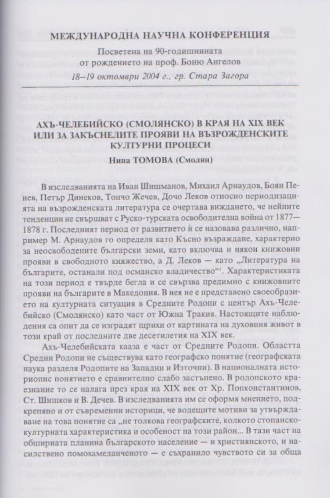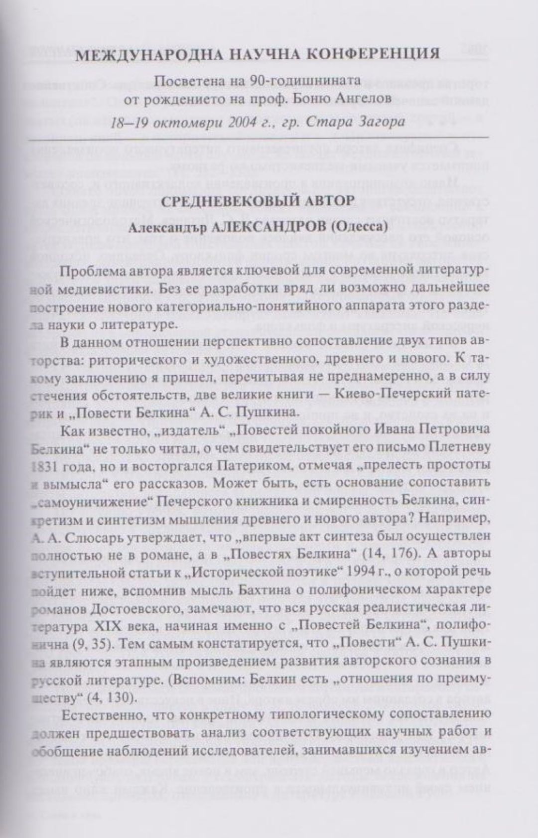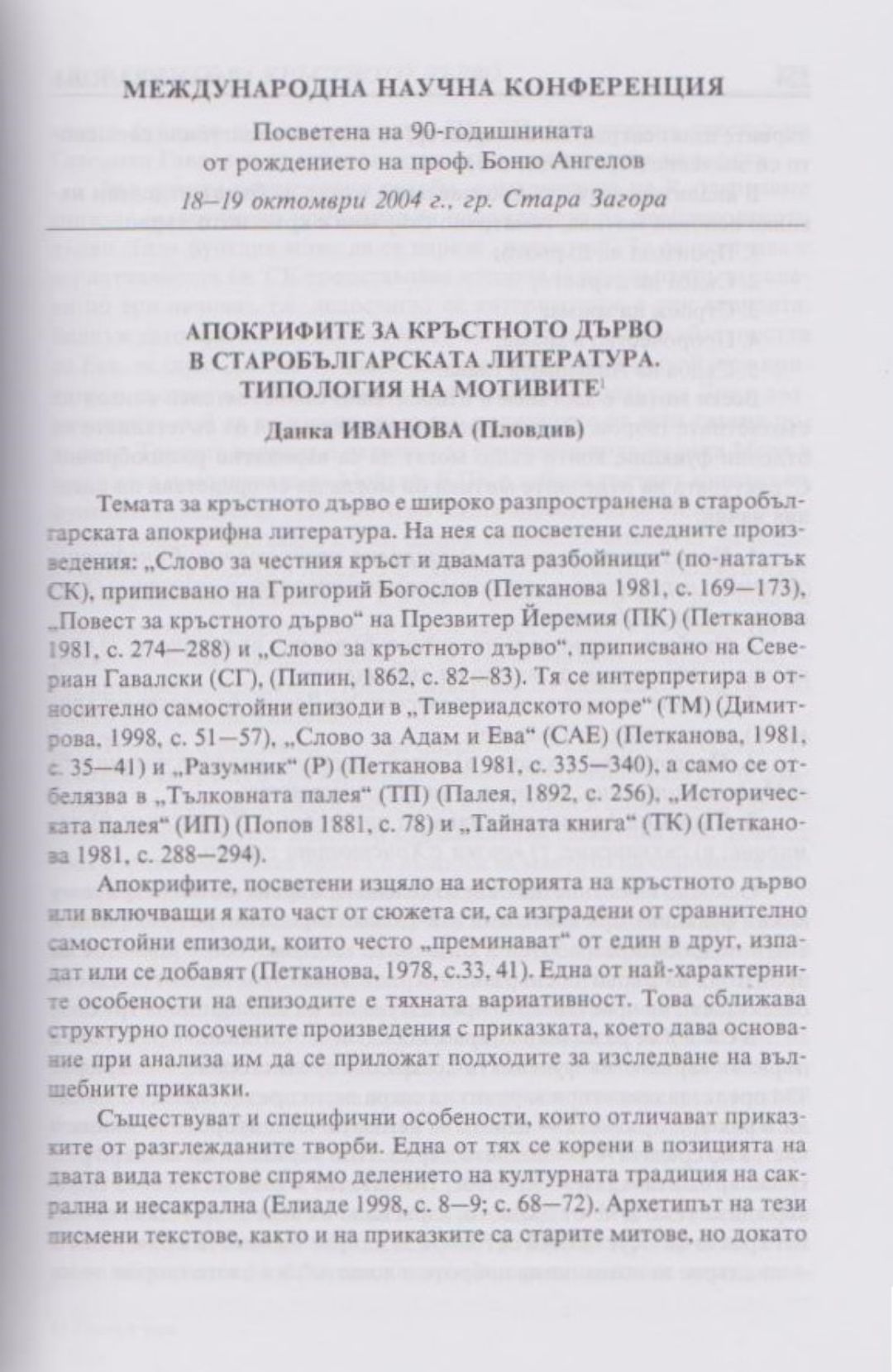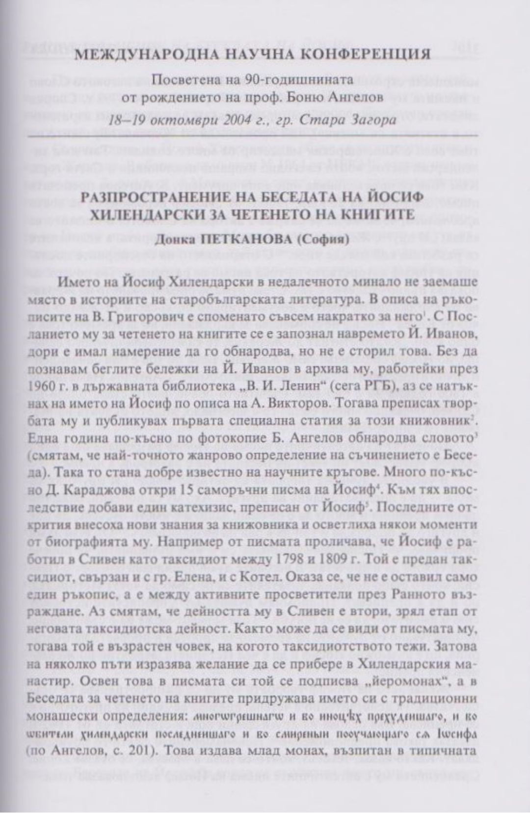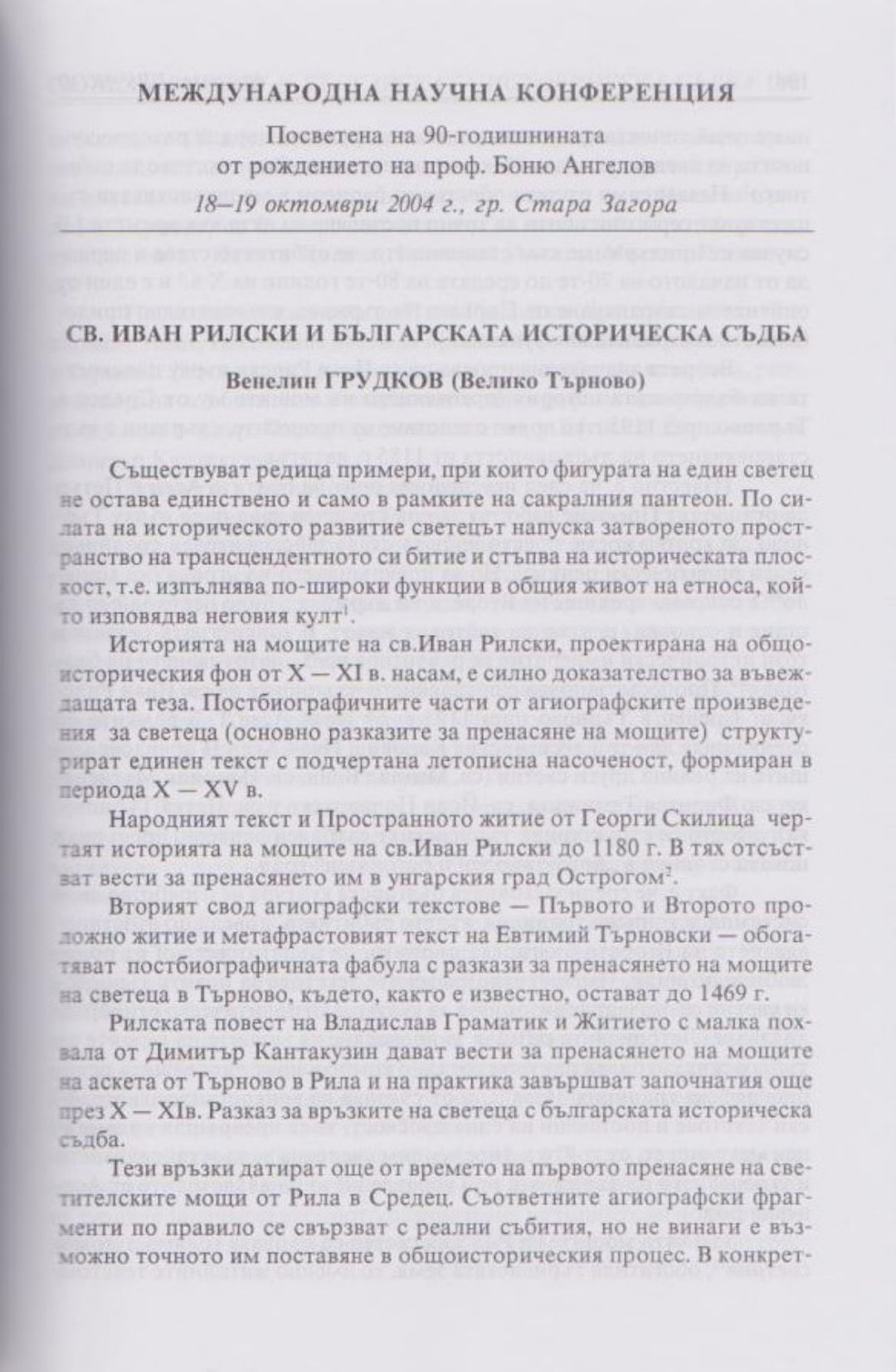 Слово и вяра : Международна научна конференция, посветена на 90-тодишнината от рождението на проф. Боню Ст. Ангелов : 18-19 октомври 2004 г., Стара Загора