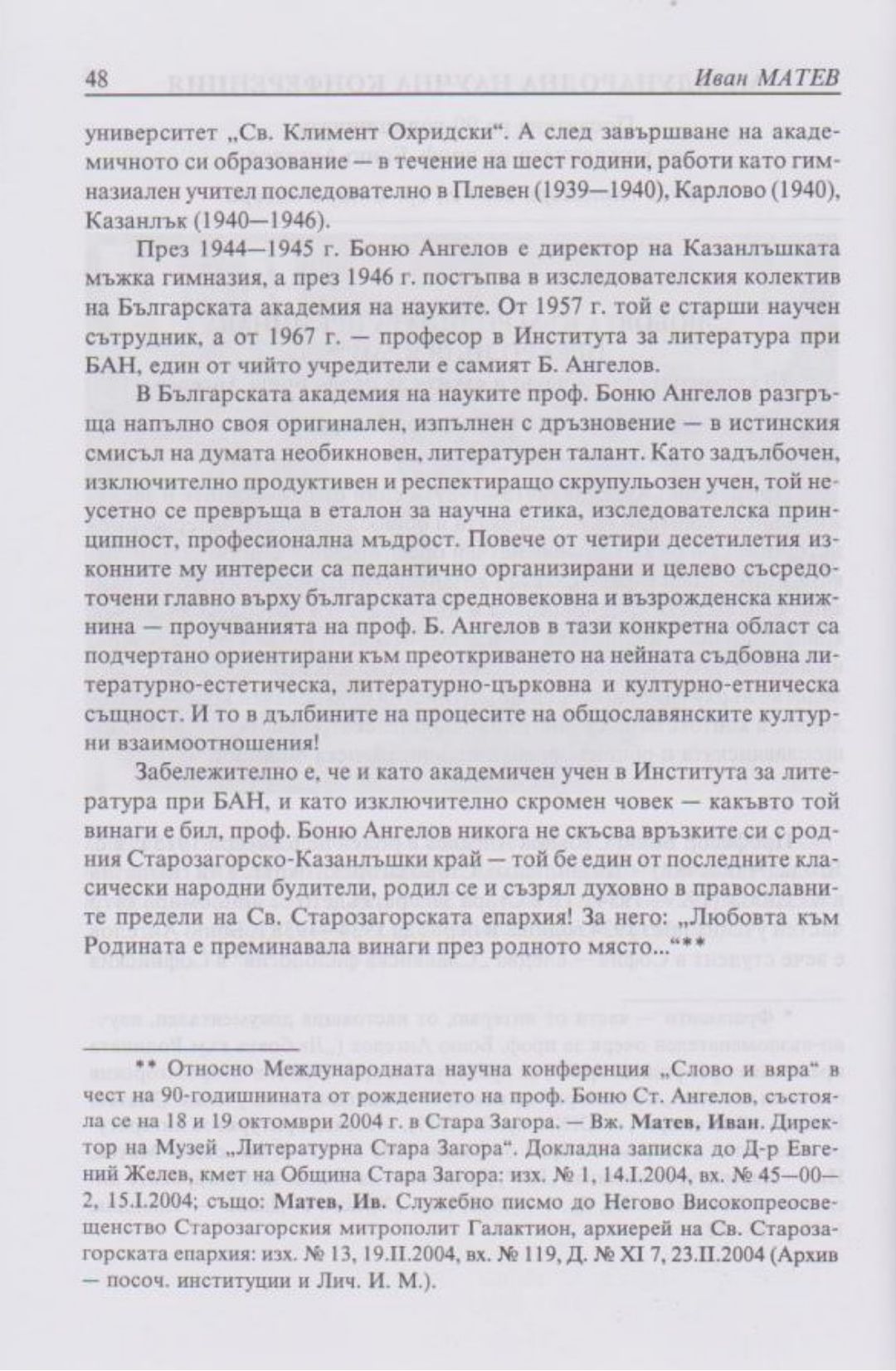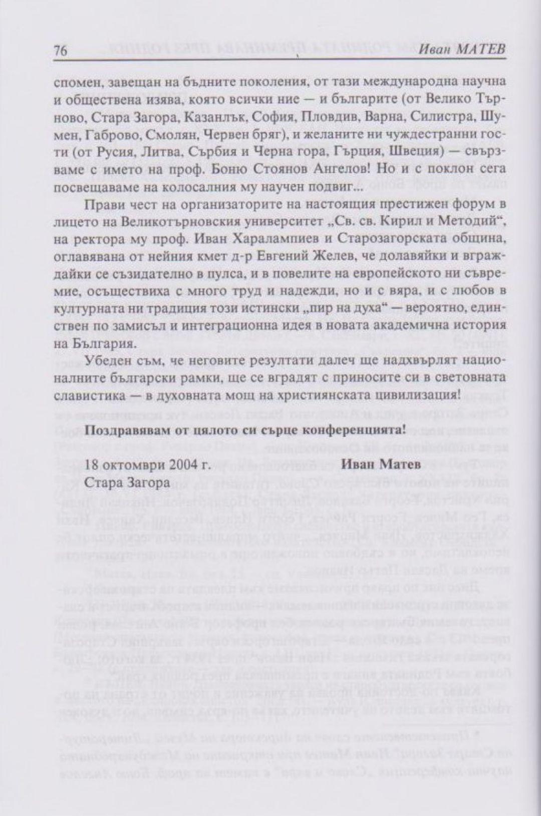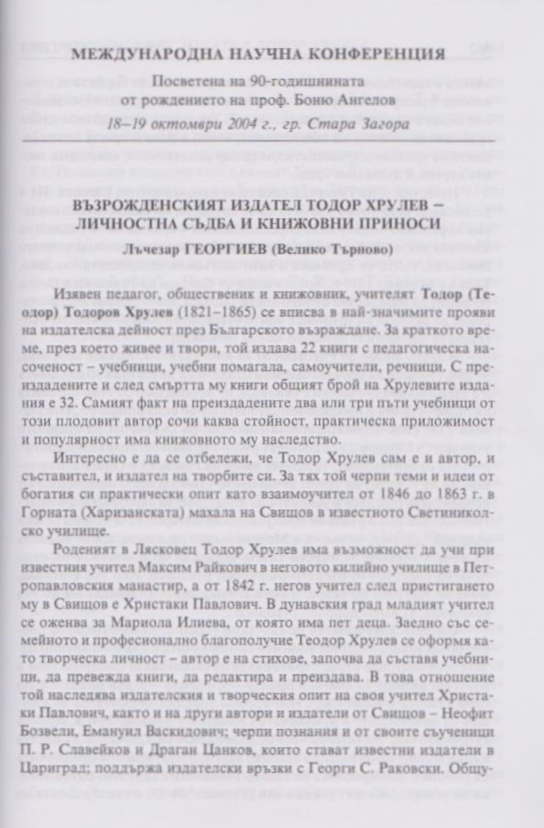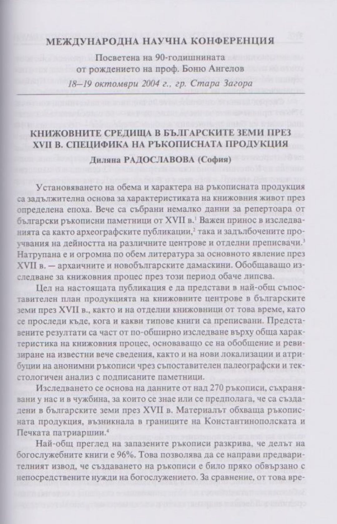 Слово и вяра : Международна научна конференция, посветена на 90-тодишнината от рождението на проф. Боню Ст. Ангелов : 18-19 октомври 2004 г., Стара Загора