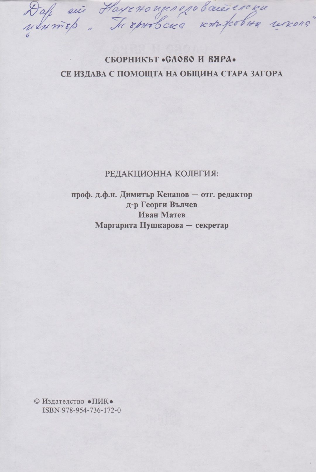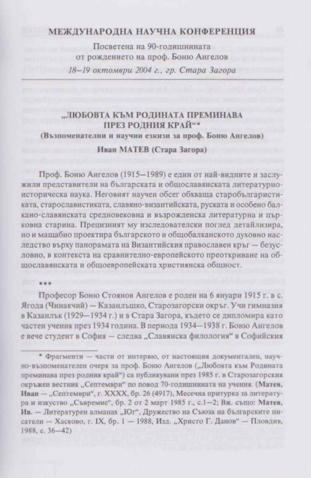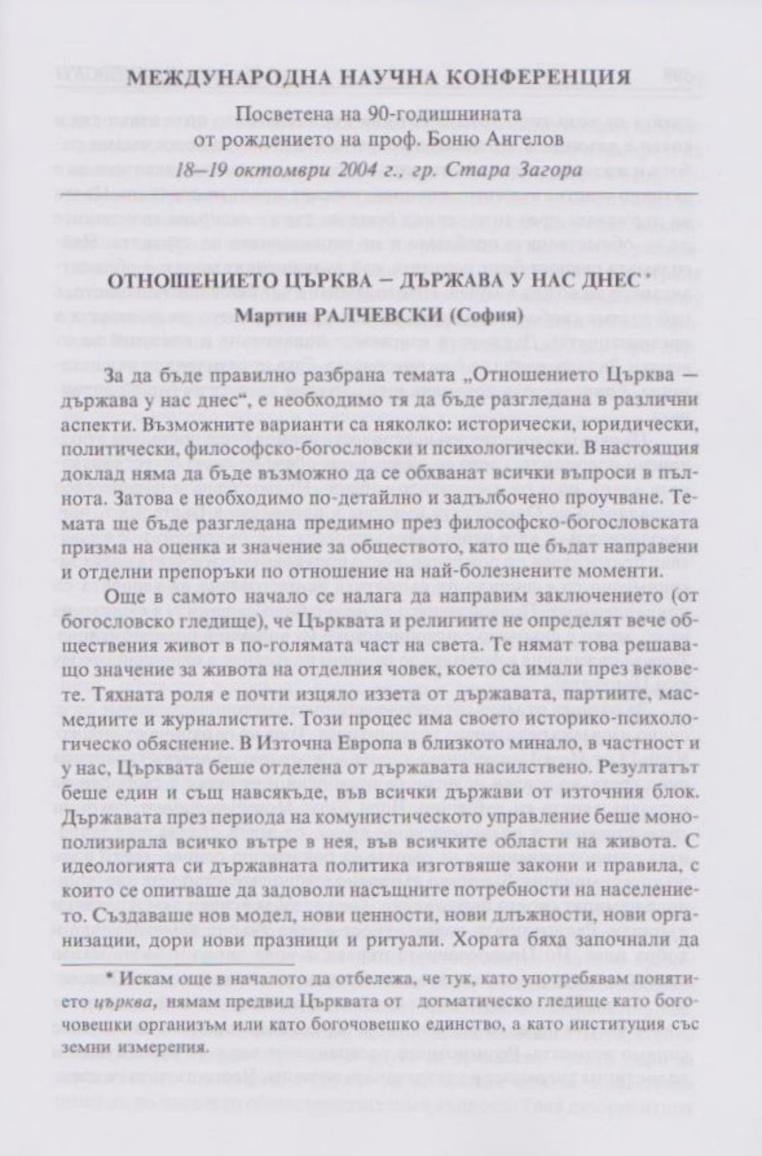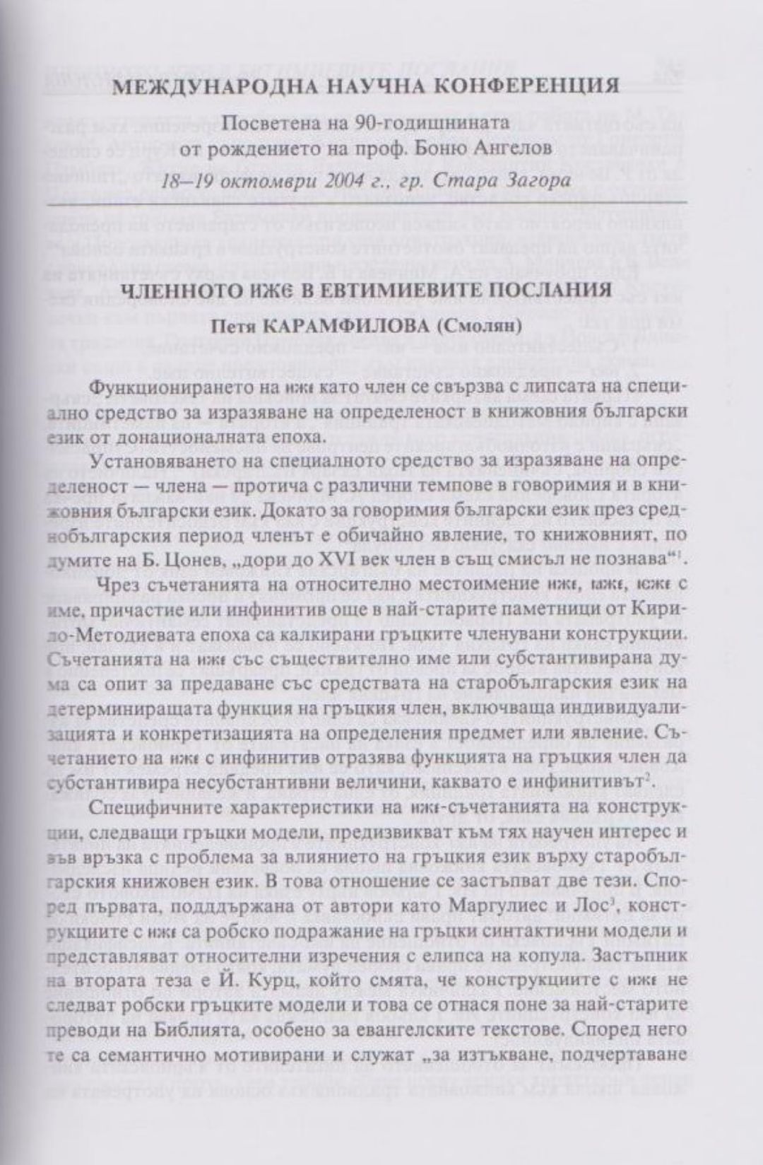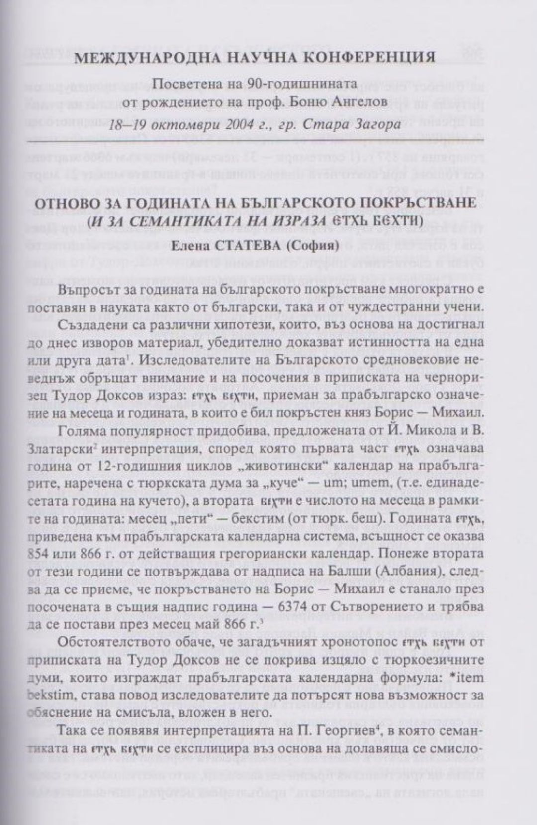 Слово и вяра : Международна научна конференция, посветена на 90-тодишнината от рождението на проф. Боню Ст. Ангелов : 18-19 октомври 2004 г., Стара Загора