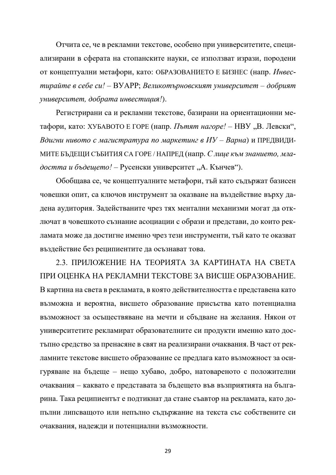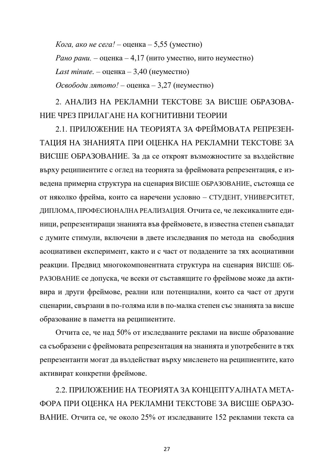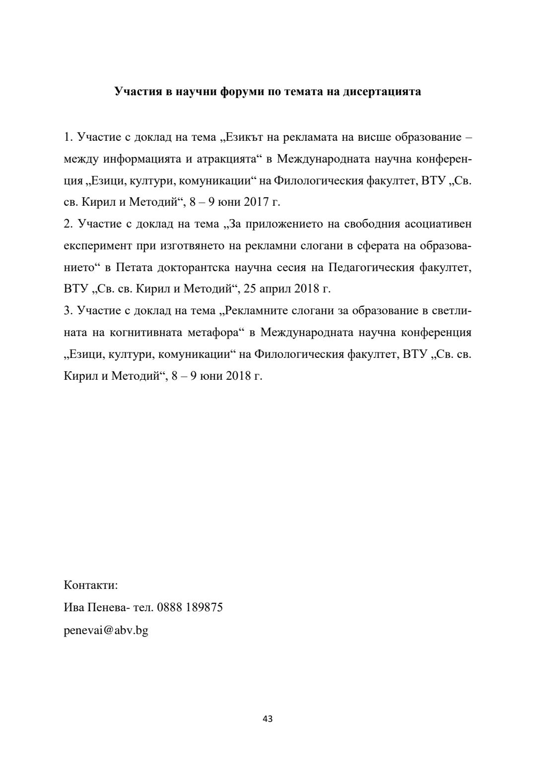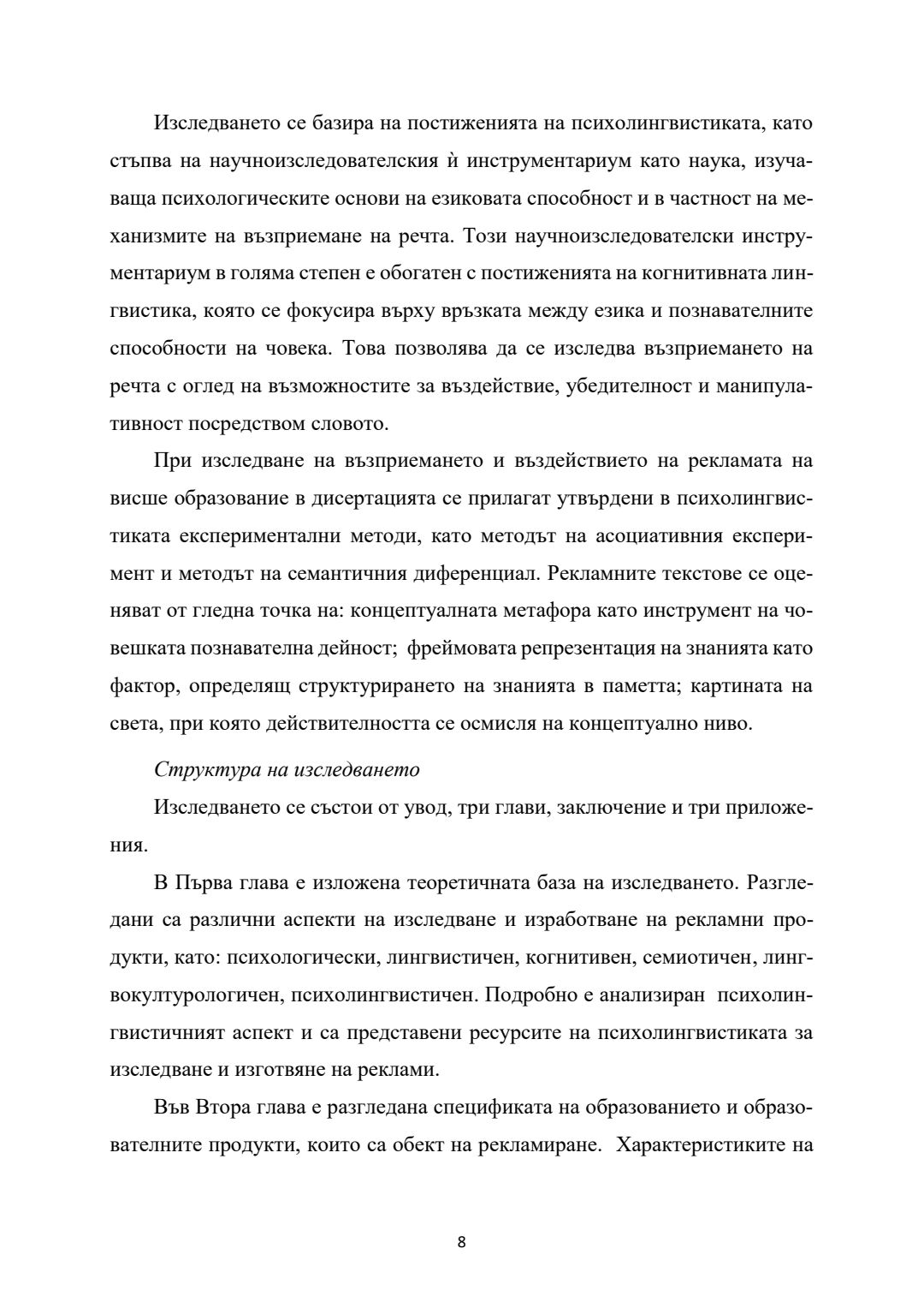 Психолингвистични аспекти на рекламата на висше образование и образователни продукти : Автореферат / Ива Иванова Пенева ; Науч. ръководител Живка Стефанова Колева-Златева