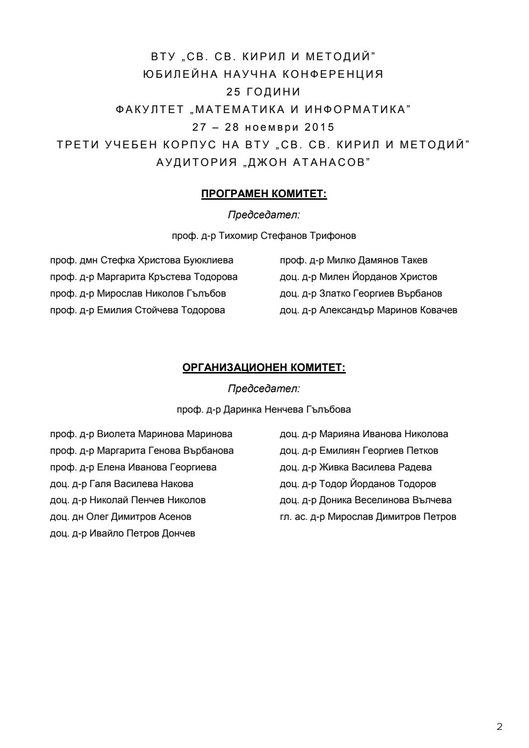 Юбилейна научна конференция 25 години Факултет "Математика и информатика", 27-28 ноември 2015, Велико Търново