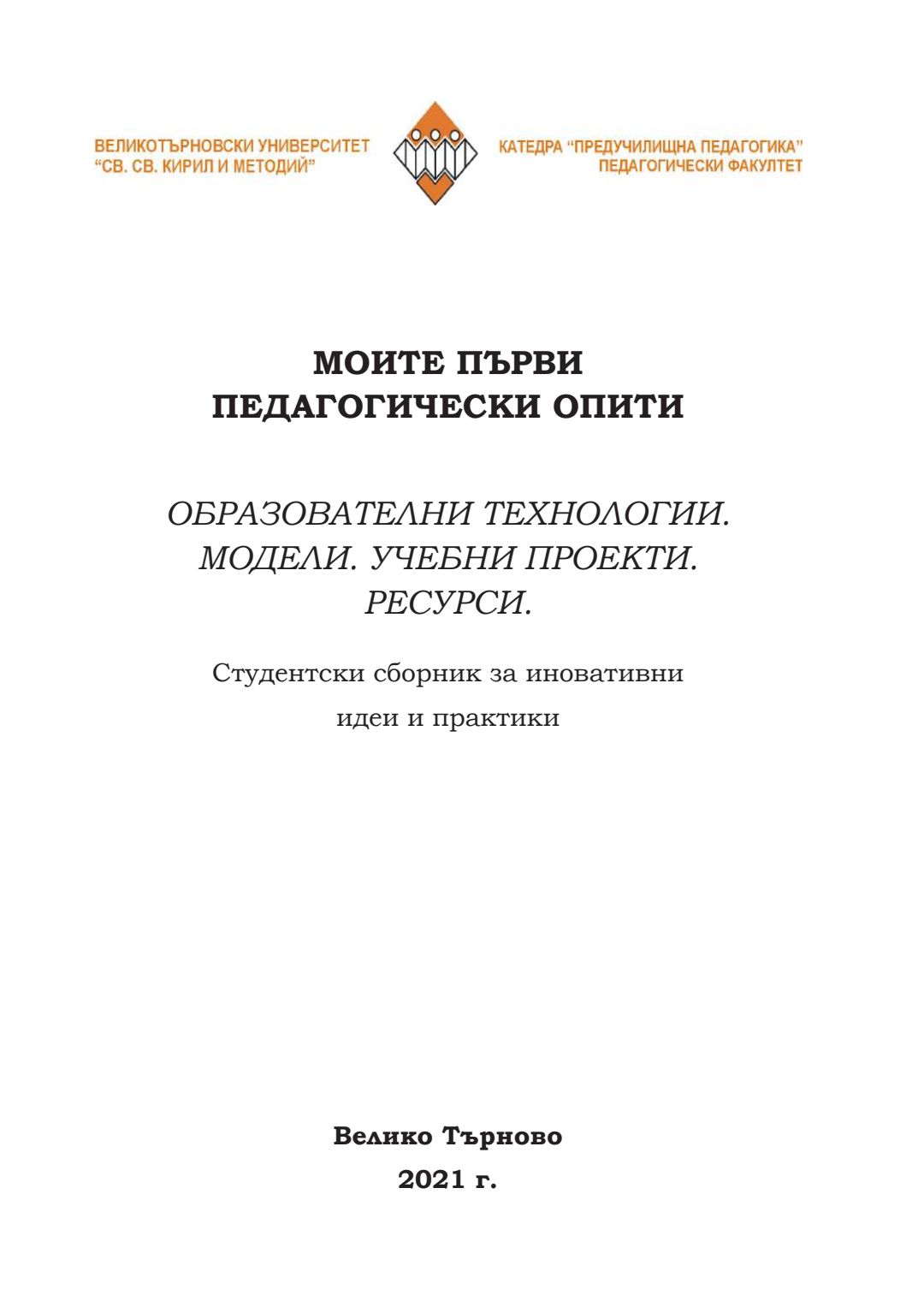 Моите първи педагогически опити : Образователни технологии, модели, учебни проекти, ресурси : Студентски сборник за иновативни идеи и практики Т. 1 - 3