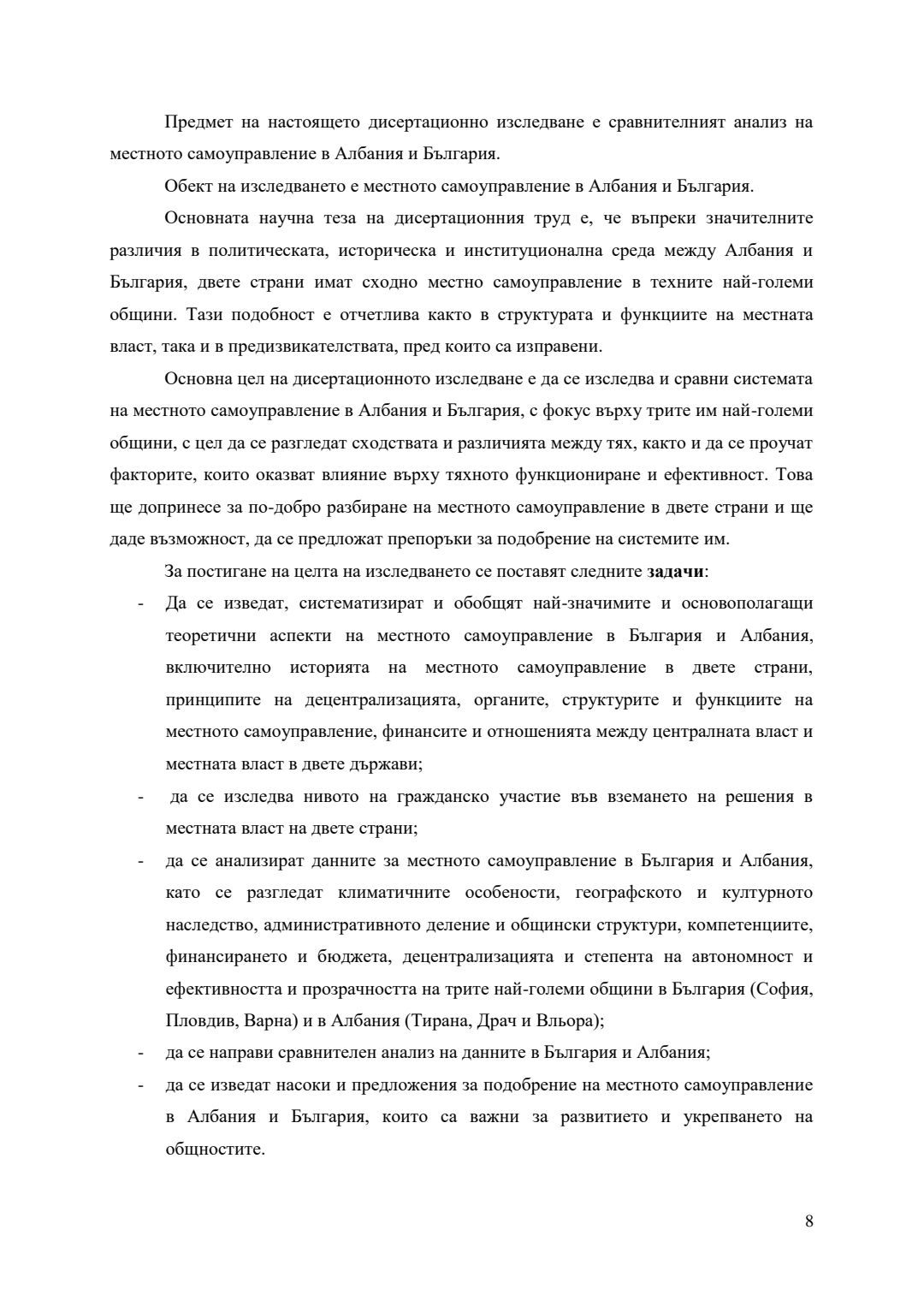 Органите на местно управление в Р. Албания и Р. България. Сравнителноправен анализ : Автореферат / Арналдо Бичоку ; Науч. ръководител Цветан Сивков