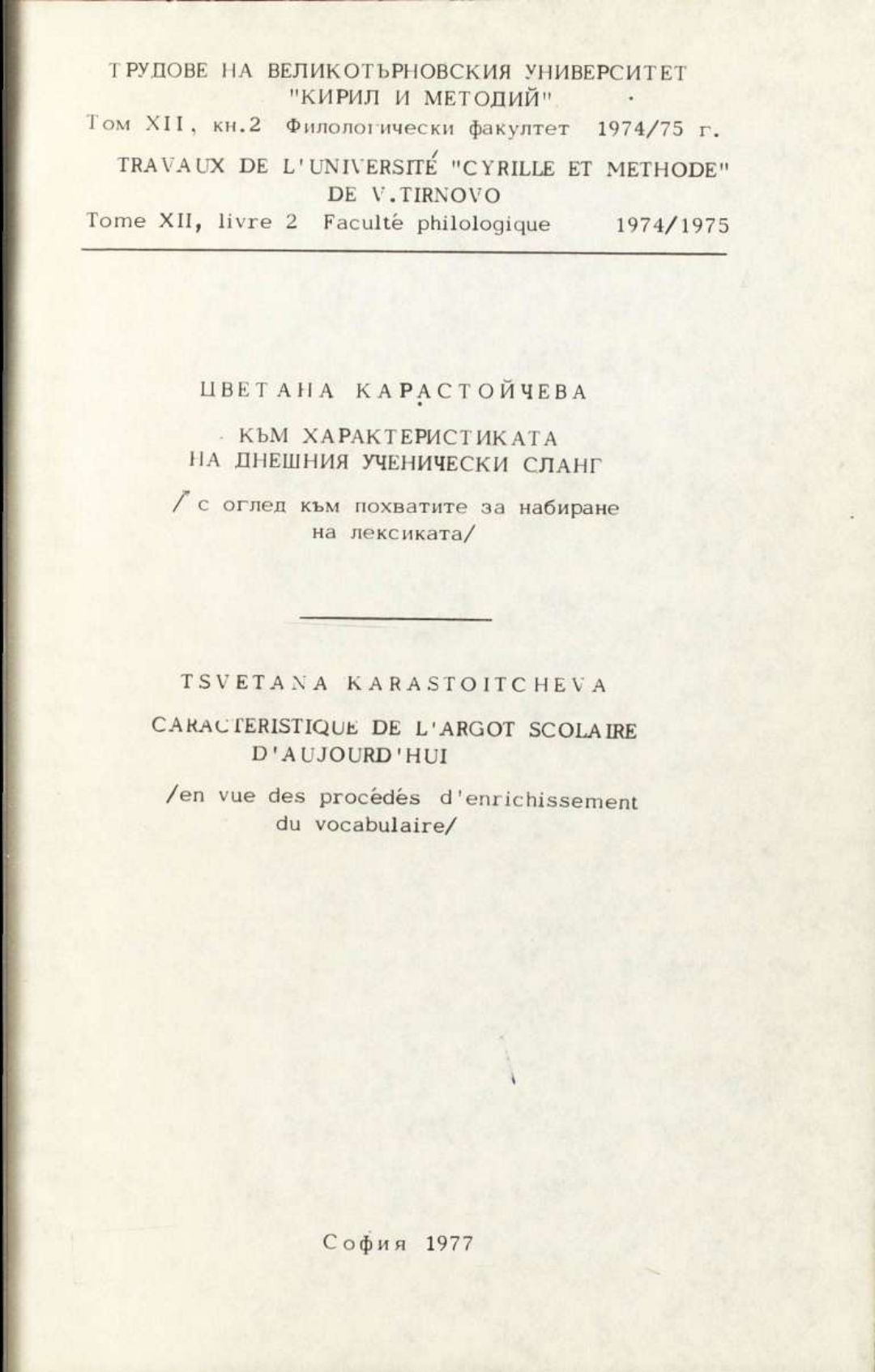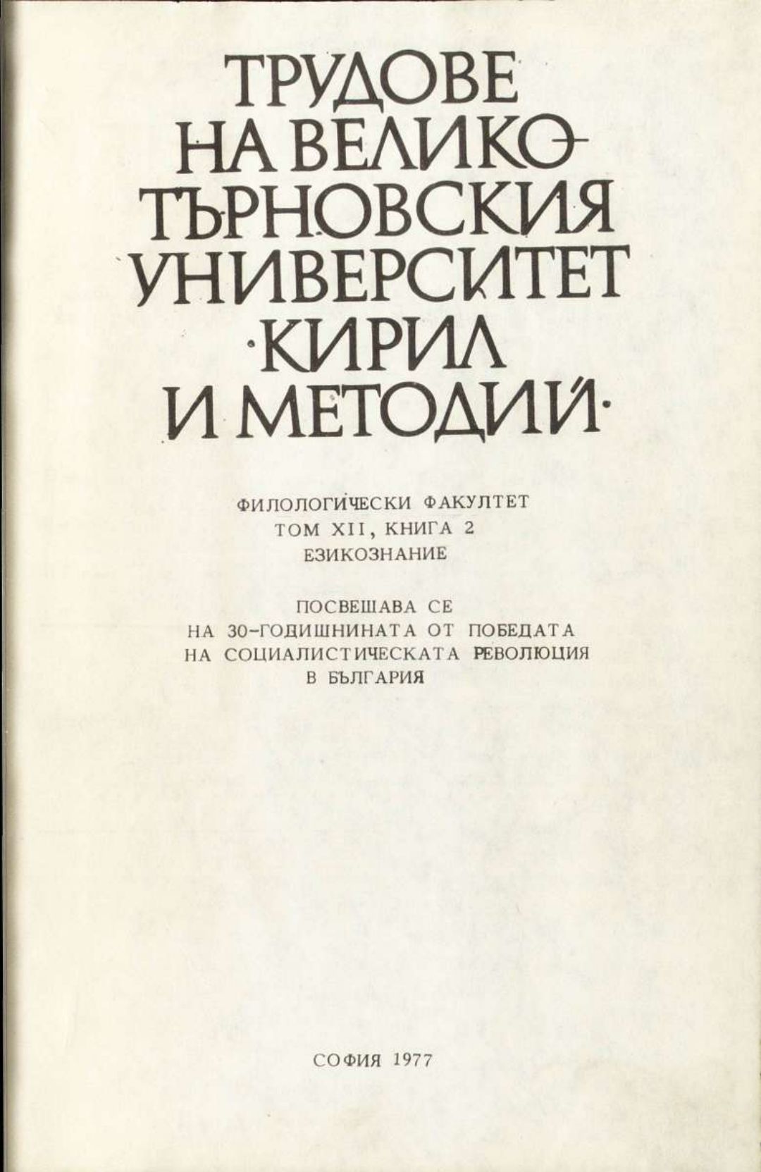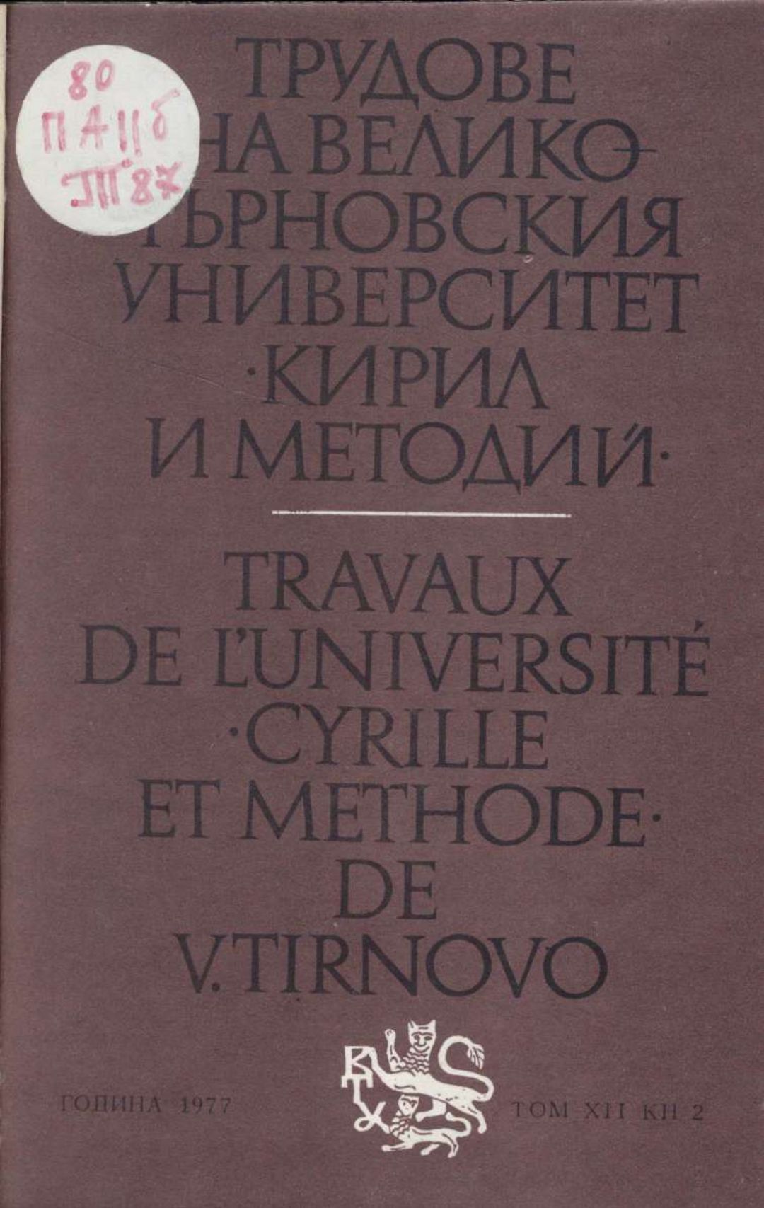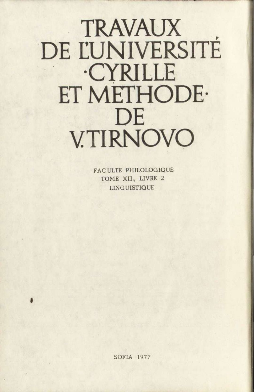 Том 12. Кн.2. Трудове на Великотърновския университет "Св. св. Кирил и Методий". Филологически факултет = Travaux de L'universite St. St. Cyrille et Methode de Veliko Tirnovo. Faculte de philologue