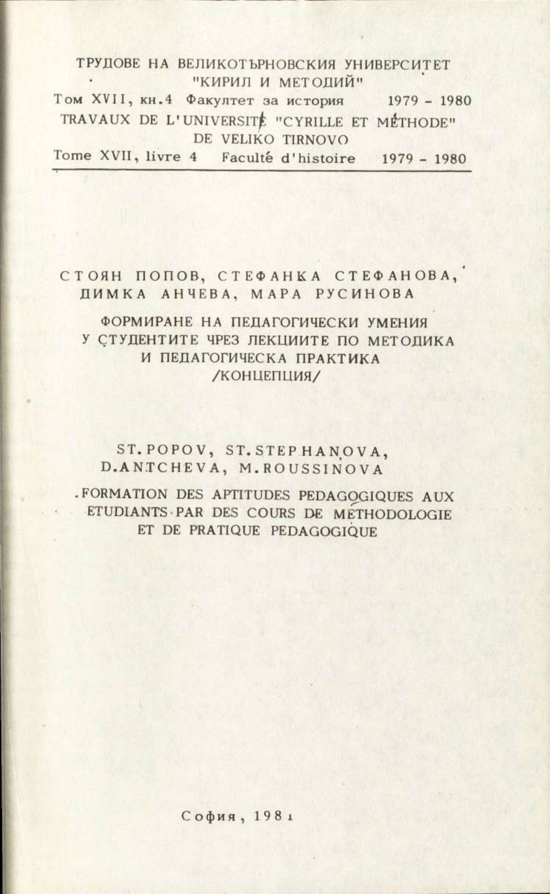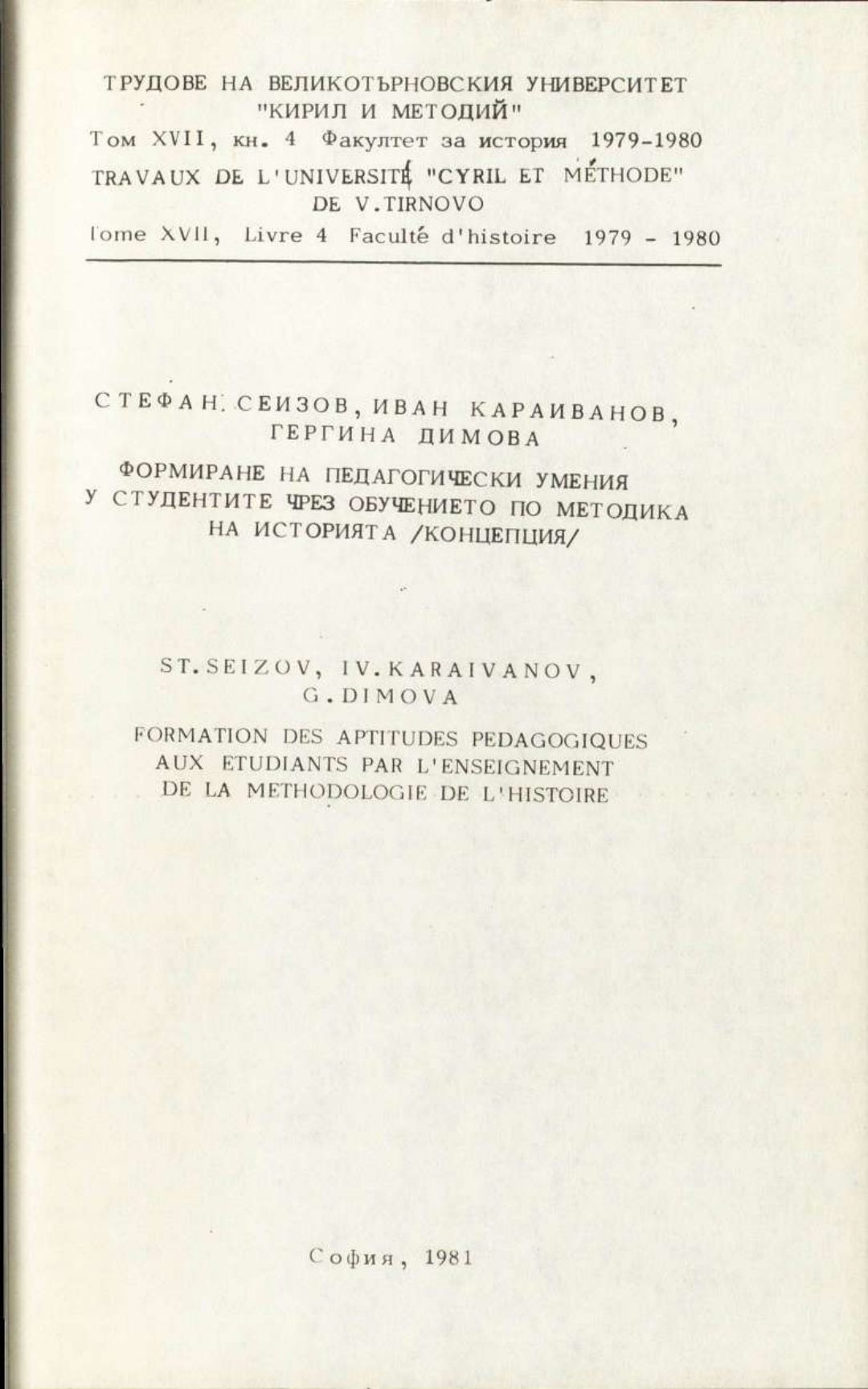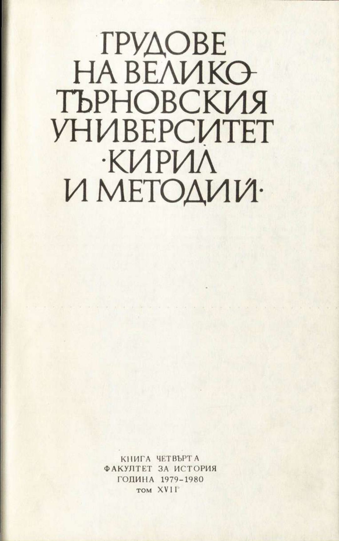 Том 17. Кн. 4. Трудове на Великотърновския университет "Св. св. Кирил и Методий". Исторически факултет = Travaux de L'universite St. St. Cyrille et Methode de V. Tirnovo. Faculte histoire