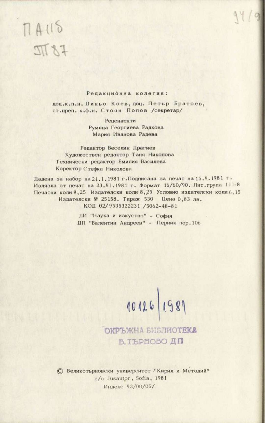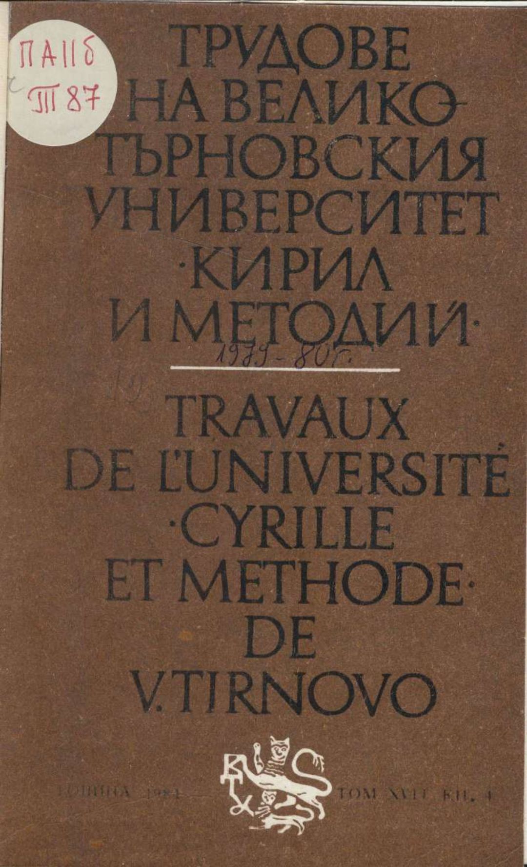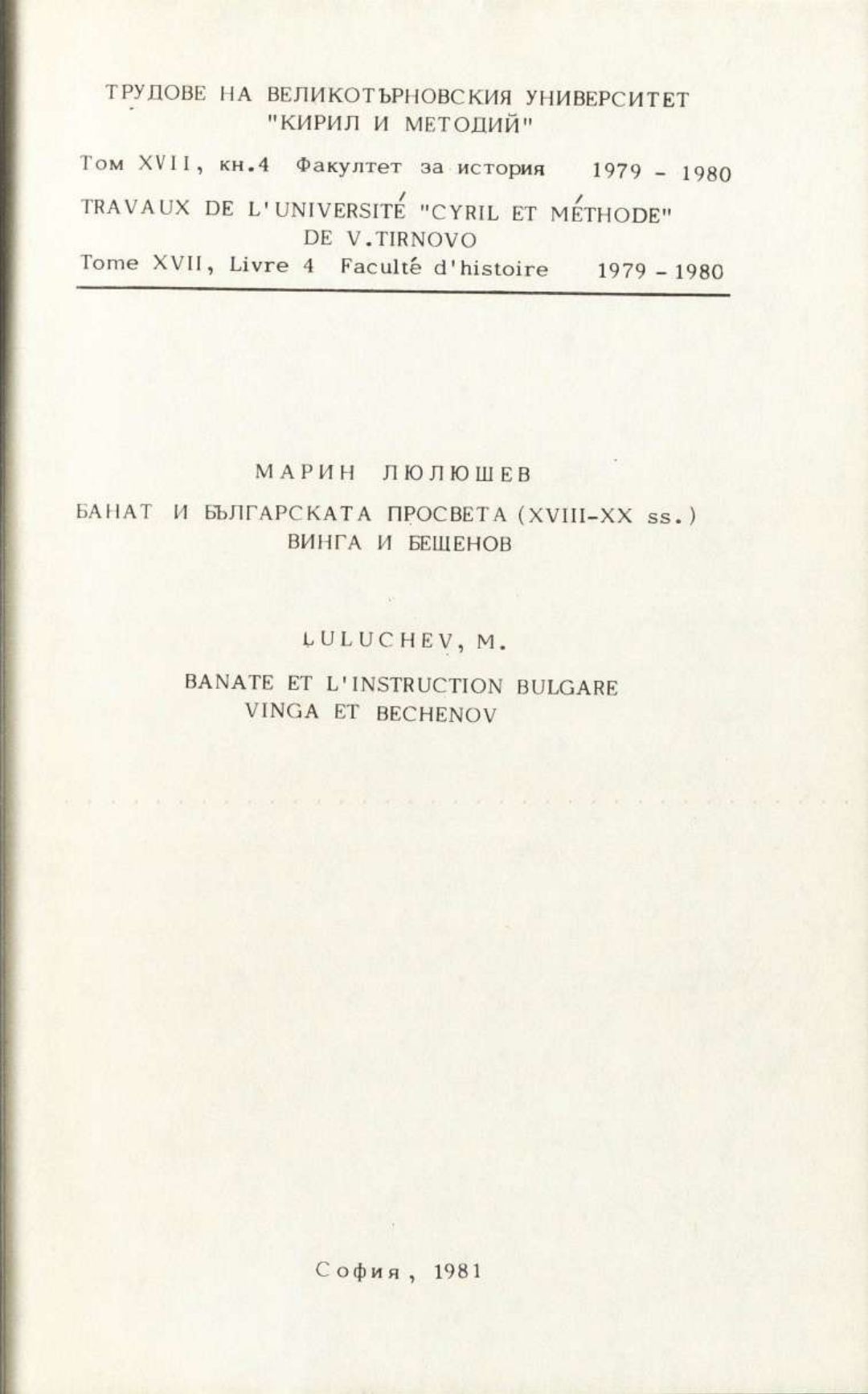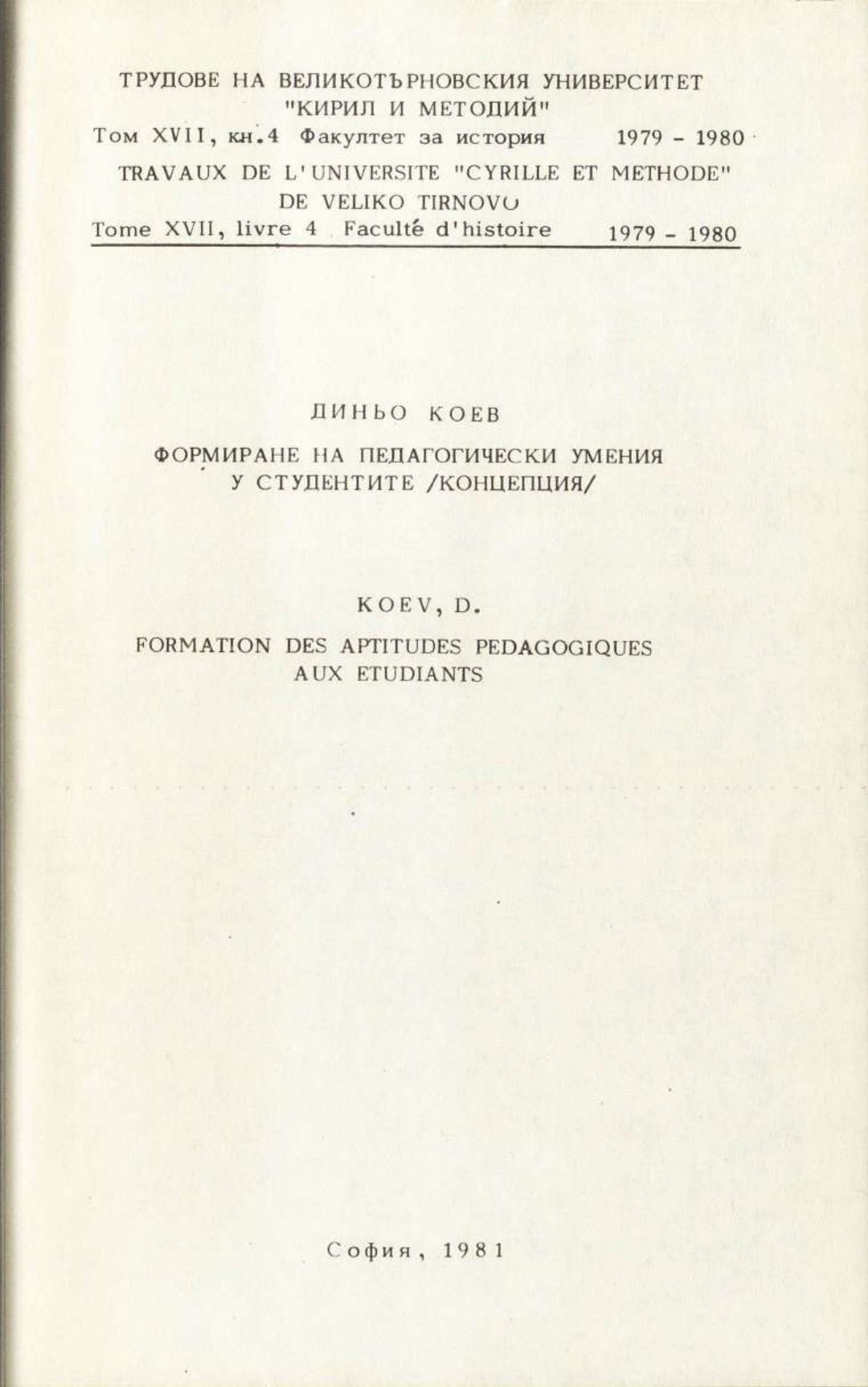 Том 17. Кн. 4. Трудове на Великотърновския университет "Св. св. Кирил и Методий". Исторически факултет = Travaux de L'universite St. St. Cyrille et Methode de V. Tirnovo. Faculte histoire