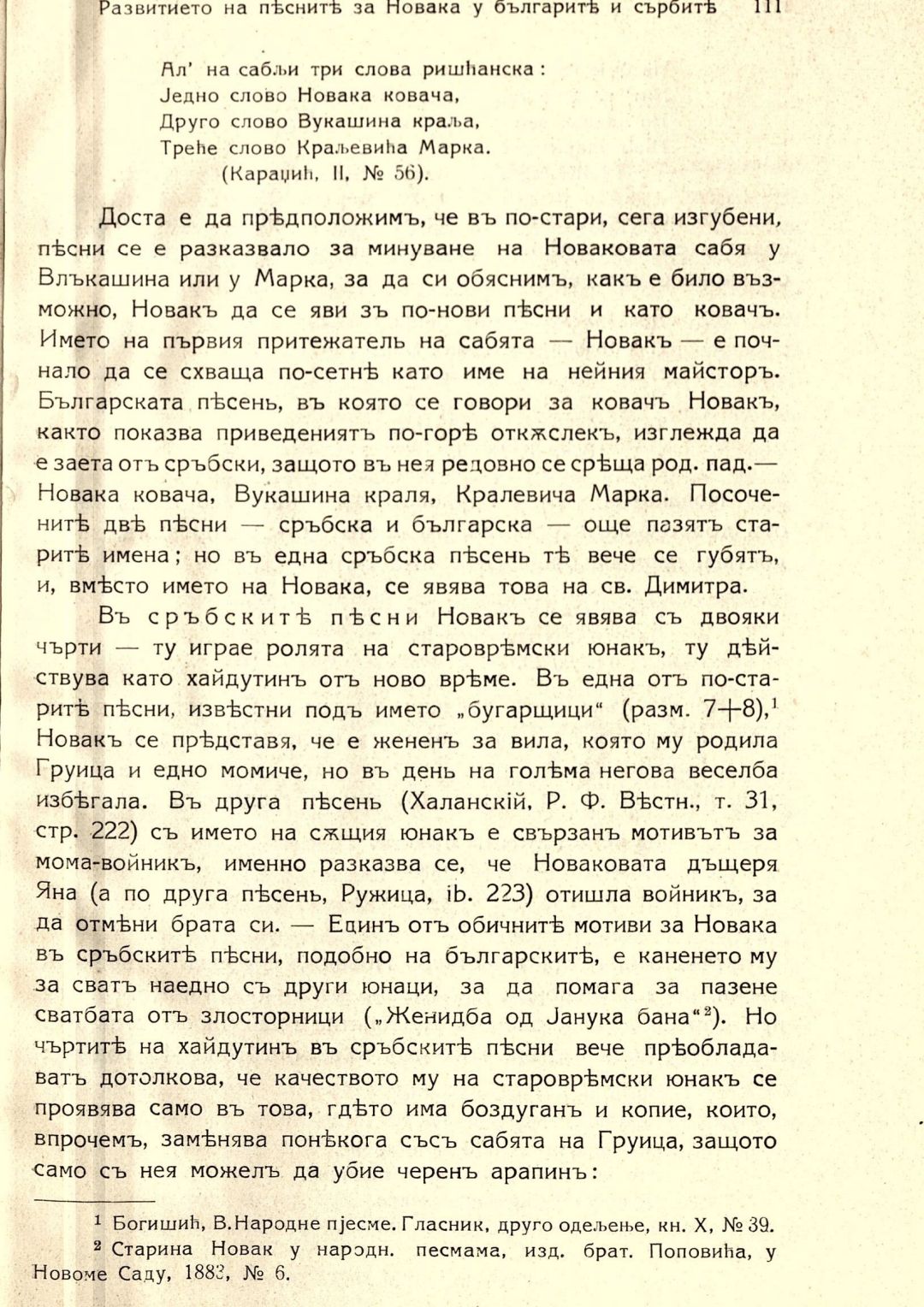 Бележки върху развитието на песните за Новака у българите и сърбите