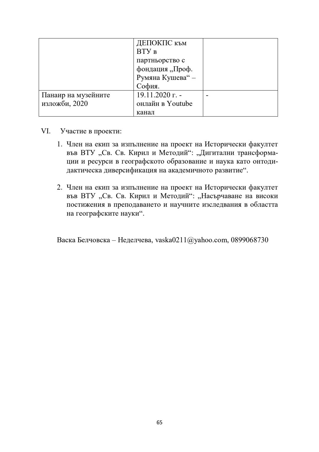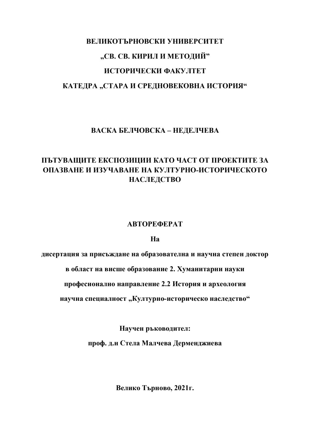 Пътуващите експозиции като част от проектите за опазване и изучаване на културно-историческото наследство : Автореферат / Васка Белчовска-Неделчева ; Науч. ръководител Стела Дерменджиева