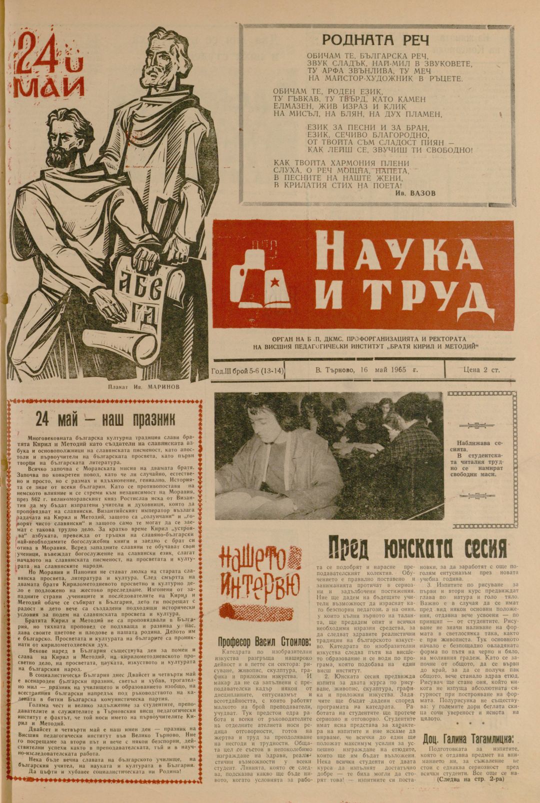 Год. 3, 5-6 (13-14). Наука и труд : Орган на Ректората, ДКМС и Профкомитета при ВПИ "Братя Кирил и Методий"
