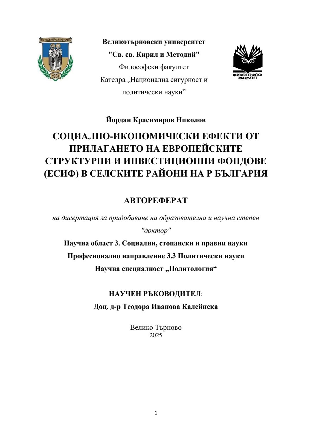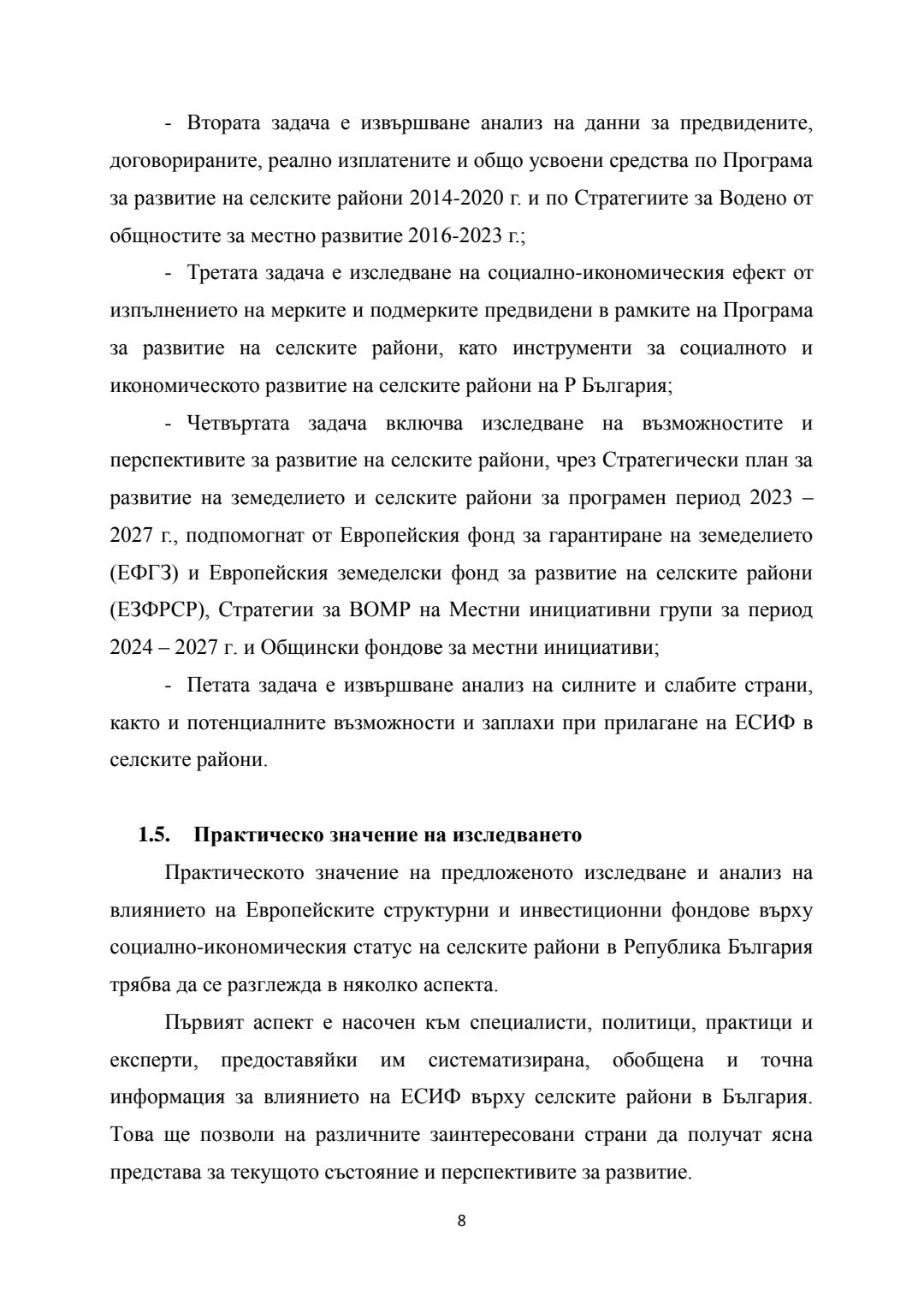 Социално-икономически ефекти от прилагането на европейските структурни и инвестиционни фондове (ЕСИФ) в селските райони на Р България : Автореферат / Йордан Красимиров Николов ; Науч. ръководител Теодора Иванова Калейнска