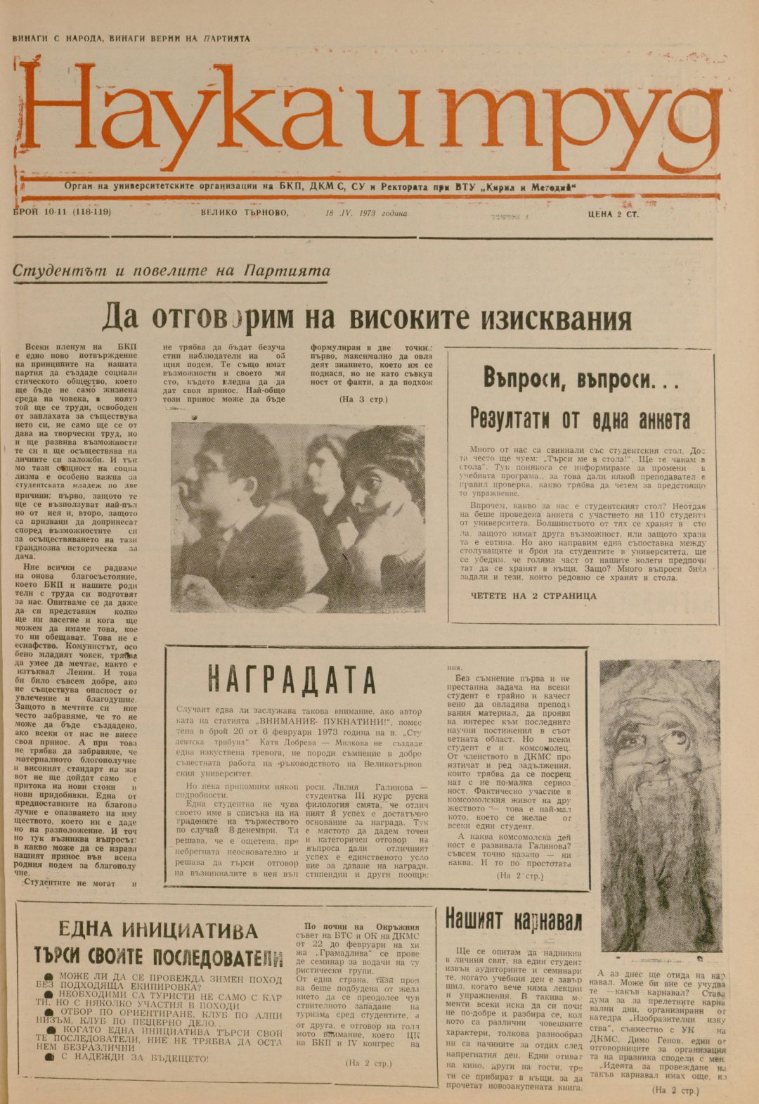 Год.12,10-11 (118-119). Наука и труд : Орган на институтските комитети на БКП, ДКМС, СУ и Ректората при ВПИ "Братя Кирил и Методий"