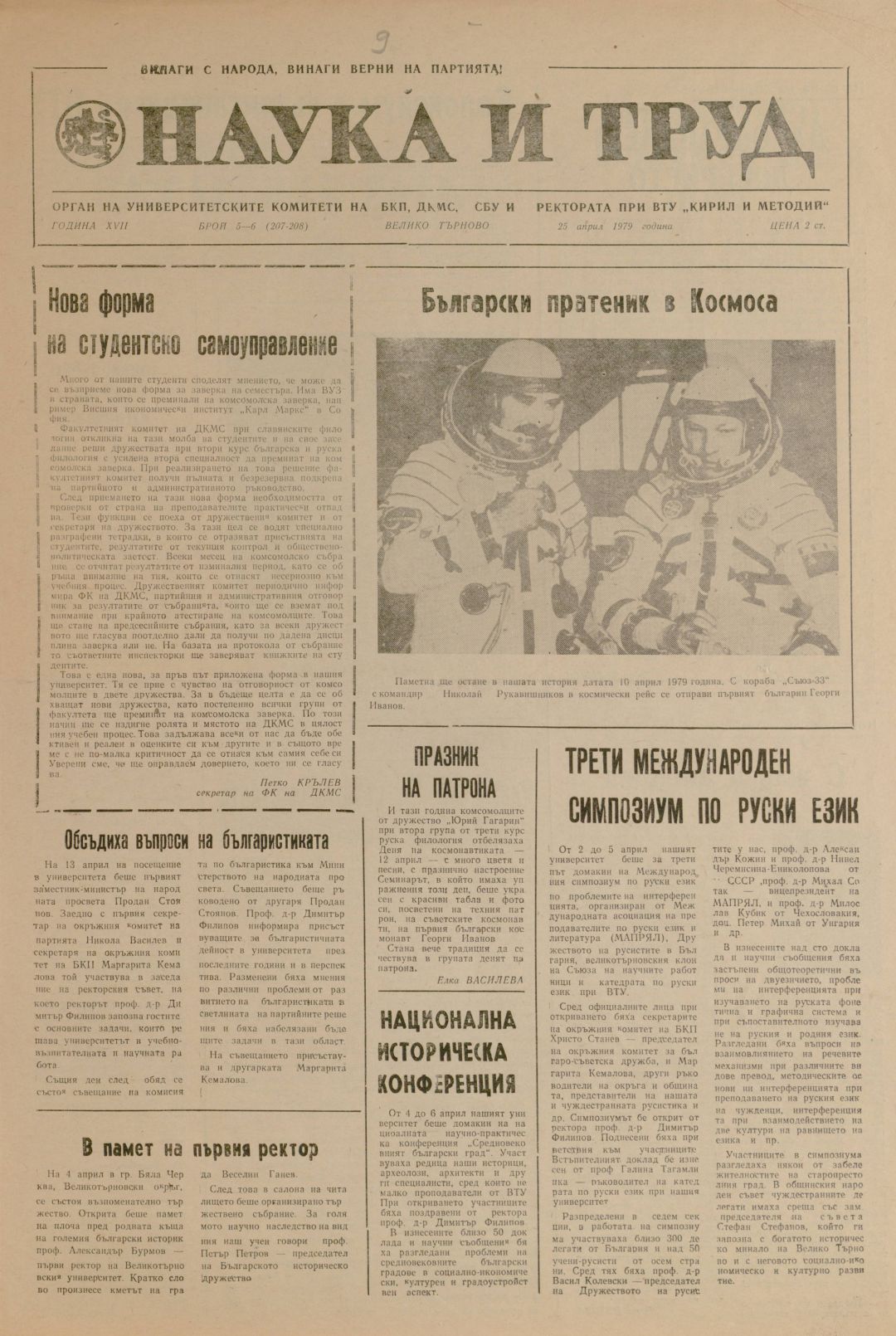 Год.18, 5-6 (207-208). Наука и труд : Орган на университетските комитети на БКП, ДКМС, СБУ и на Ректората при ВТУ "Братя Кирил и Методий"