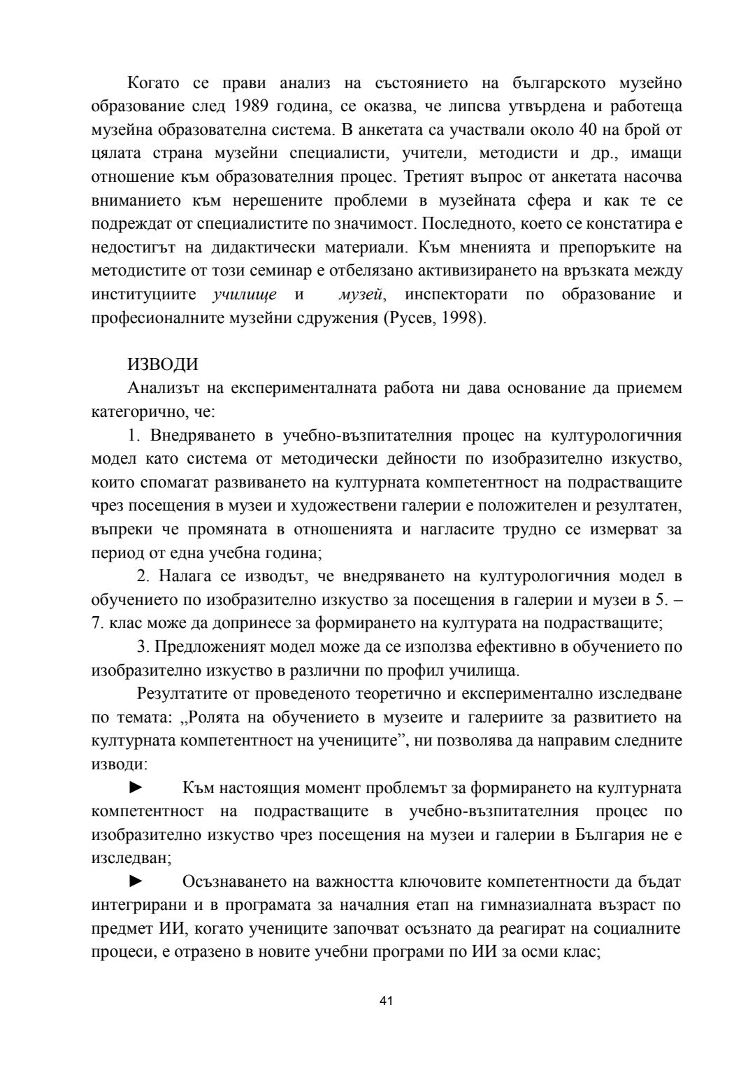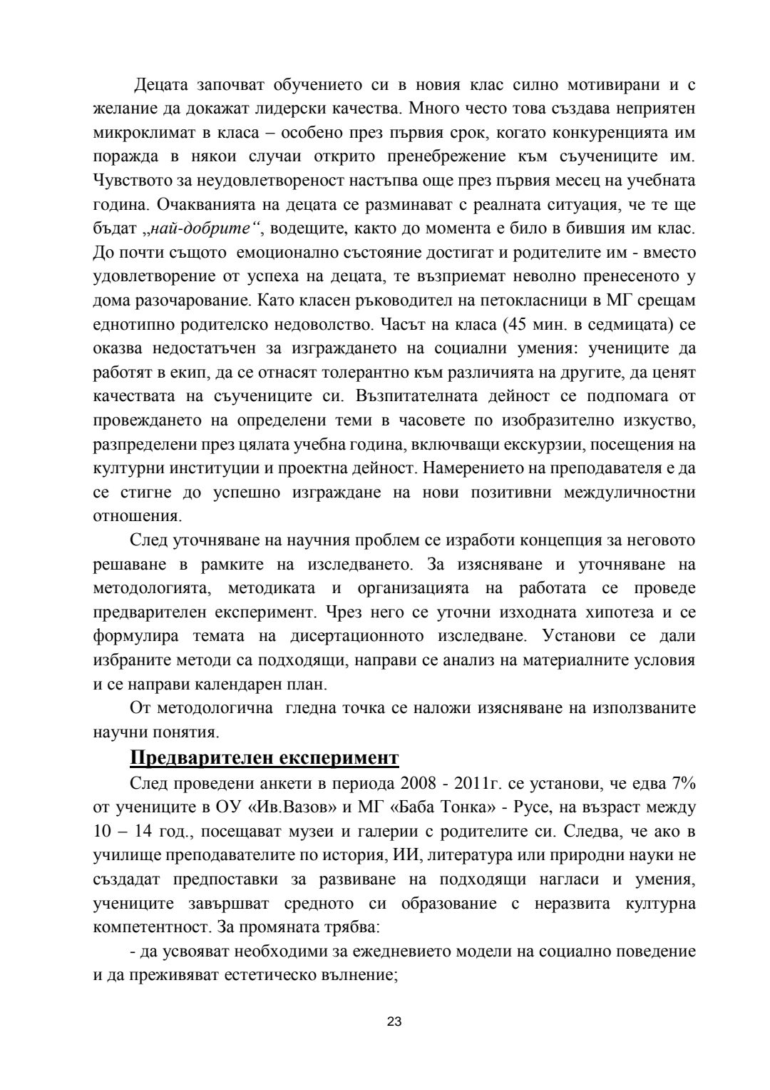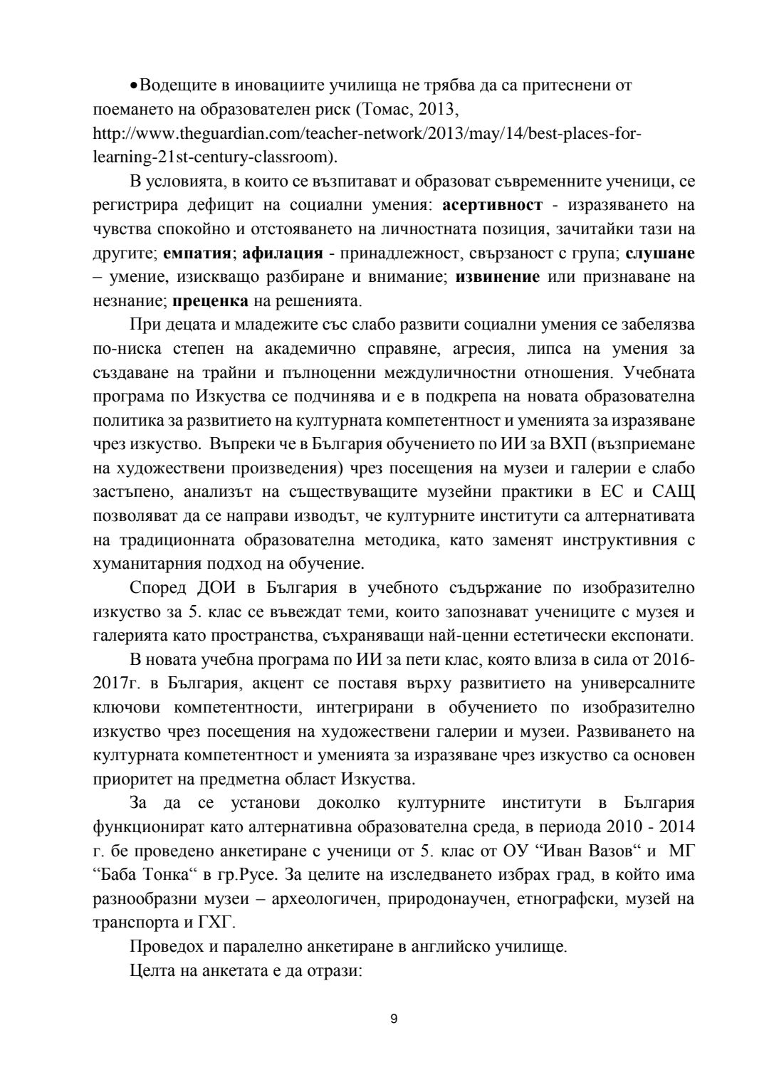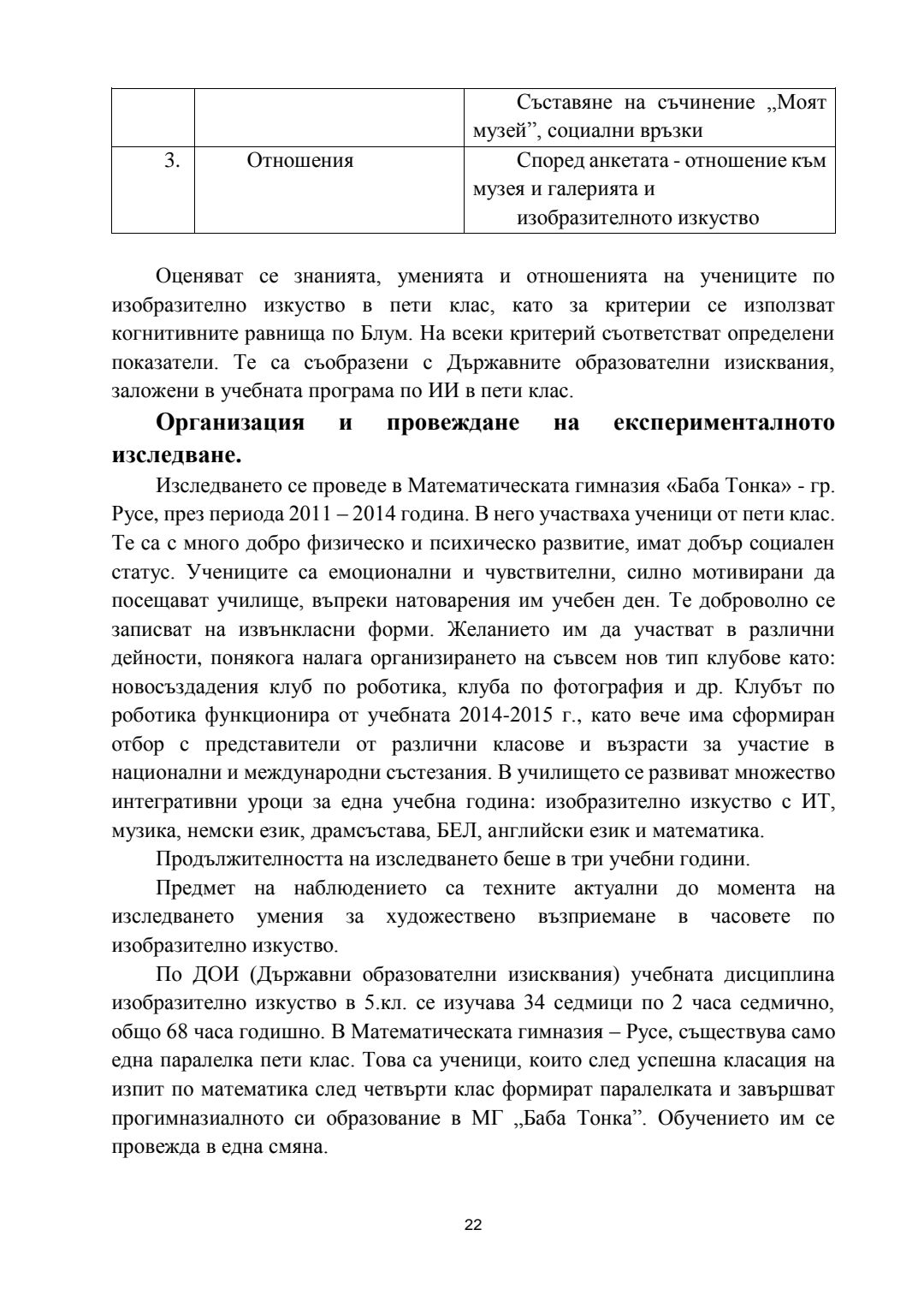 Ролята на обучението в музеите и галериите за развитието на културната компетентност на учениците : Автореферат / Вяра Георгиева Гунева-Георгиева ; Науч. ръководител Мариана Гърмидолова