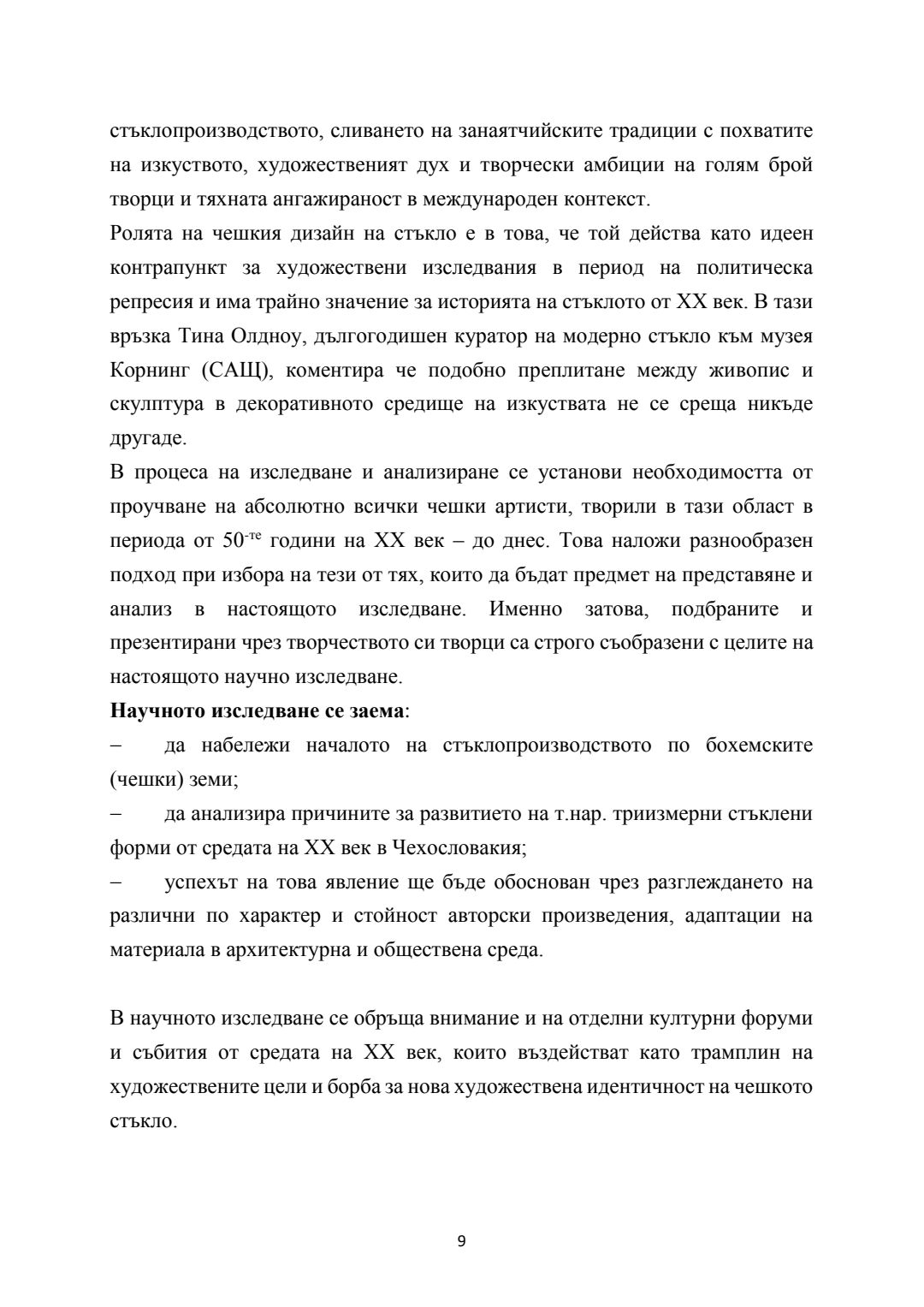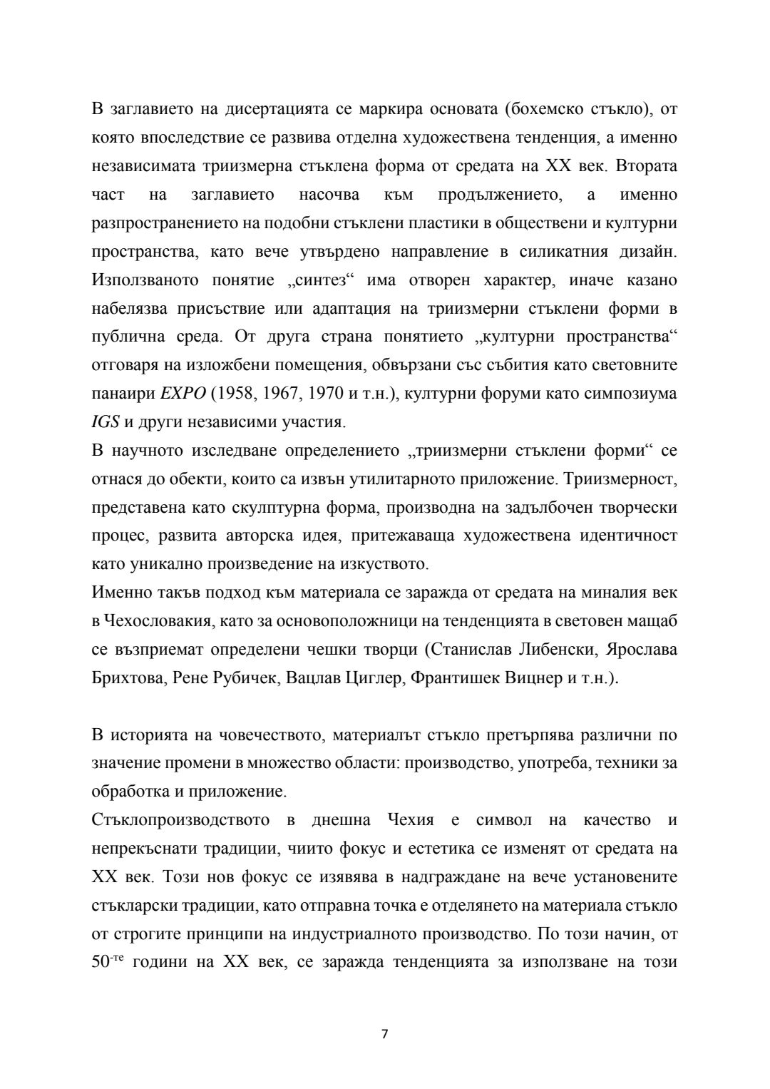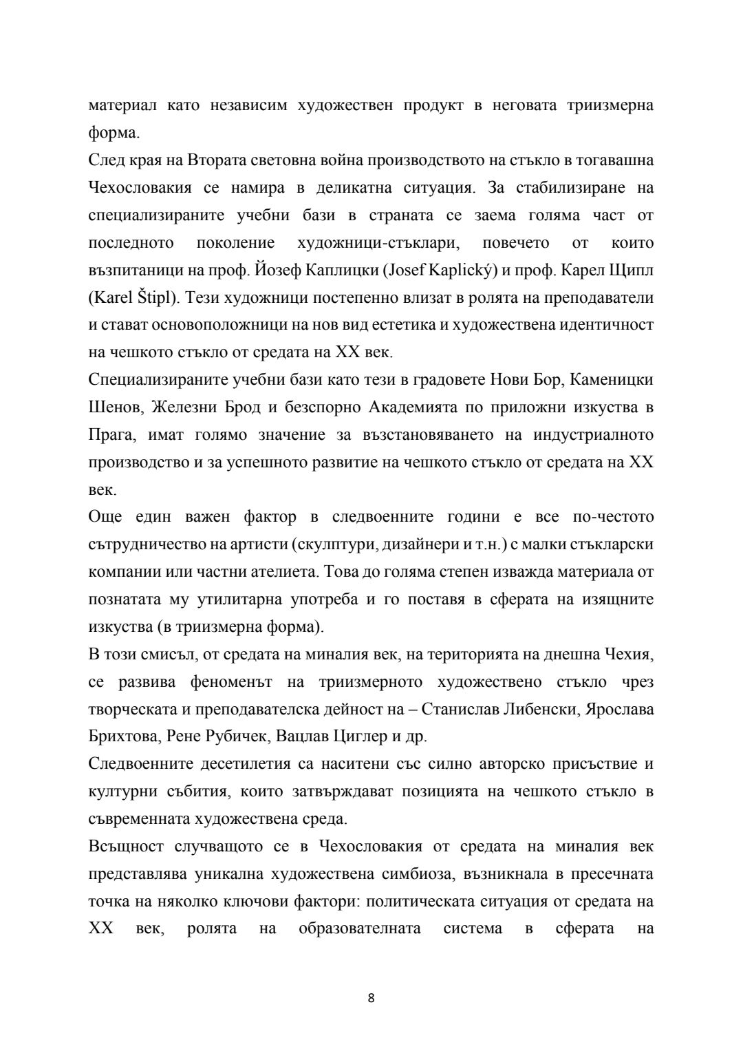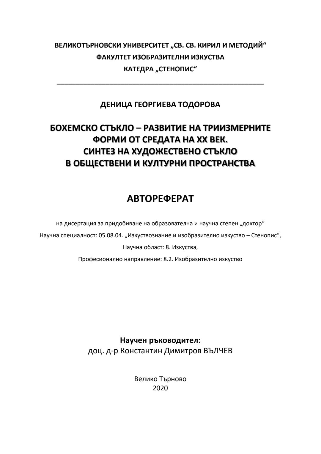 Бохемско стъкло - развитие на триизмерните форми от средата на ХХ век. Синтез на художествено стъкло в обществени и културни пространства : Автореферат / Деница Георгиева Тодорова ; Науч. ръководител Константин Димитров Вълчев