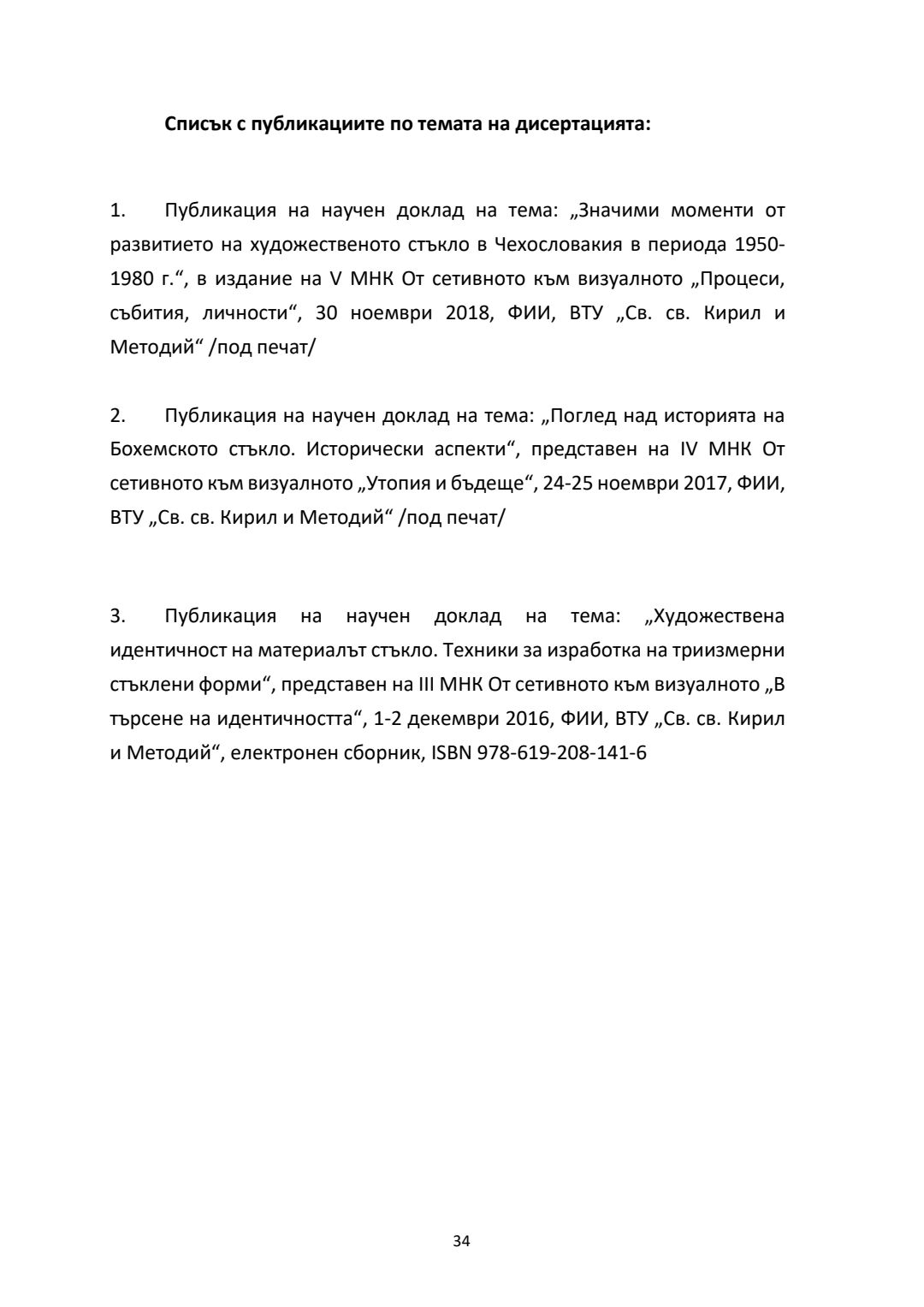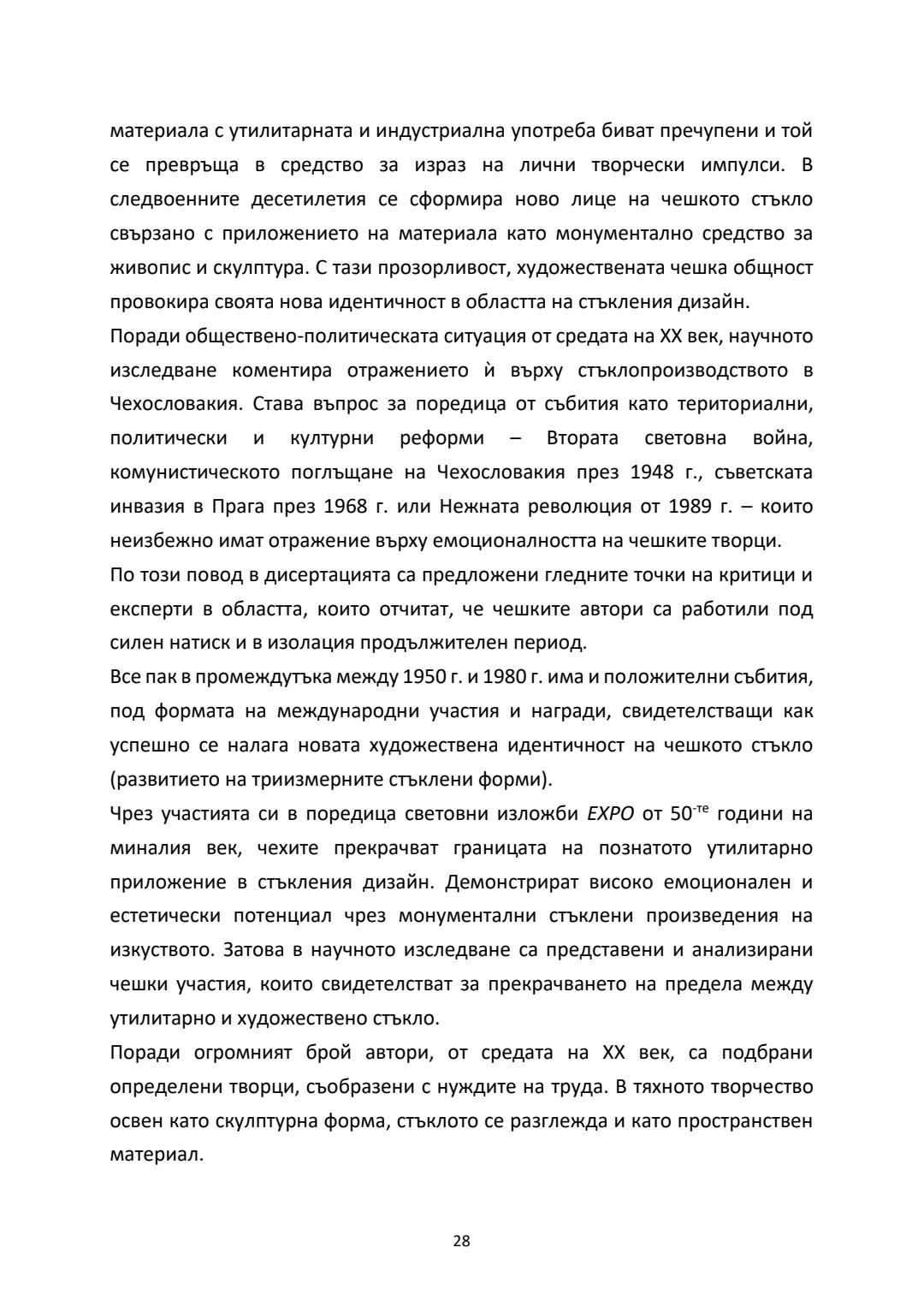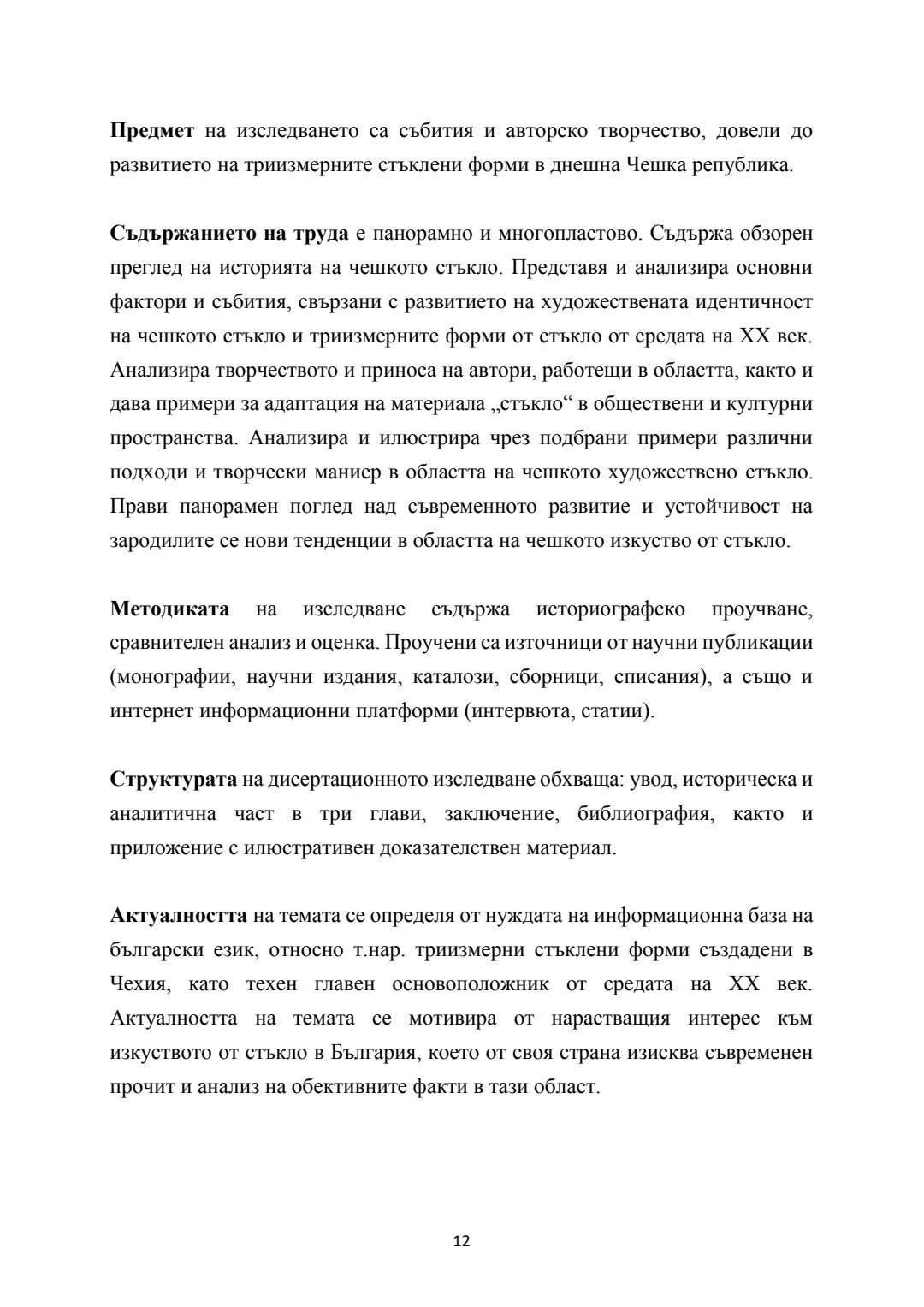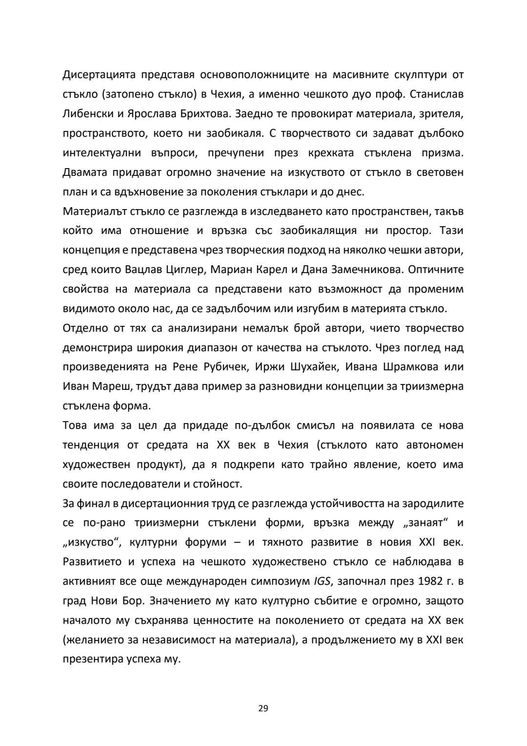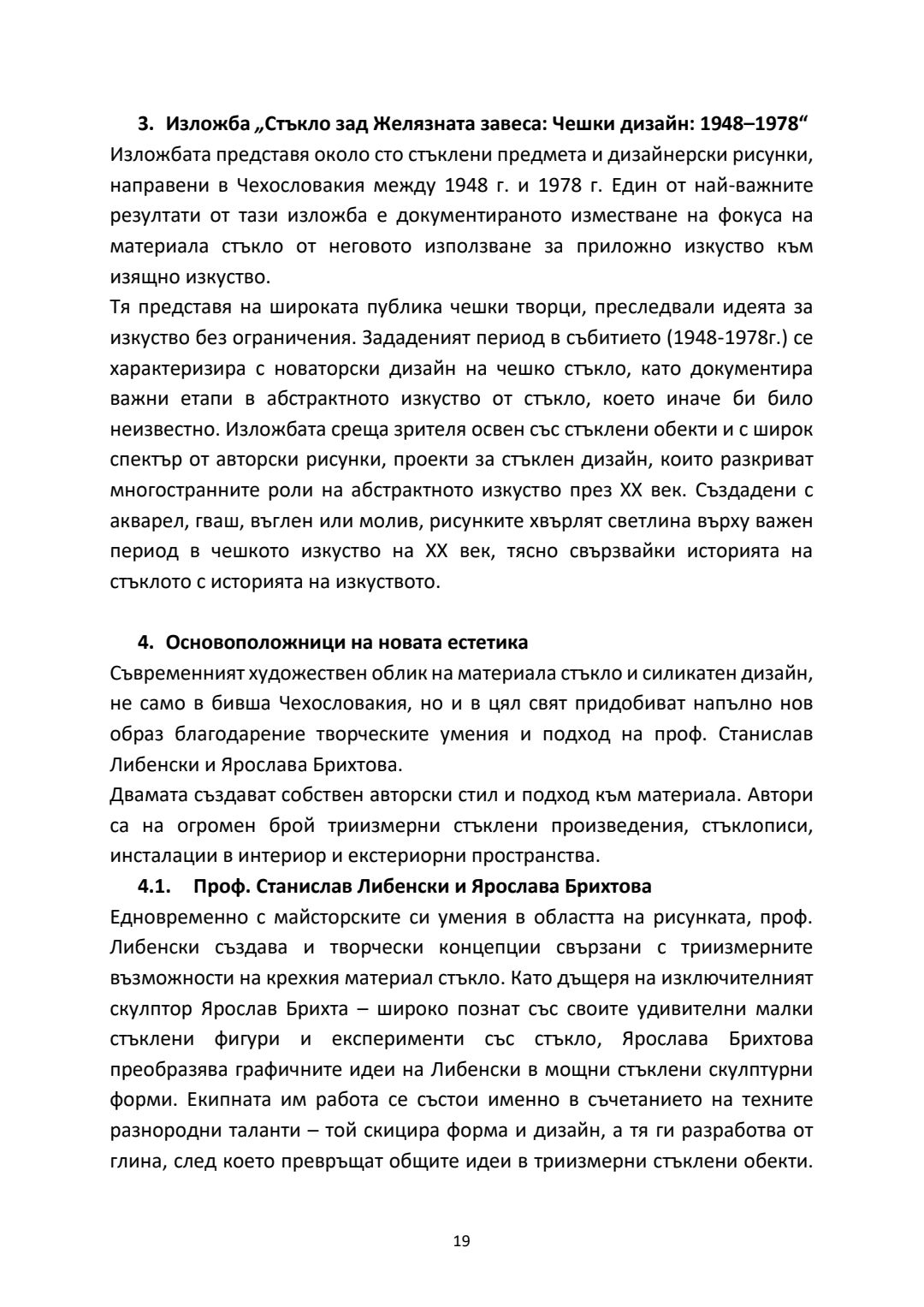 Бохемско стъкло - развитие на триизмерните форми от средата на ХХ век. Синтез на художествено стъкло в обществени и културни пространства : Автореферат / Деница Георгиева Тодорова ; Науч. ръководител Константин Димитров Вълчев