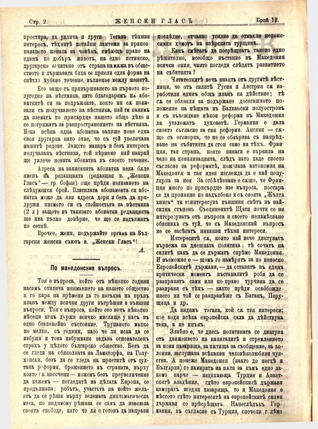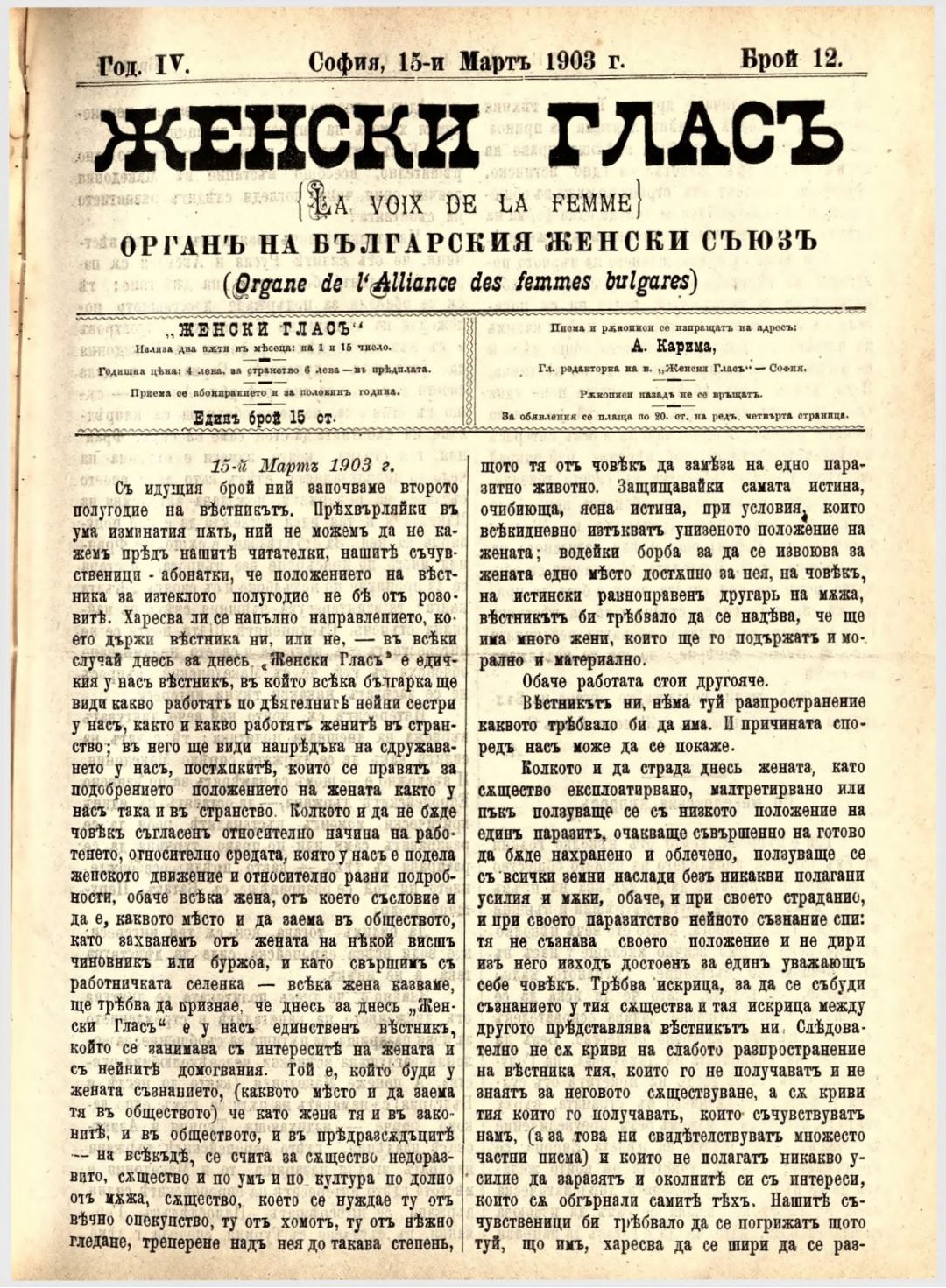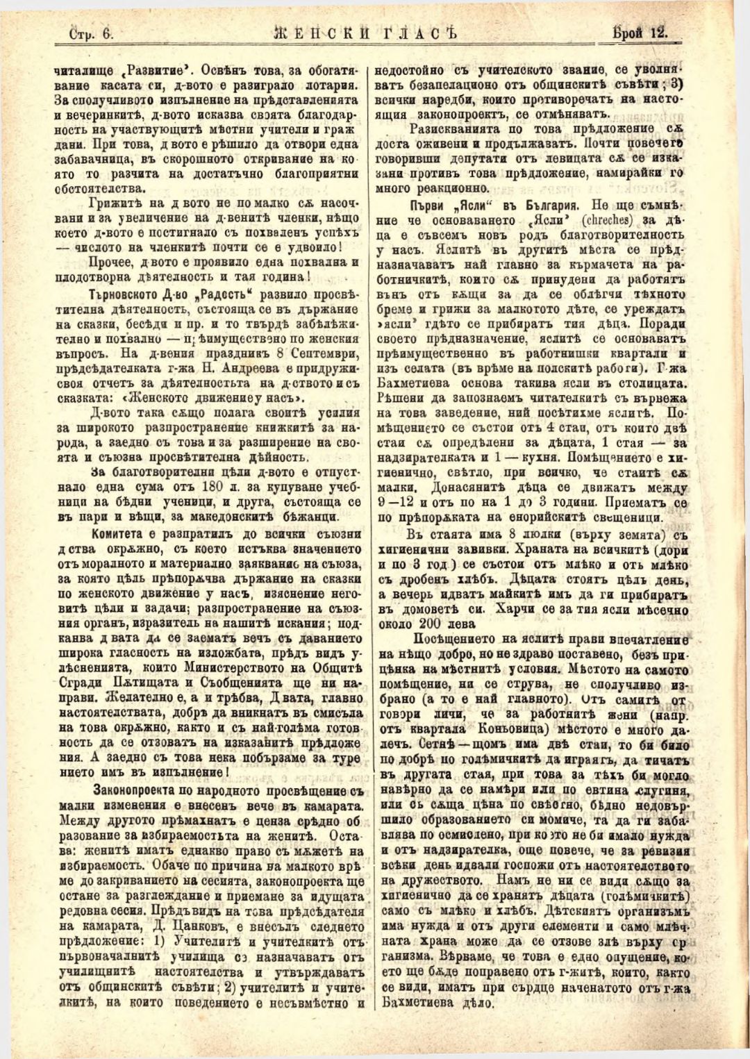 Год. 4,№ 12 Женски глас : Орган на българския женски съюз