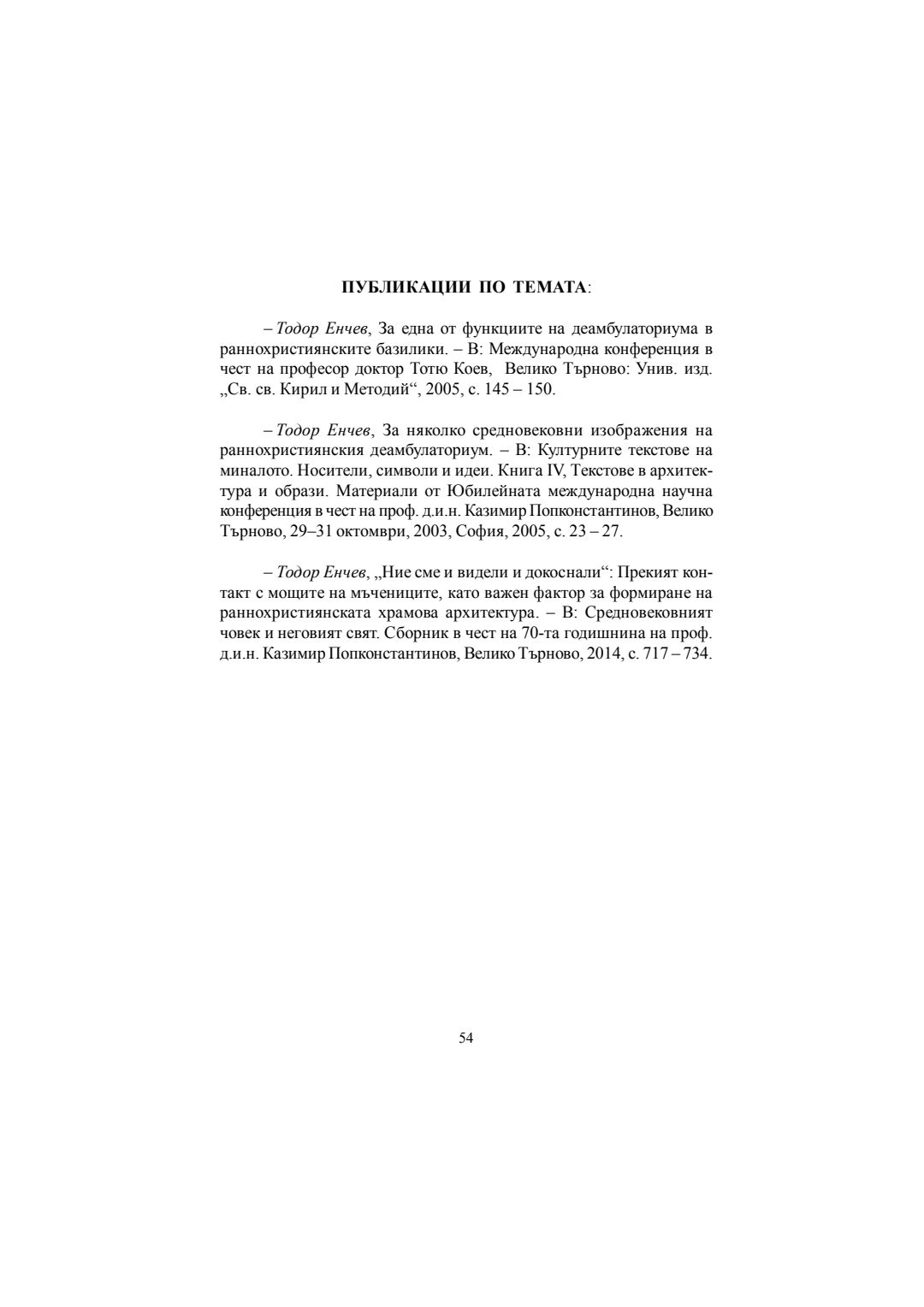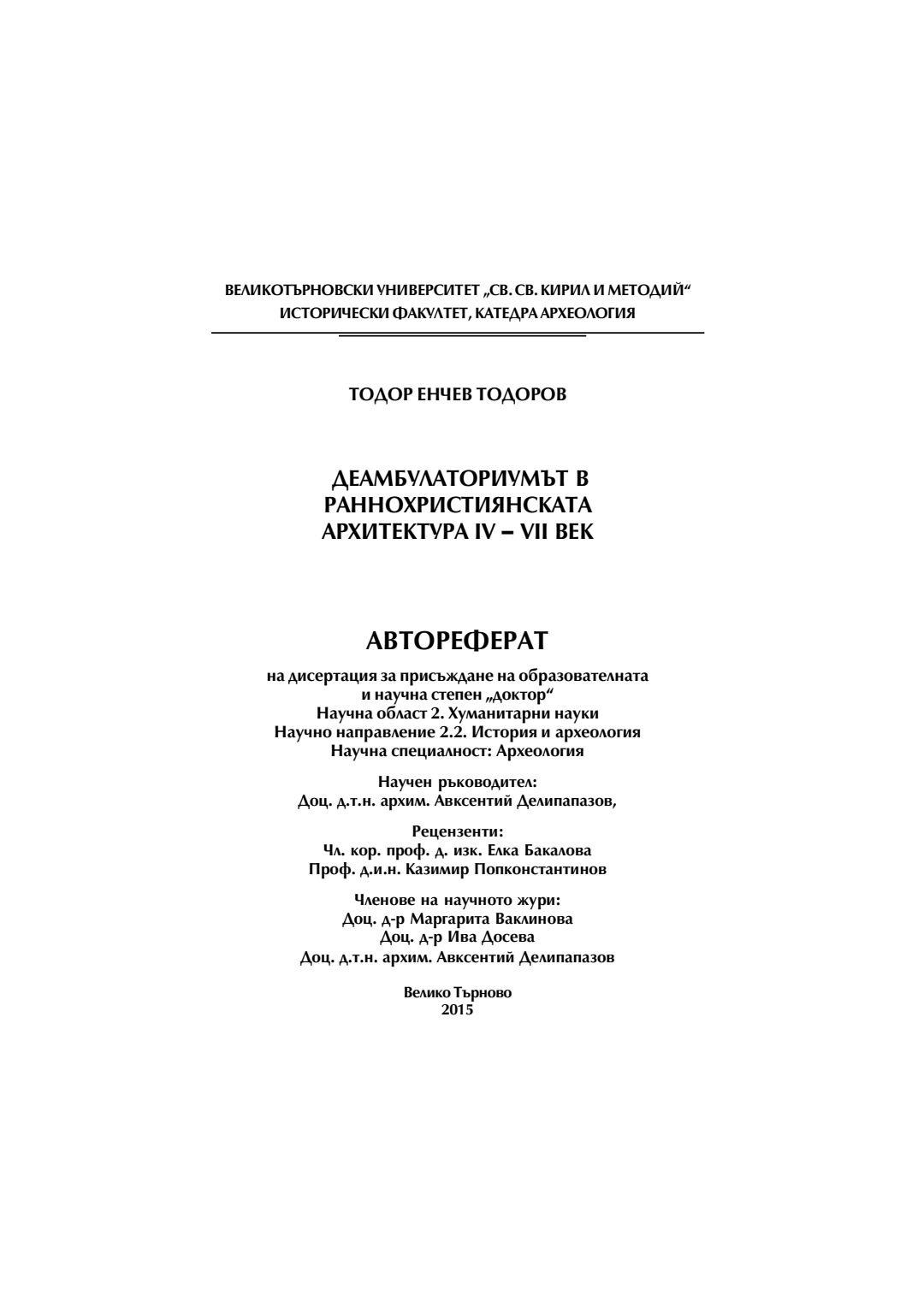 Деамбулаториумът в раннохристиянската архитектура ІV-VІІ в. : Автореферат / Тодор Енчев Тодоров ; Науч. Ръководител архим. Авксентий Делипапазов