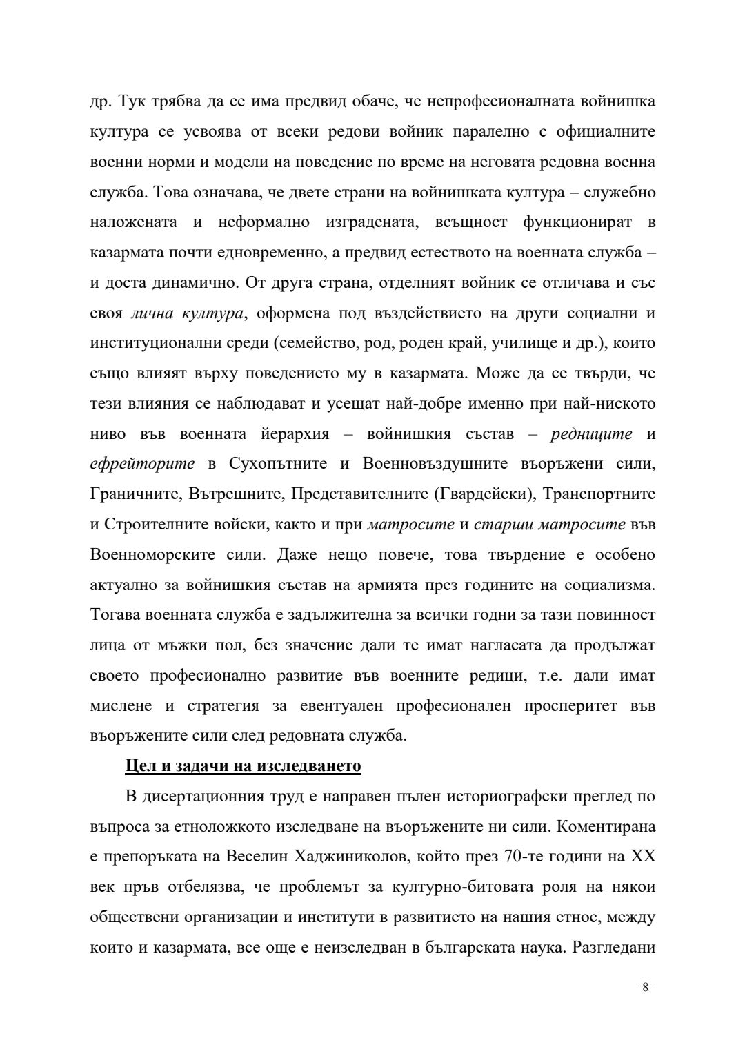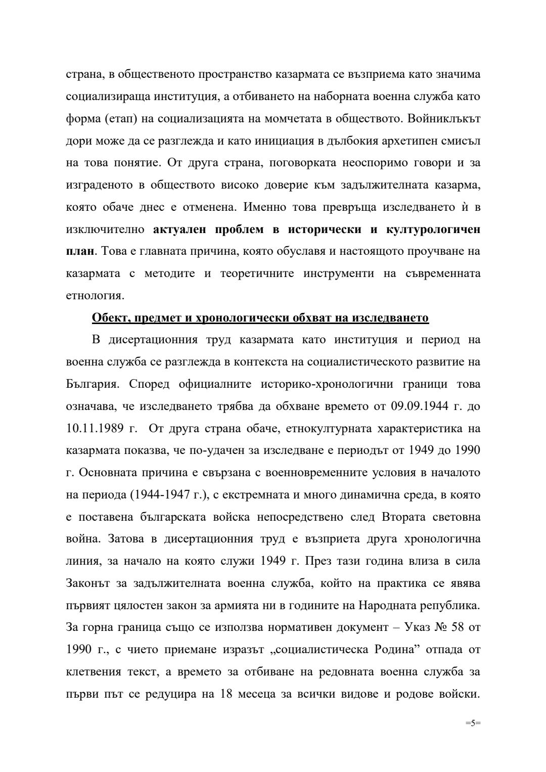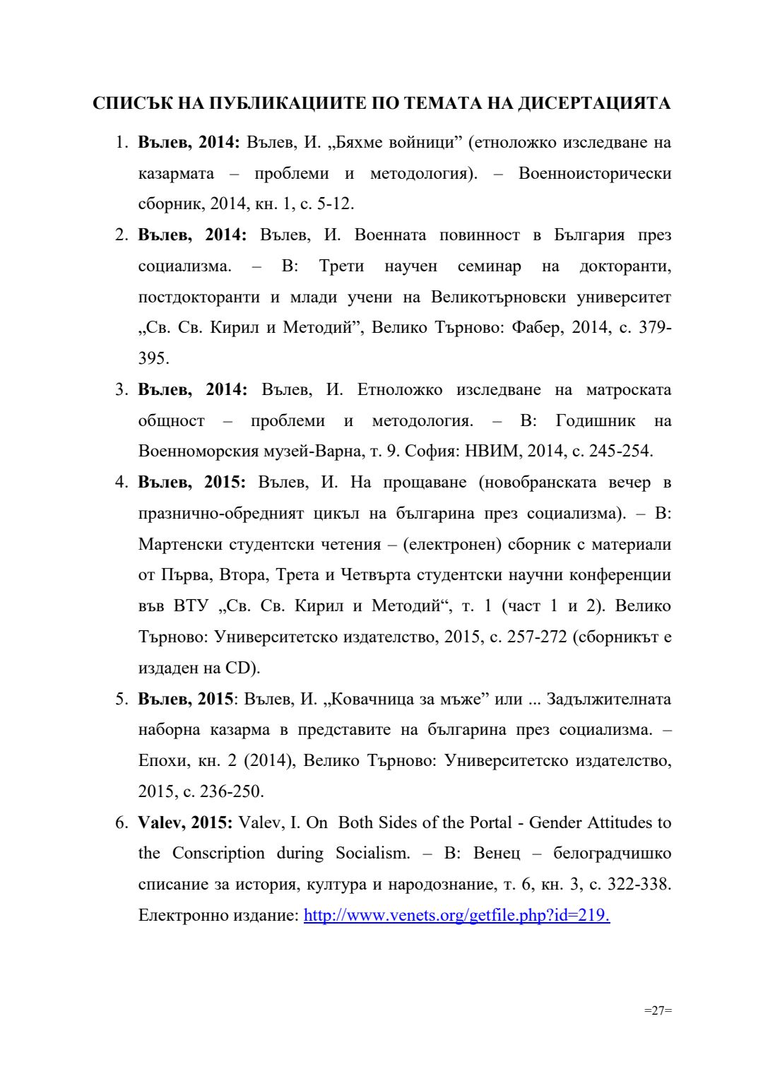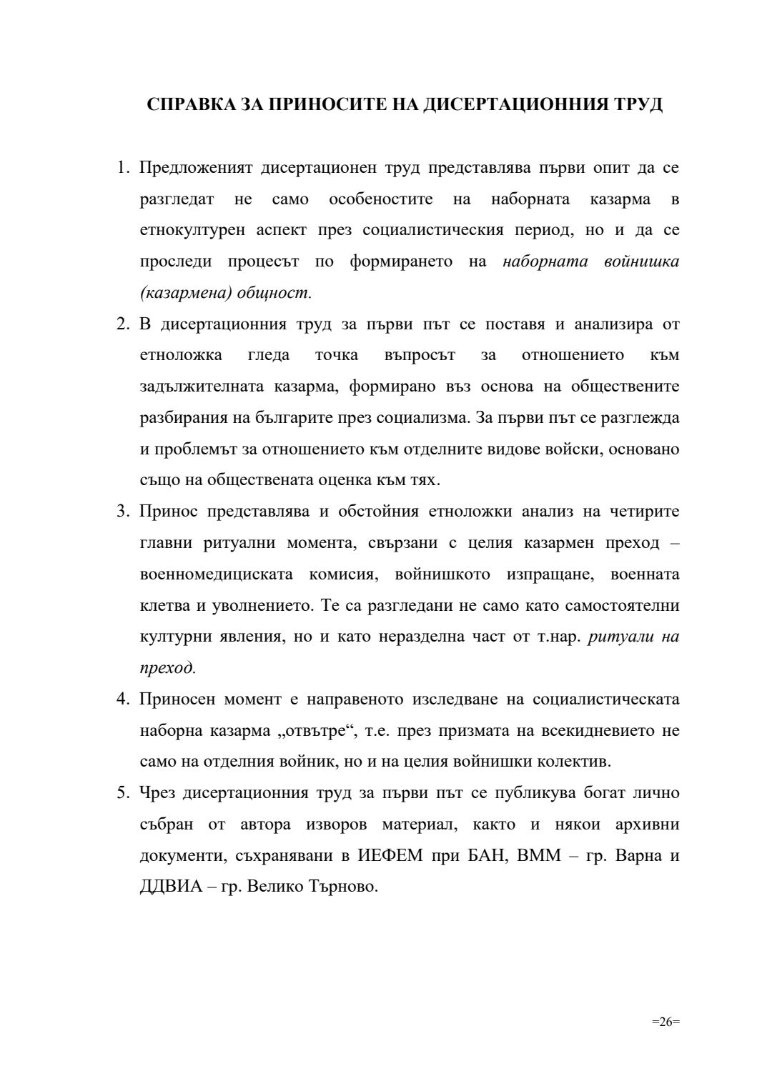 Етнокултурна характеристика на казармата през социализма (1944-1989 г.) / Илия Желязков Вълев ; Науч. ръководител Мария Иванова