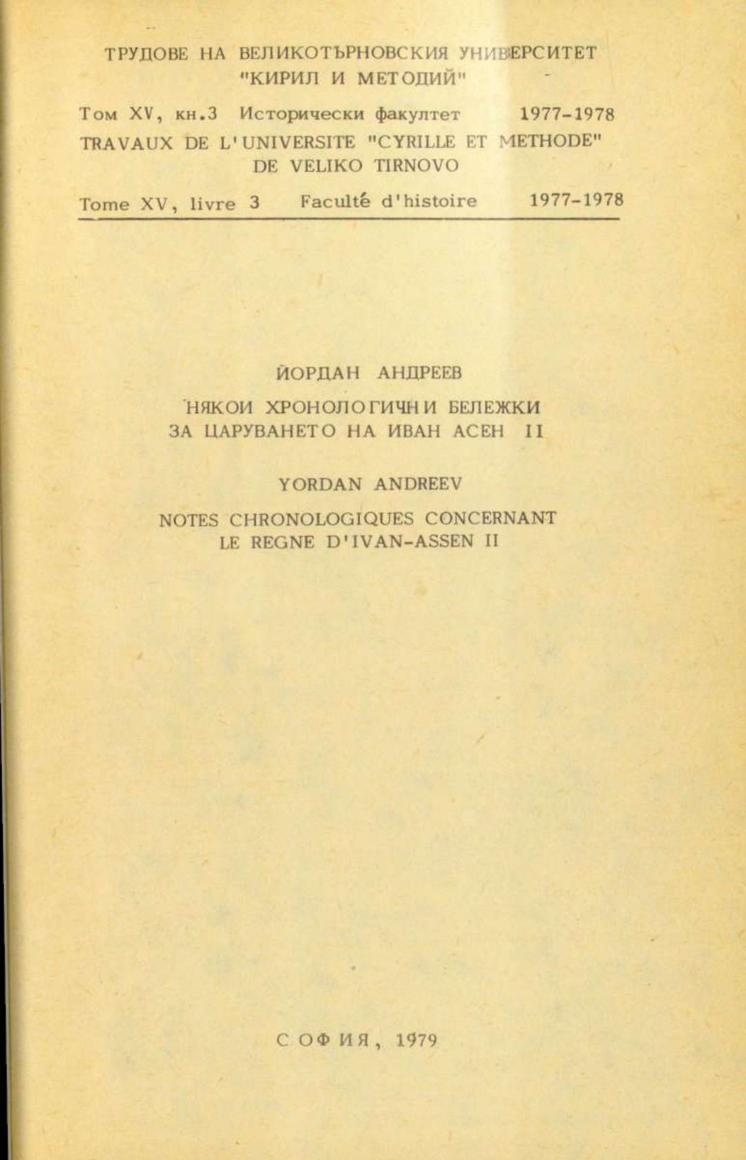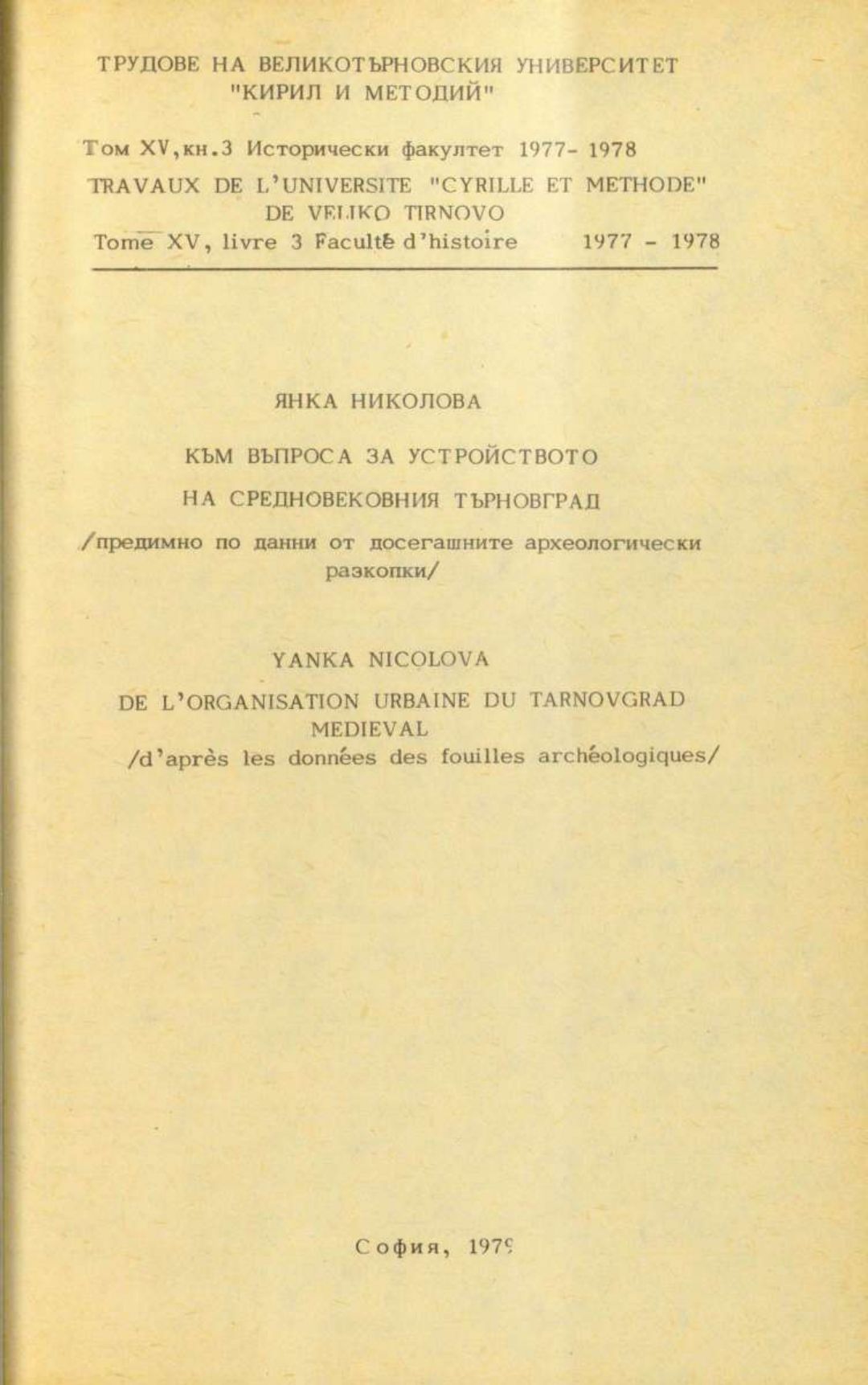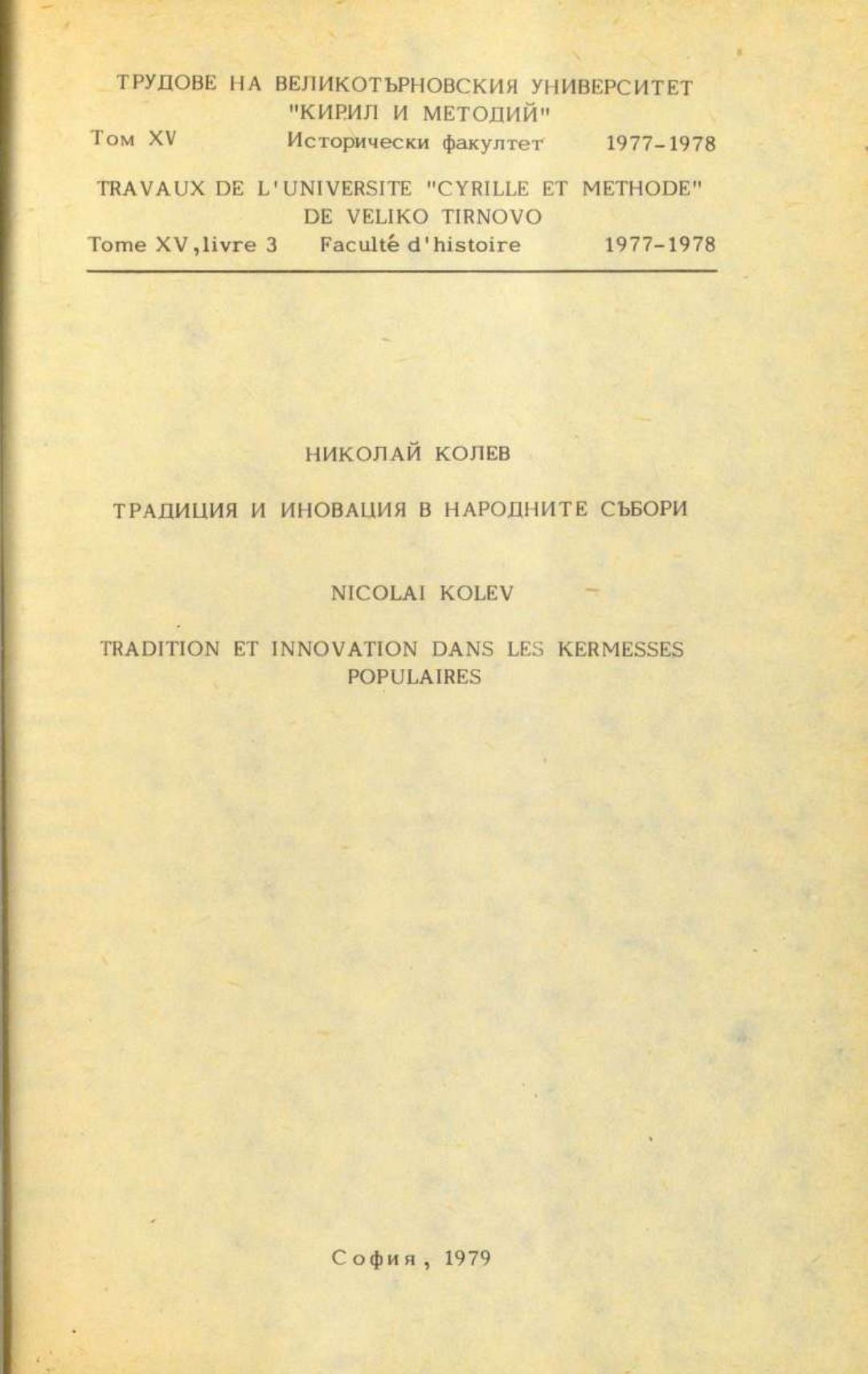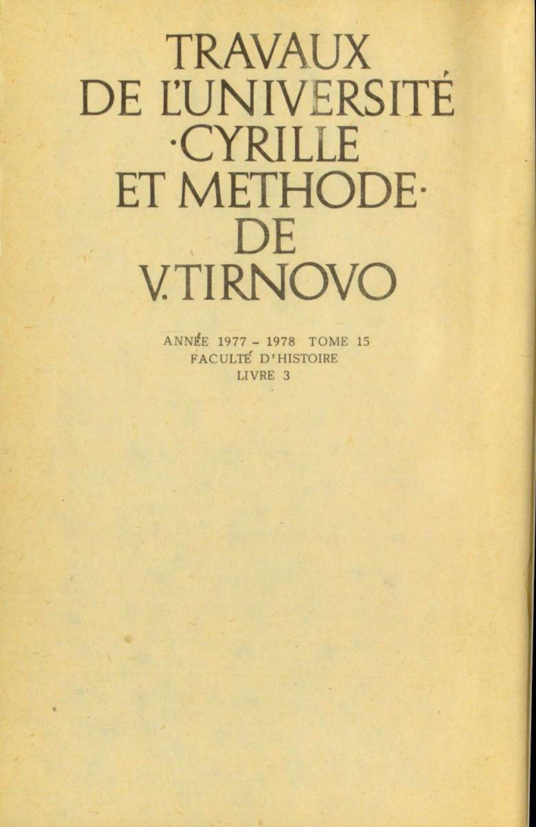 Том 15. Кн. 3. Трудове на Великотърновския университет "Св. св. Кирил и Методий". Исторически факултет = Travaux de L'universite St. St. Cyrille et Methode de V. Tirnovo. Faculte histoire