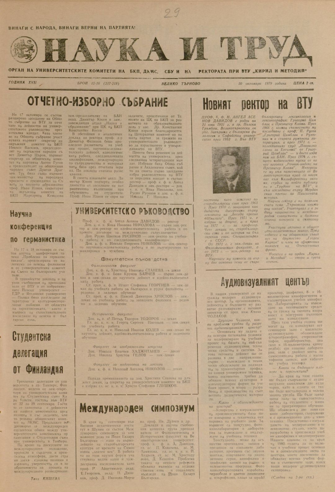 Год.18,15-16 (217-218). Наука и труд : Орган на университетските комитети на БКП, ДКМС, СБУ и на Ректората при ВТУ "Братя Кирил и Методий"