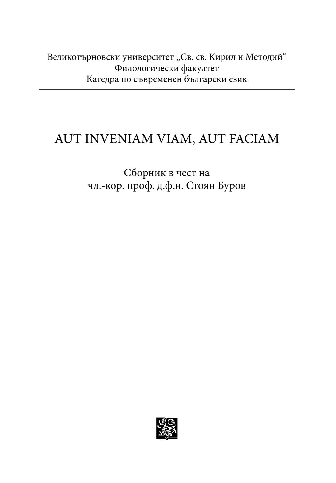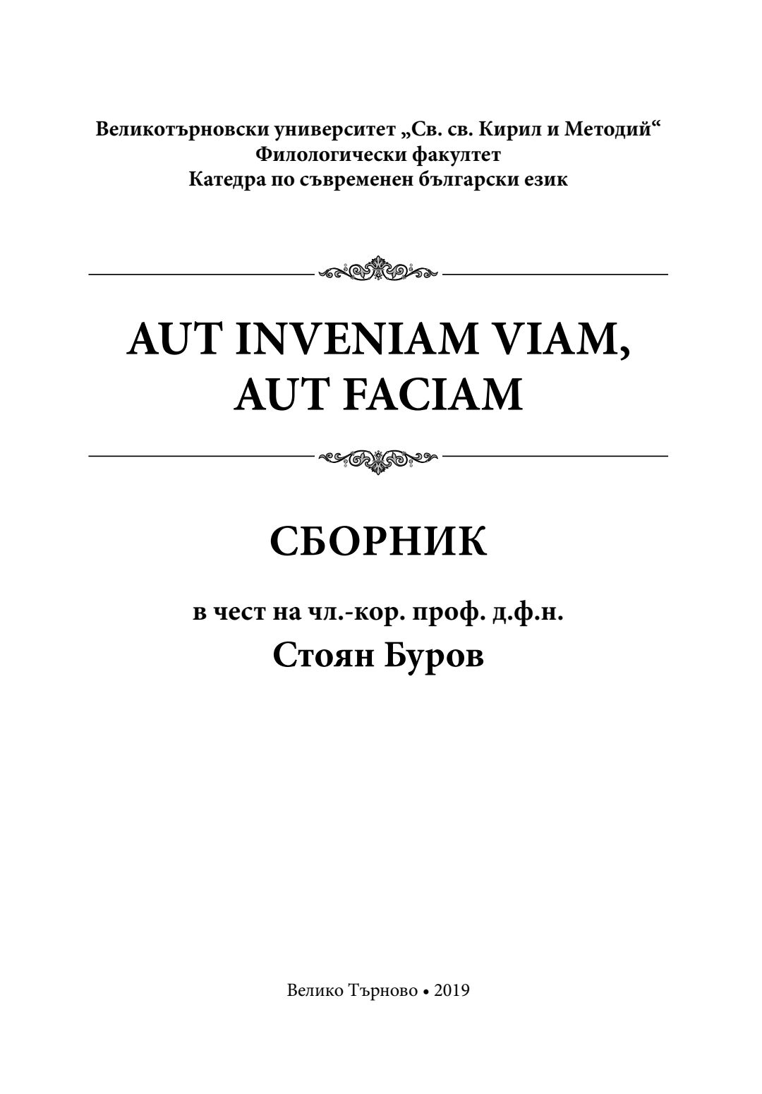 Aut inveniam viam, aut faciam : сборник в чест на чл.-кор. проф. д.ф.н. Стоян Буров