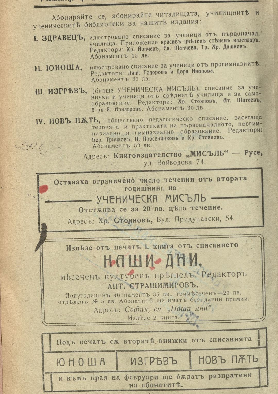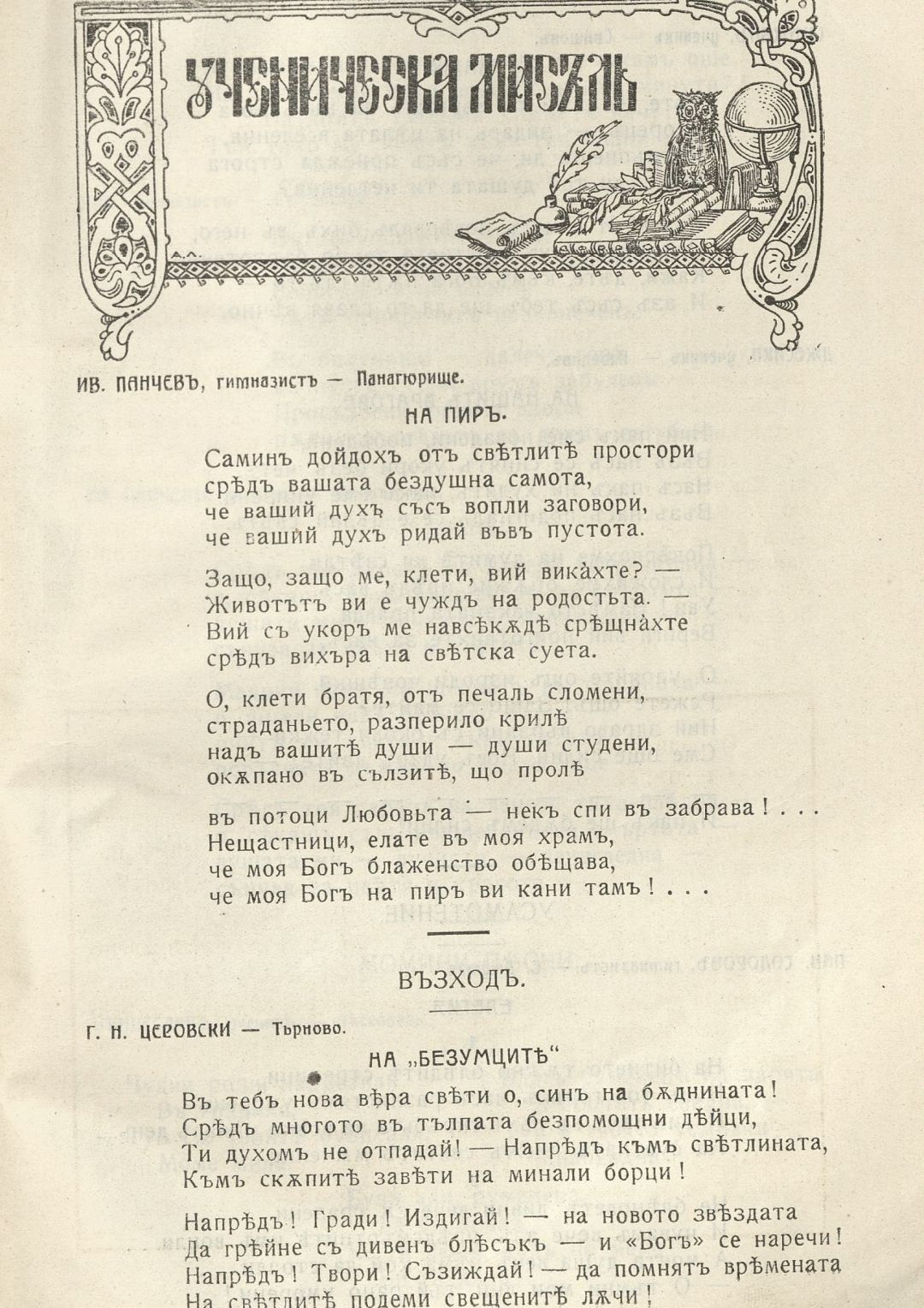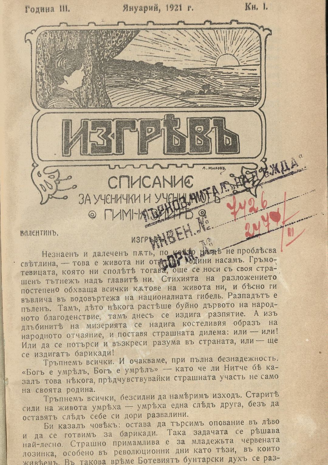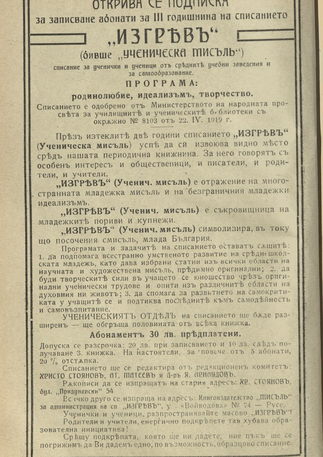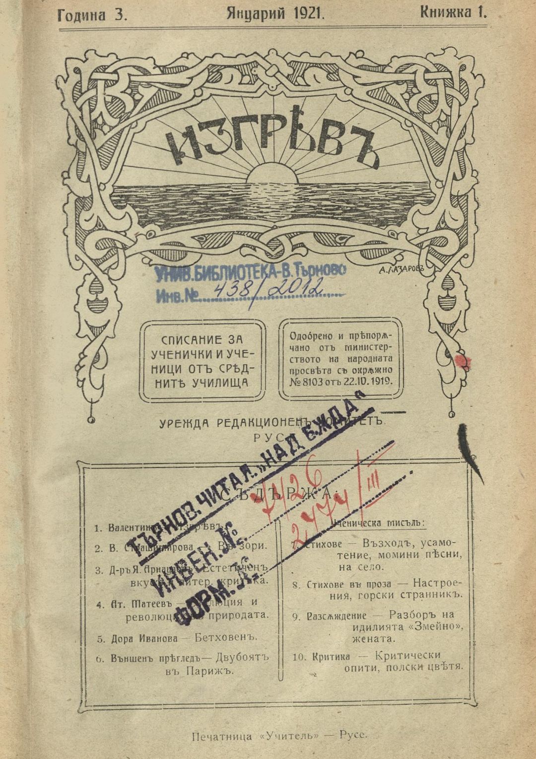 Год. 3, Кн. 1. Изгрев : Списание за ученички и ученици от средните училища
