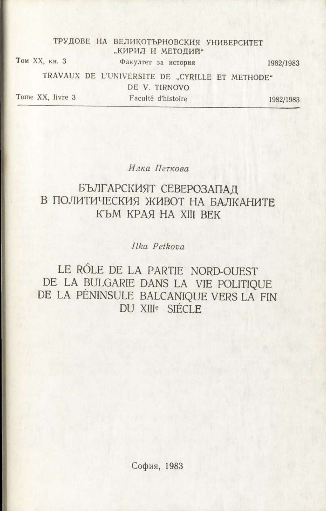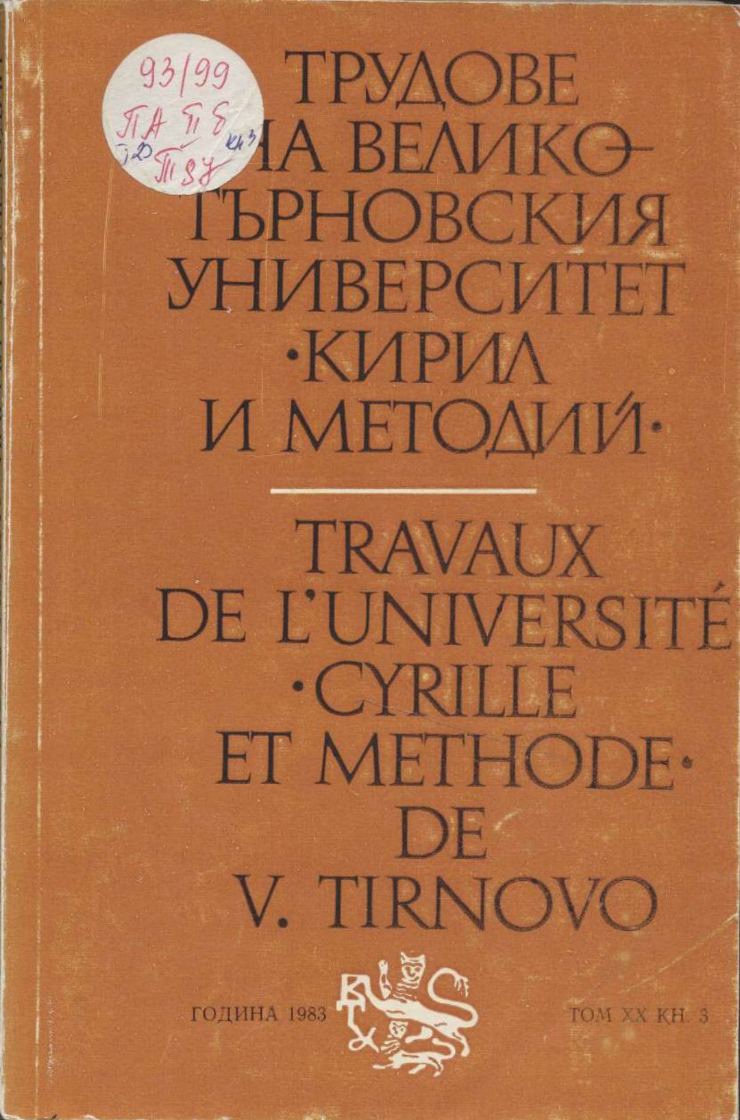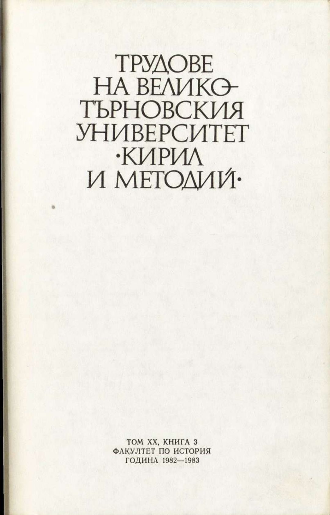 Том 20. Кн. 3. Трудове на Великотърновския университет "Св. св. Кирил и Методий". Исторически факултет = Travaux de L'universite St. St. Cyrille et Methode de V. Tirnovo. Faculte histoire