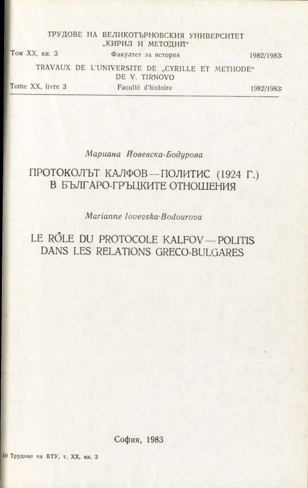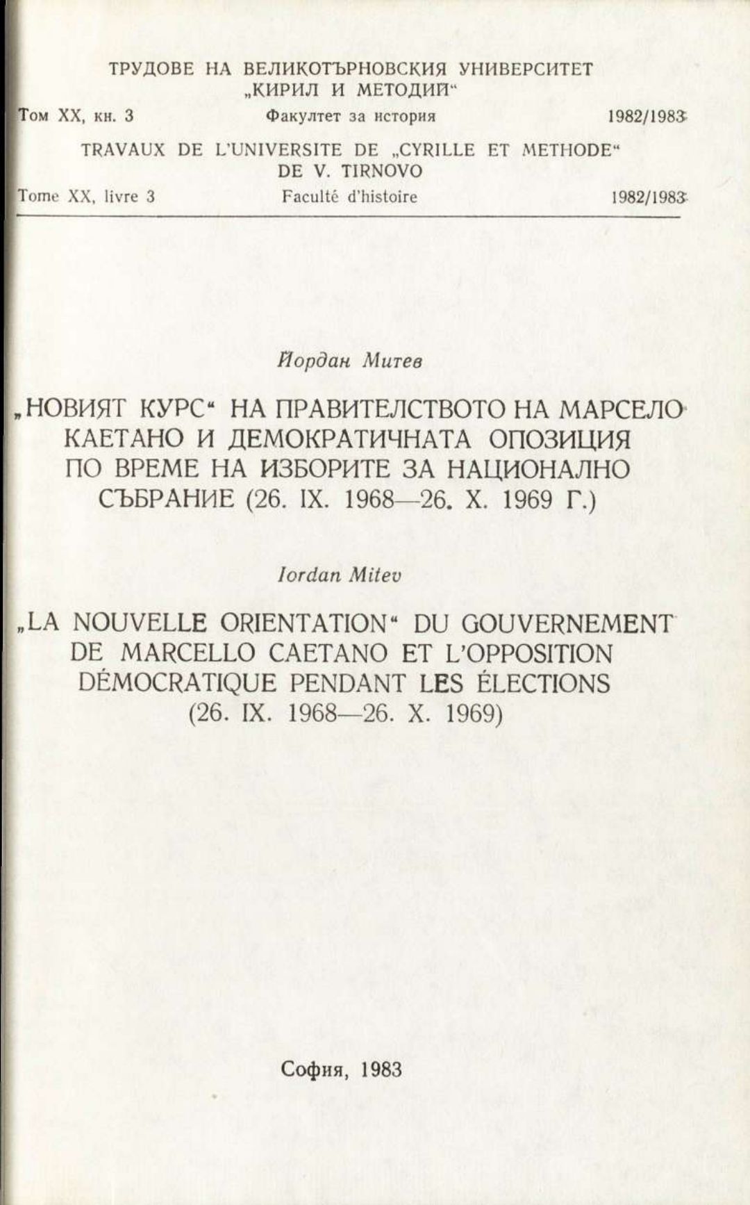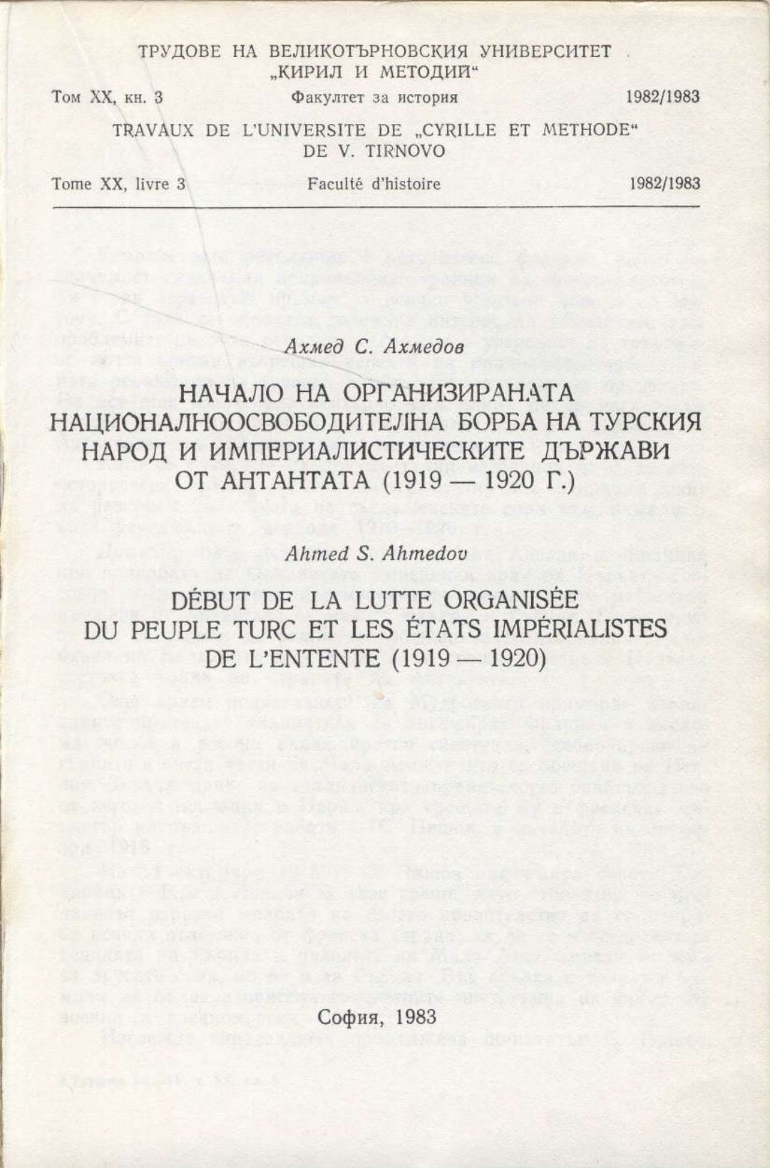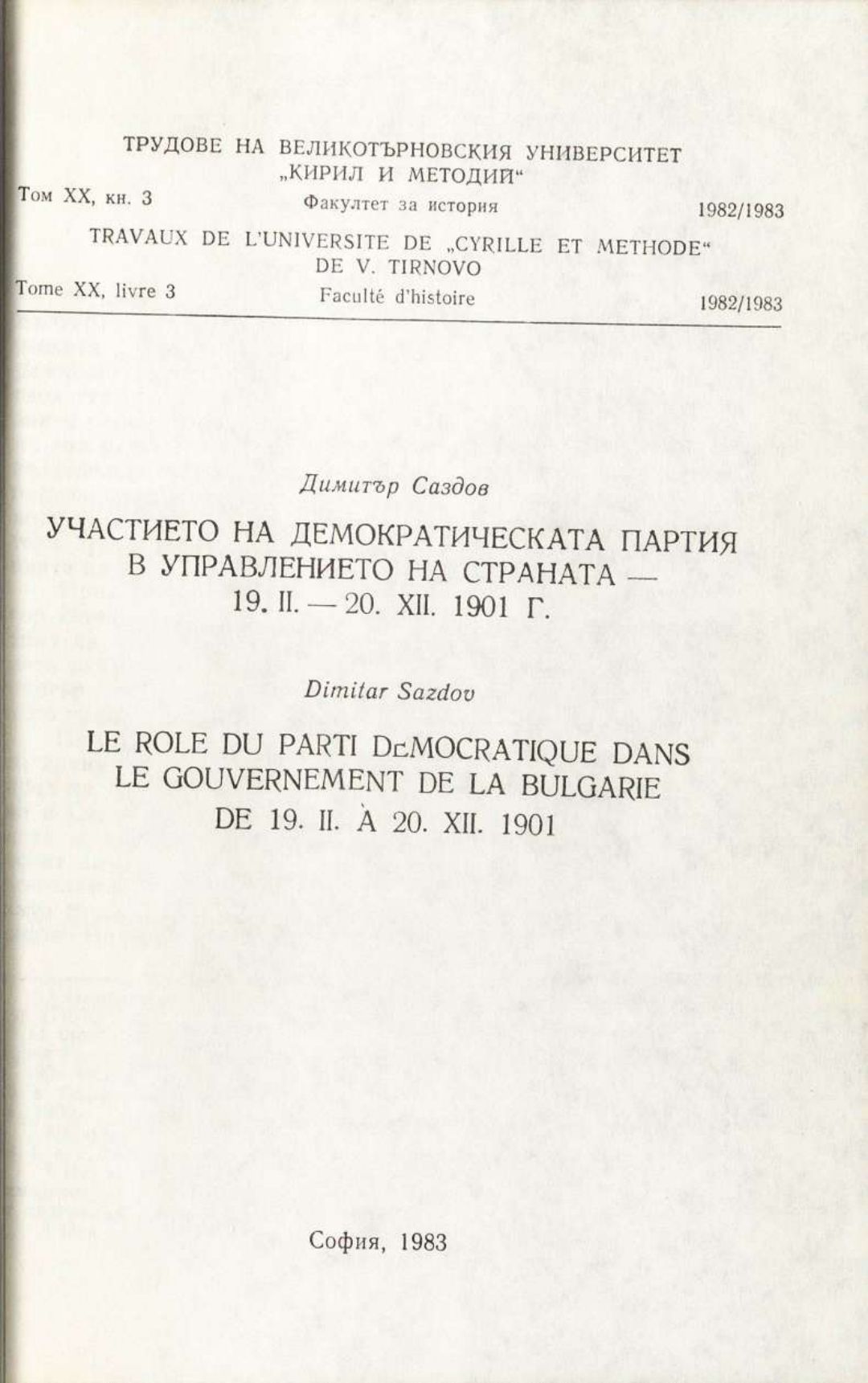 Том 20. Кн. 3. Трудове на Великотърновския университет "Св. св. Кирил и Методий". Исторически факултет = Travaux de L'universite St. St. Cyrille et Methode de V. Tirnovo. Faculte histoire