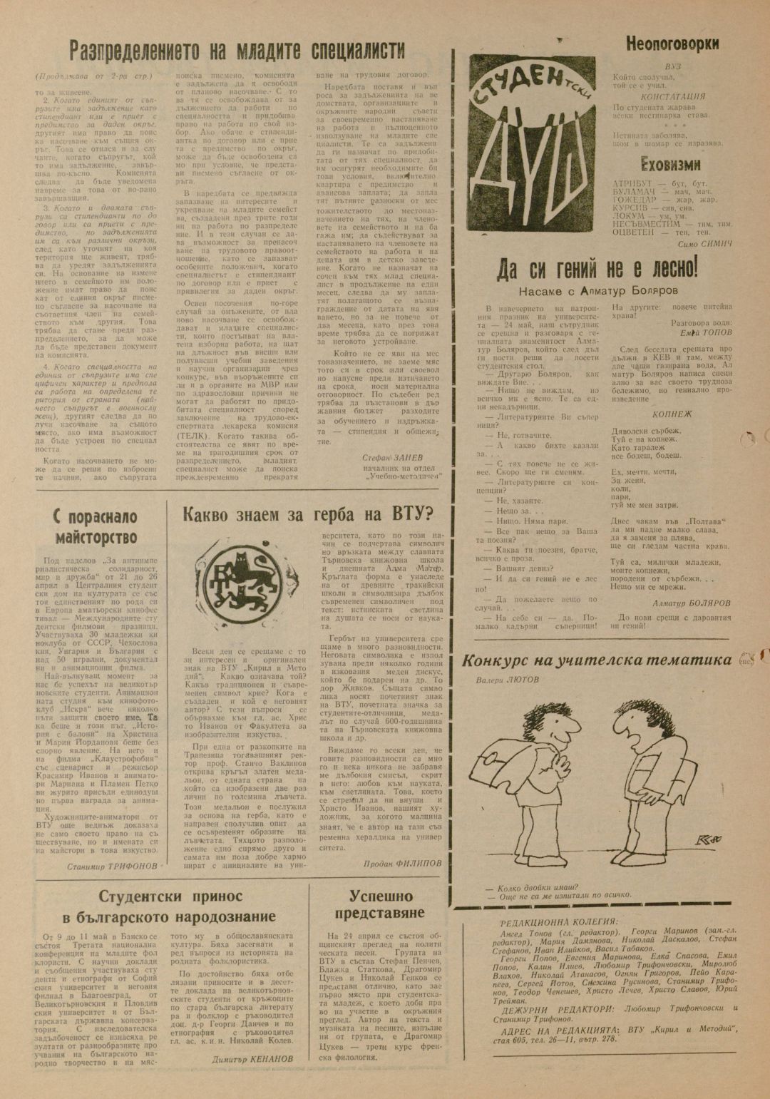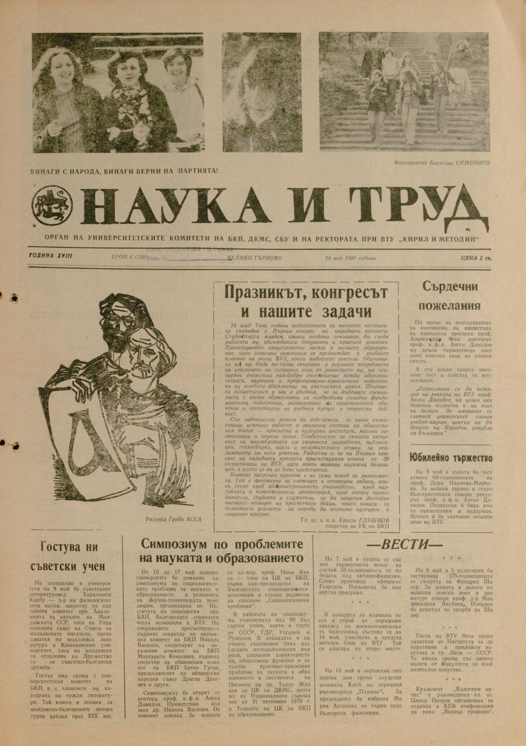 Год.19, 6 (230). Наука и труд : Наука и труд : Орган на университетските комитети на БКП, ДКМС, СБУ и на Ректората при ВТУ "Братя Кирил и Методий"