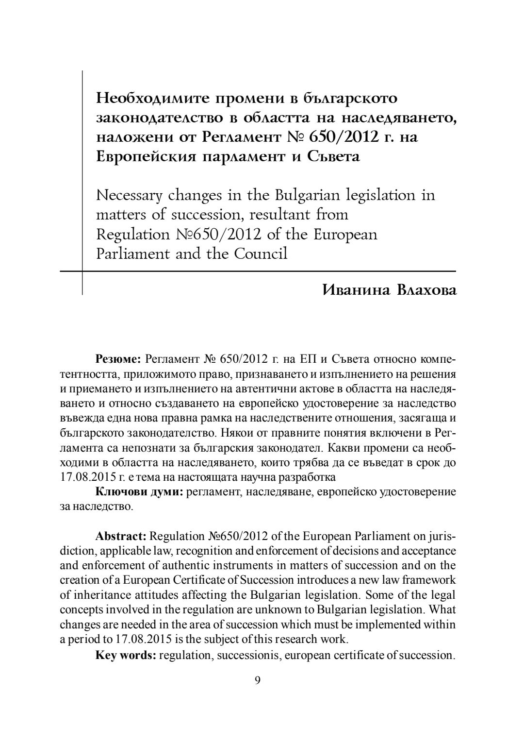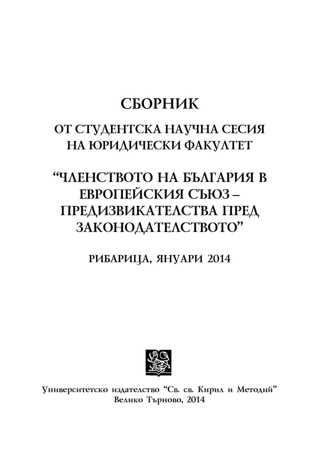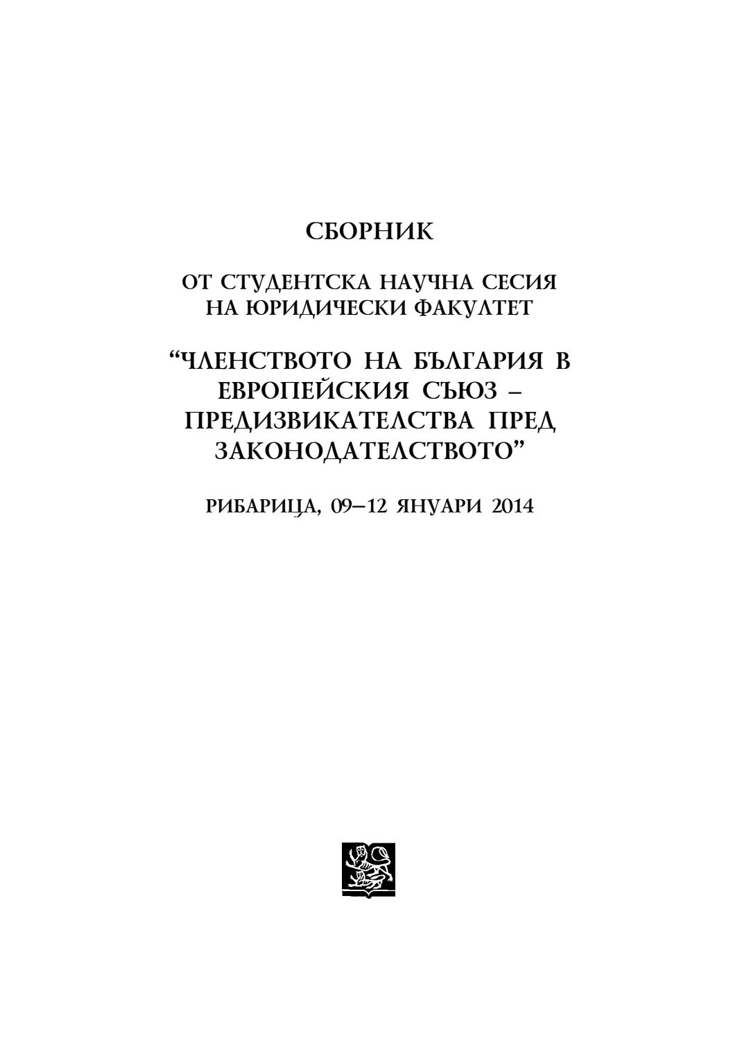 Сборник от студентска научна сесия на Юридически факултет "Членството на България в Европейския съюз - предизвикателства пред законодателството", Рибарица, януари 2014