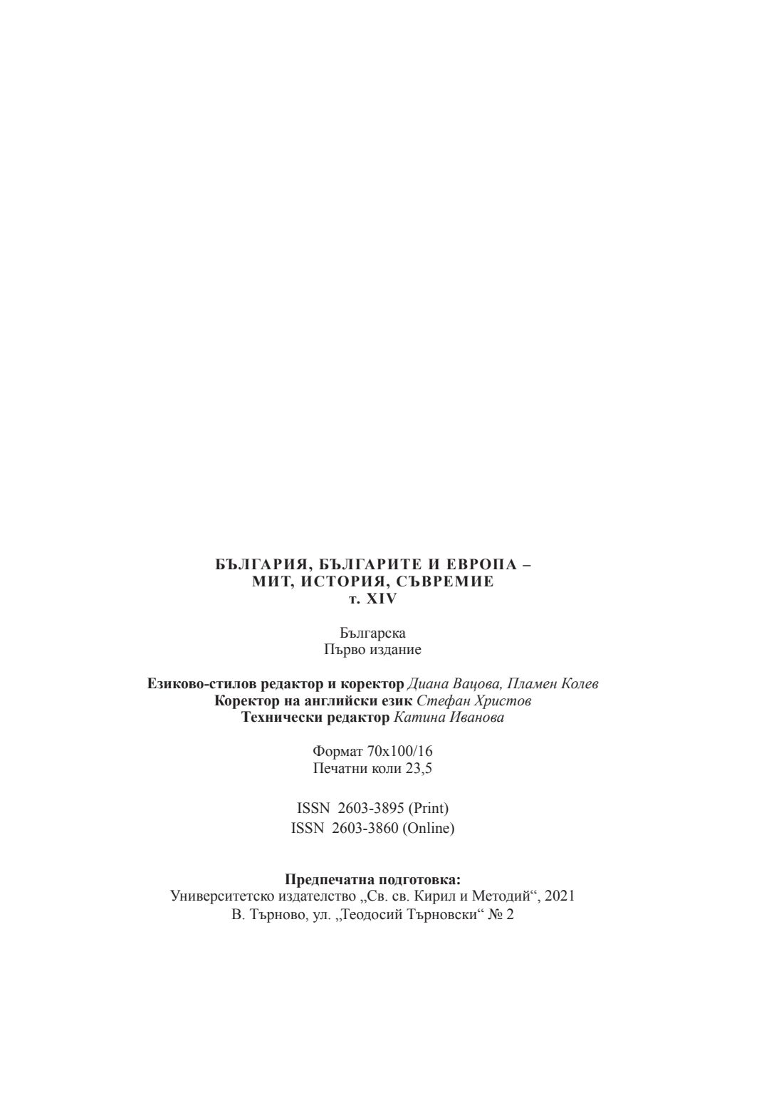[Т. 14.] България, българите и Европа - мит, история, съвремие : Научна конференция31 октомври 2019, В. Търново