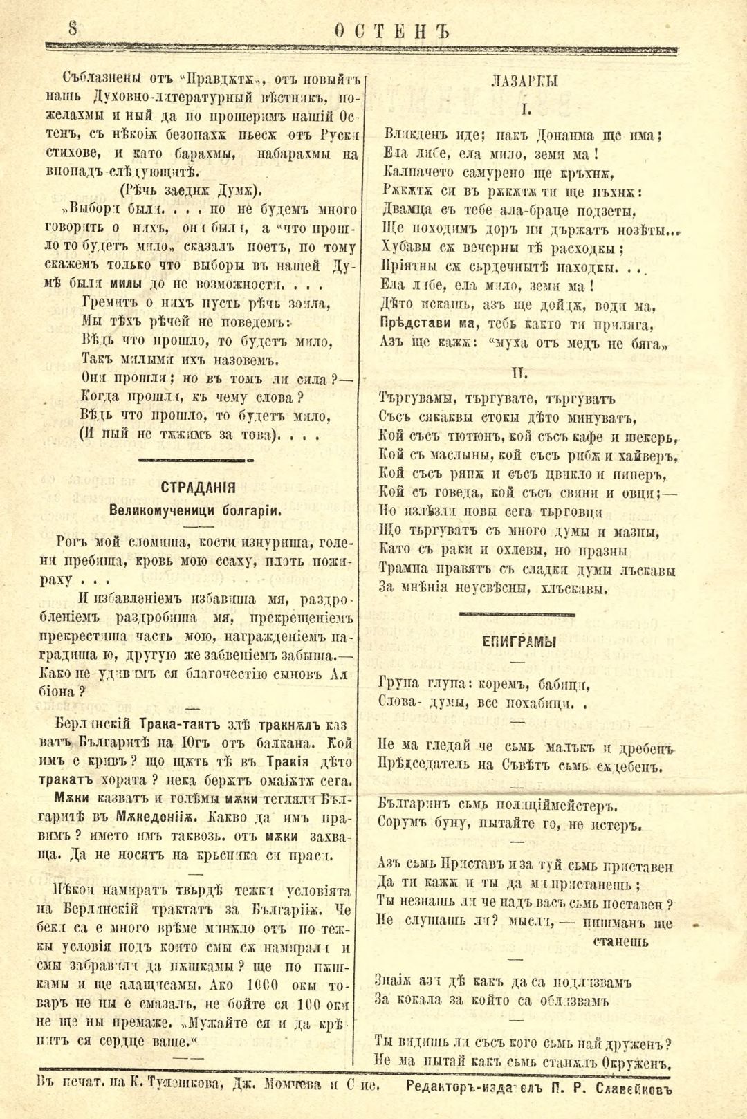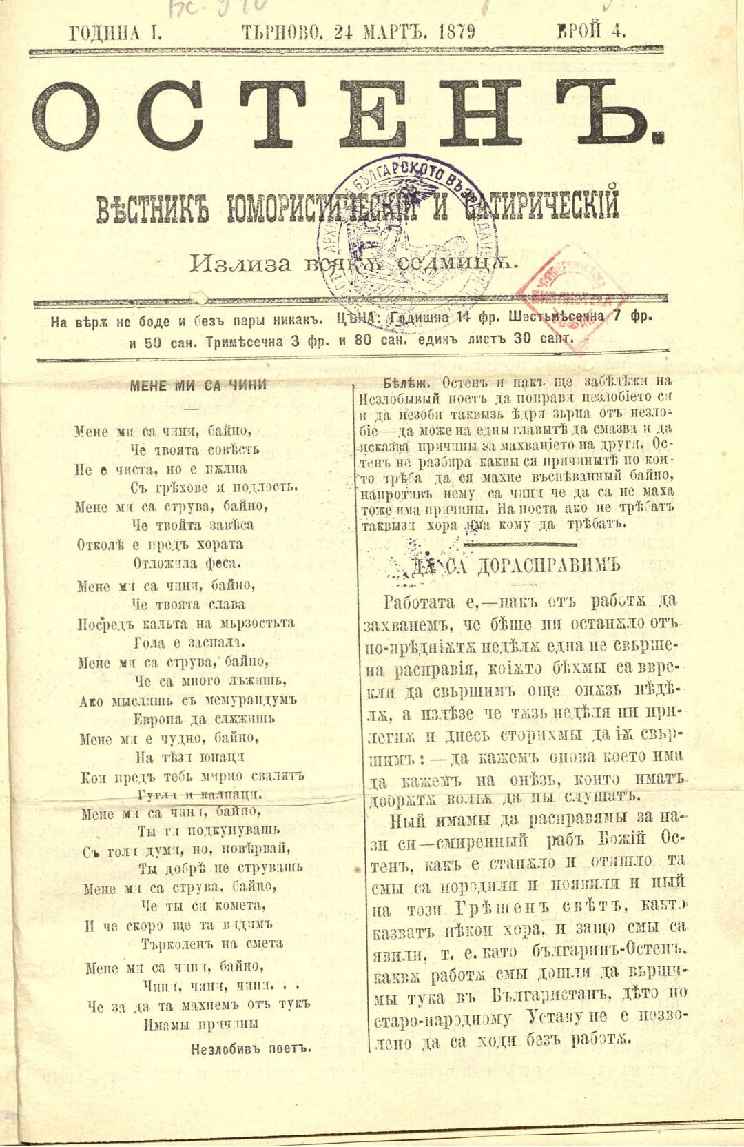Год. 1, бр. 4. Остен : Вестник юмористический и сатирический вестник