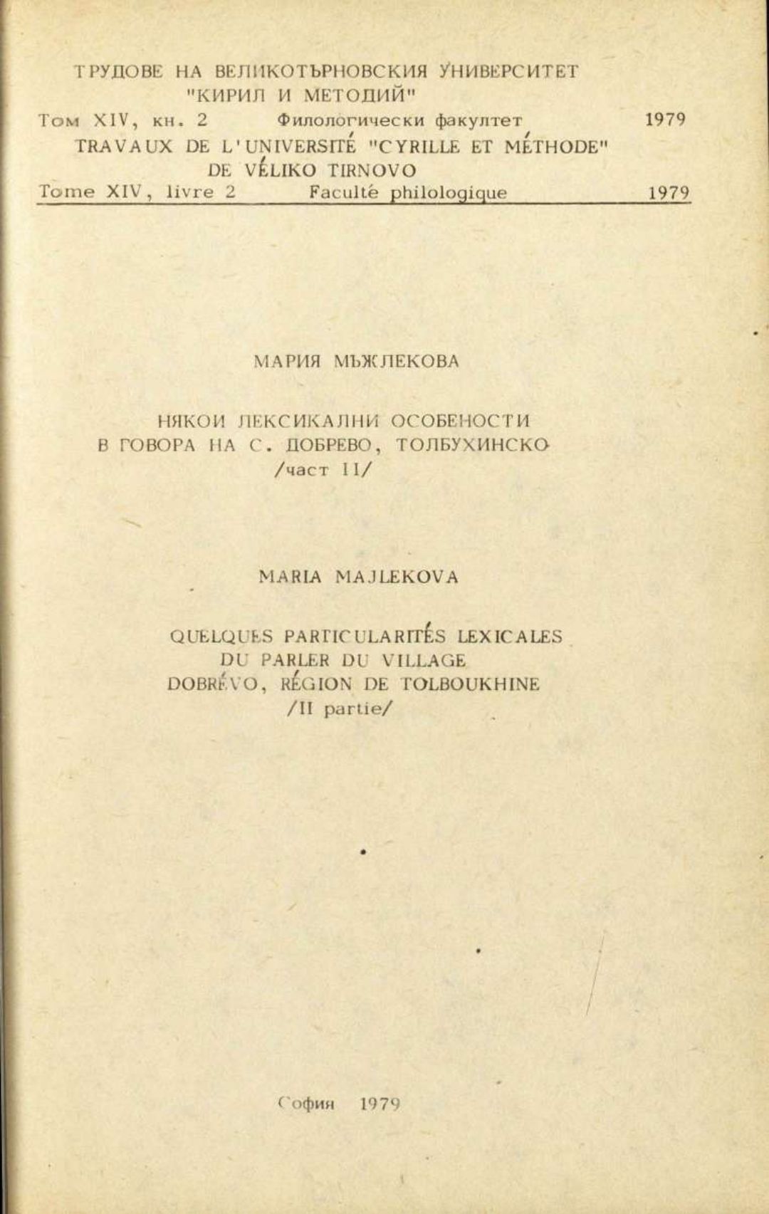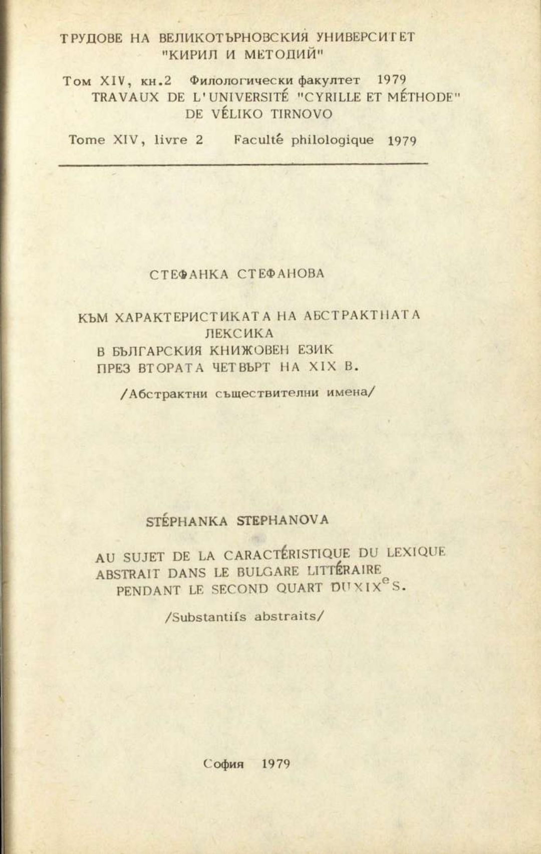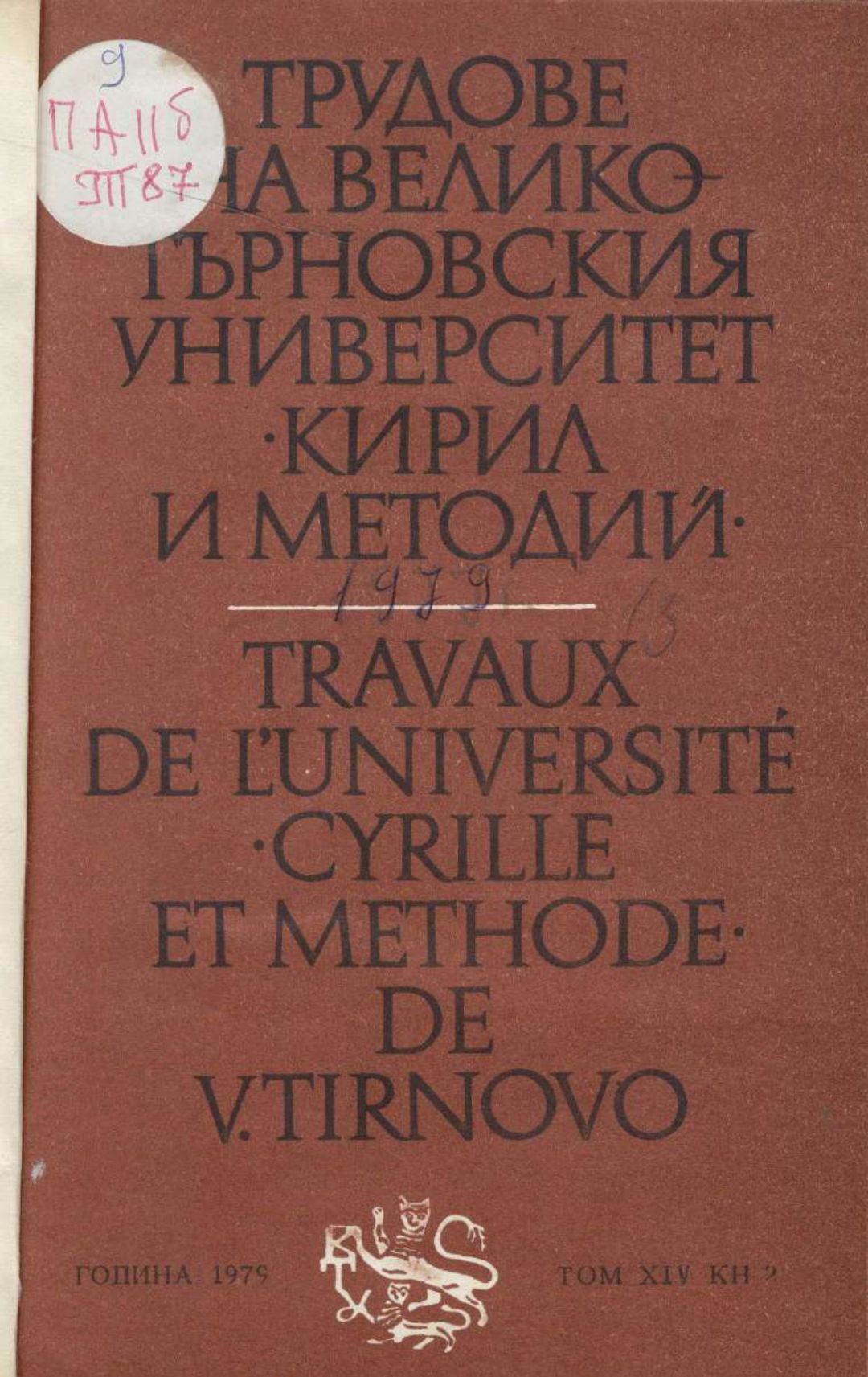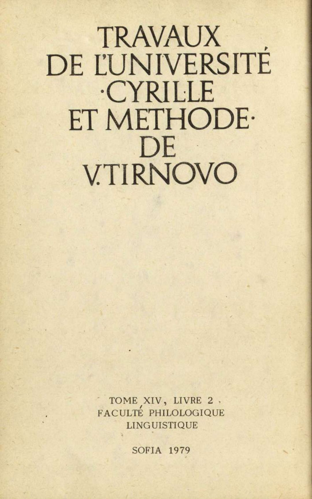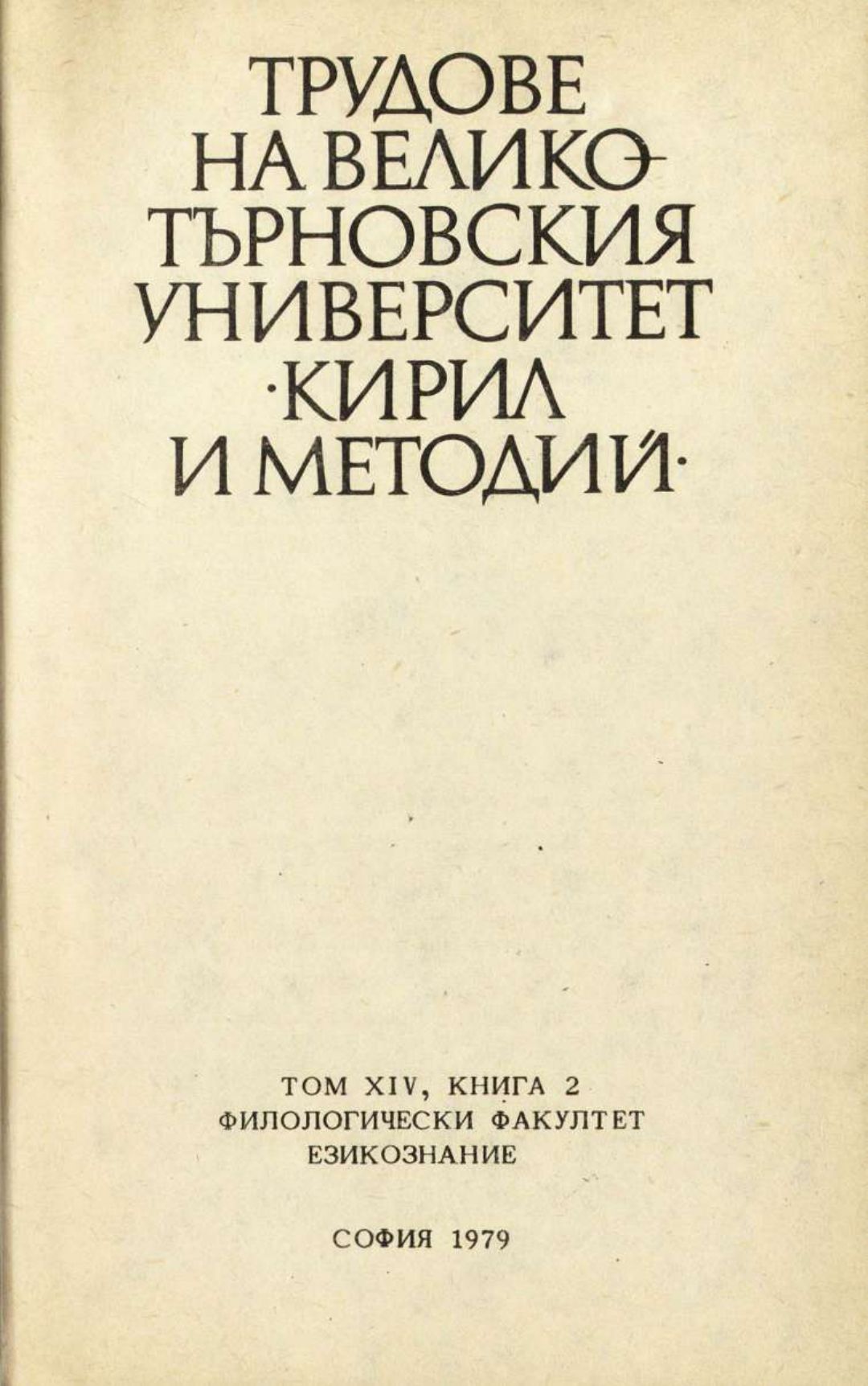 Том 14. Кн.2. Трудове на Великотърновския университет "Св. св. Кирил и Методий". Филологически факултет = Travaux de L'universite St. St. Cyrille et Methode de Veliko Tirnovo. Faculte de philologue Езикознание