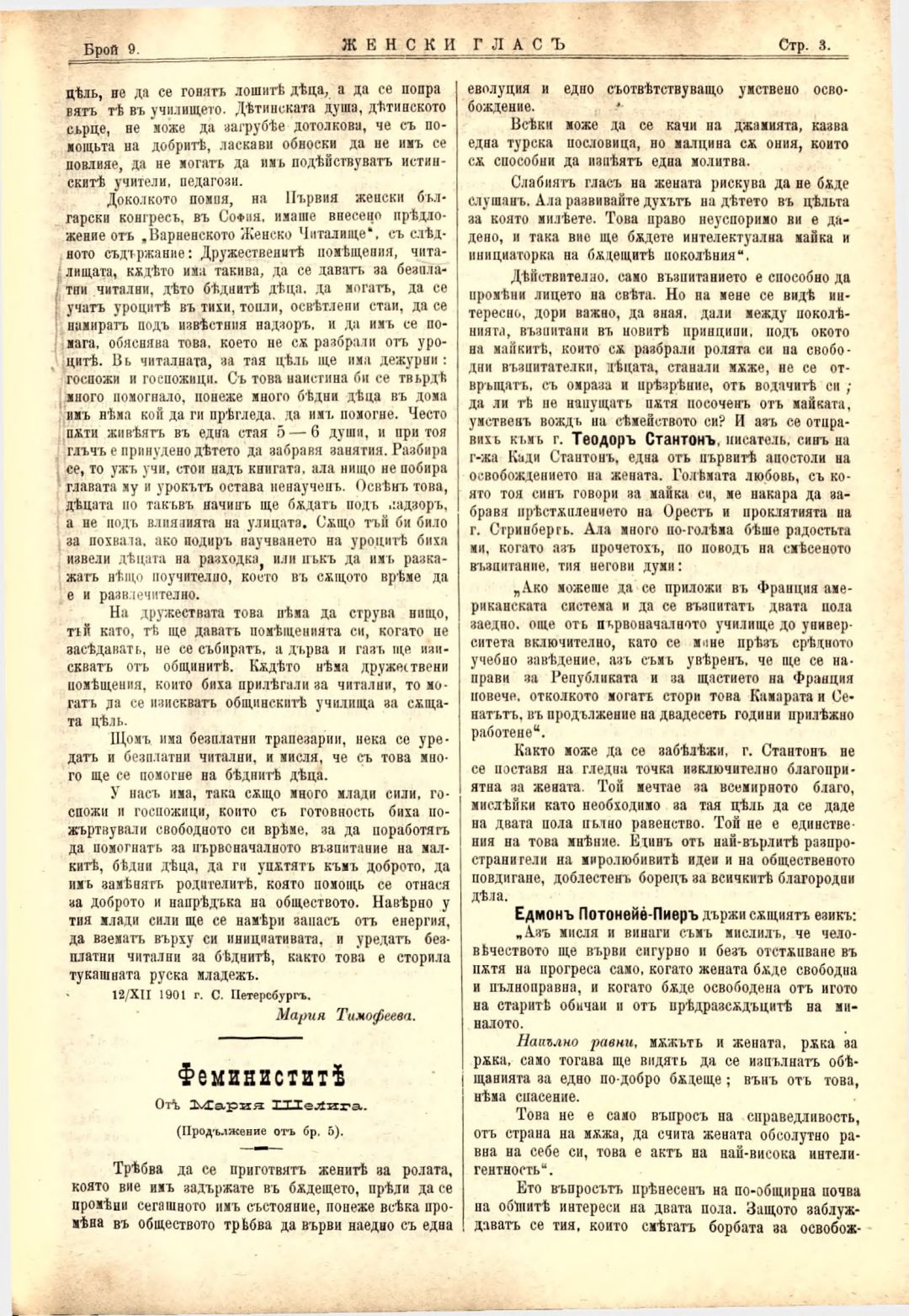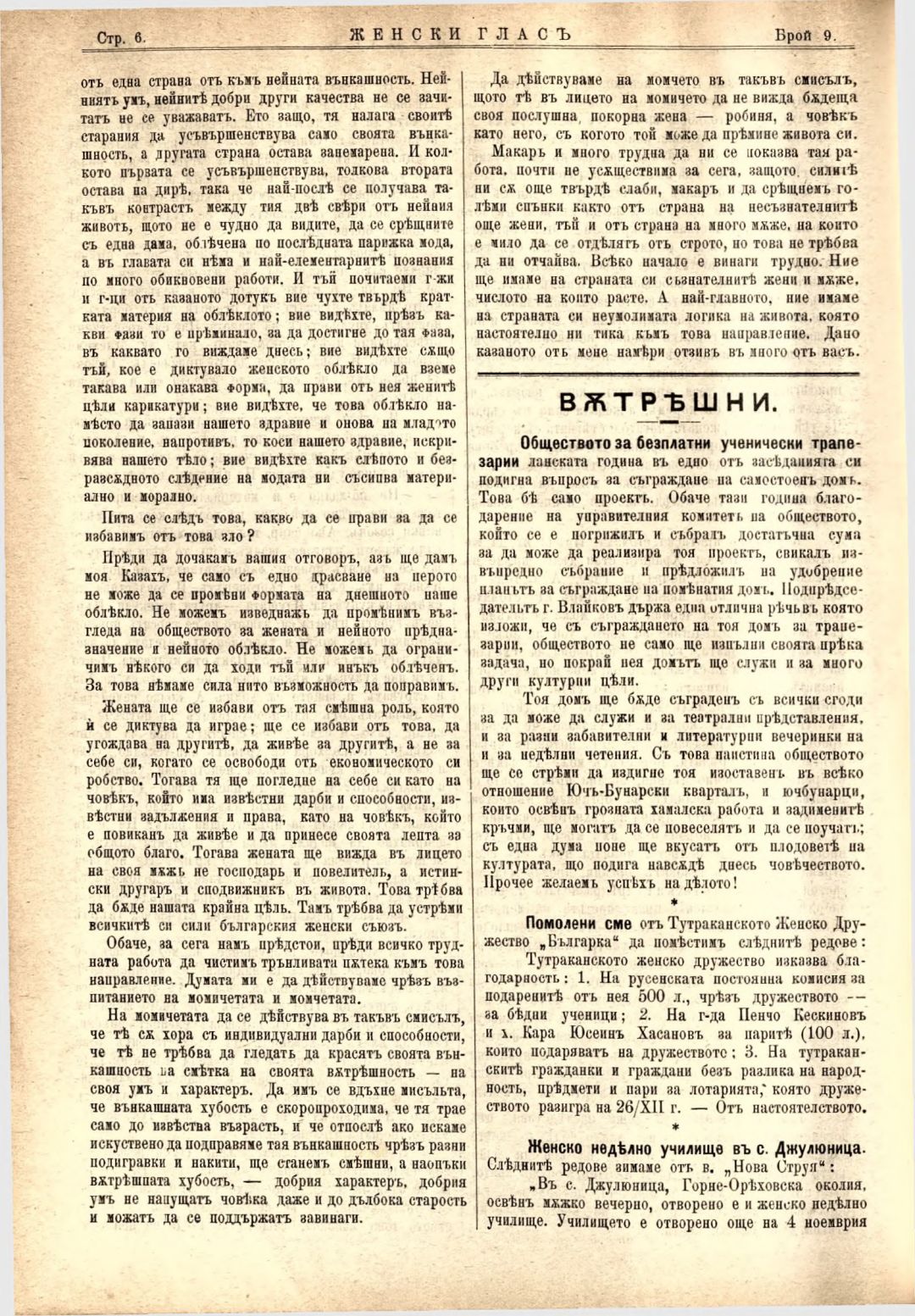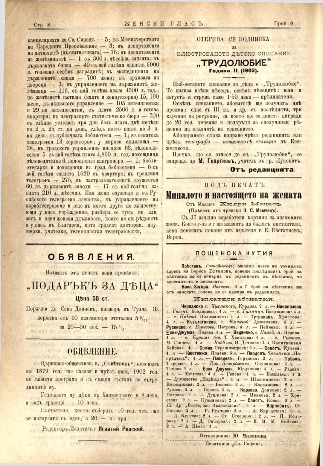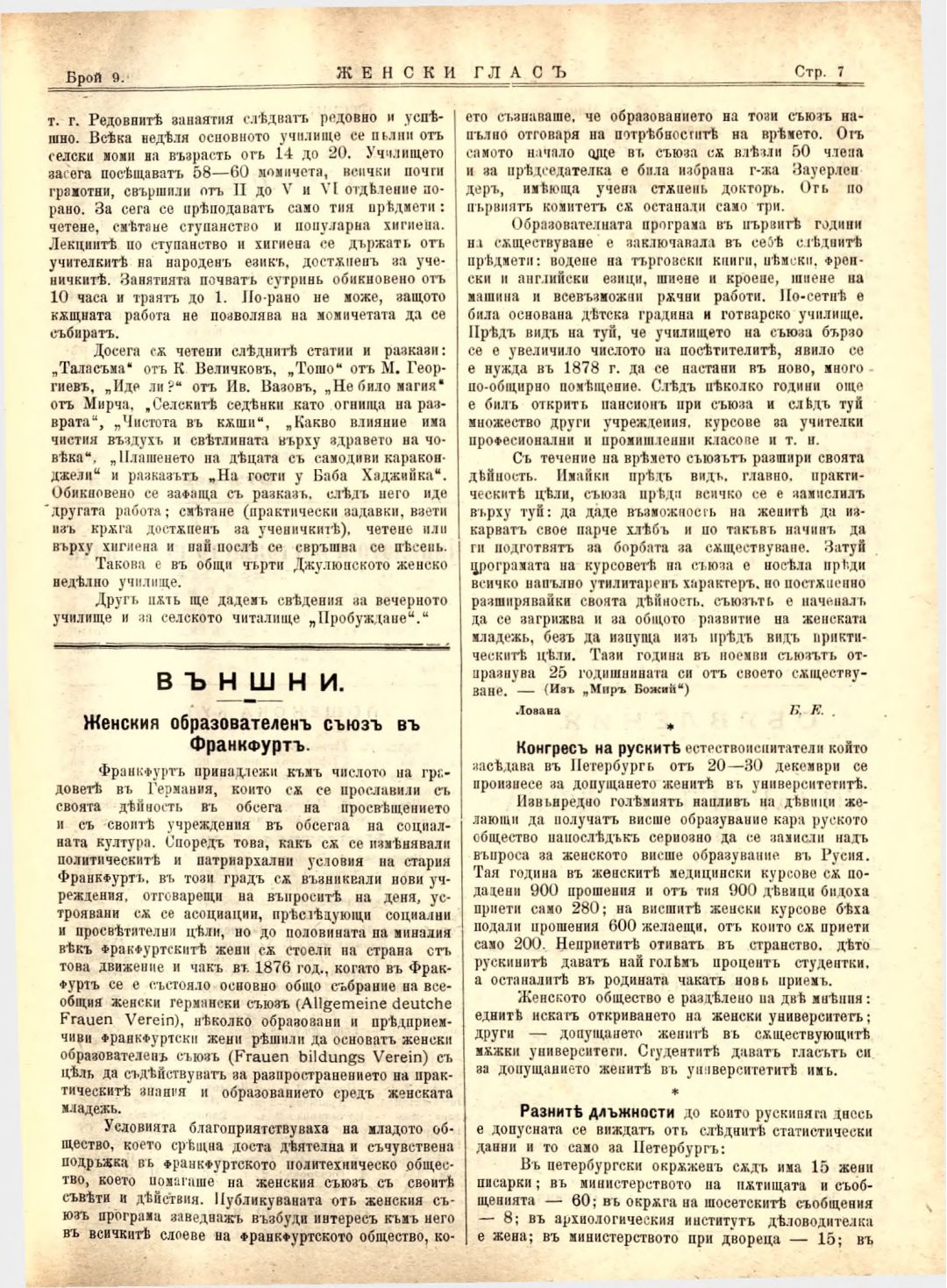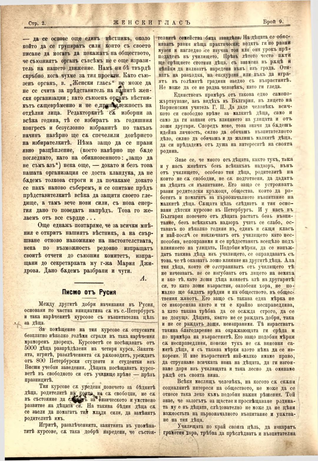 Год. 3, № 9. Женски глас : Орган на българския женски съюз
