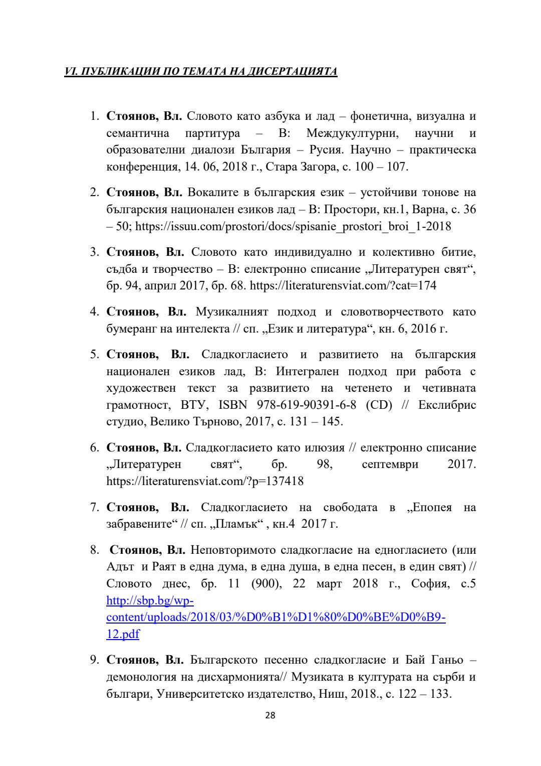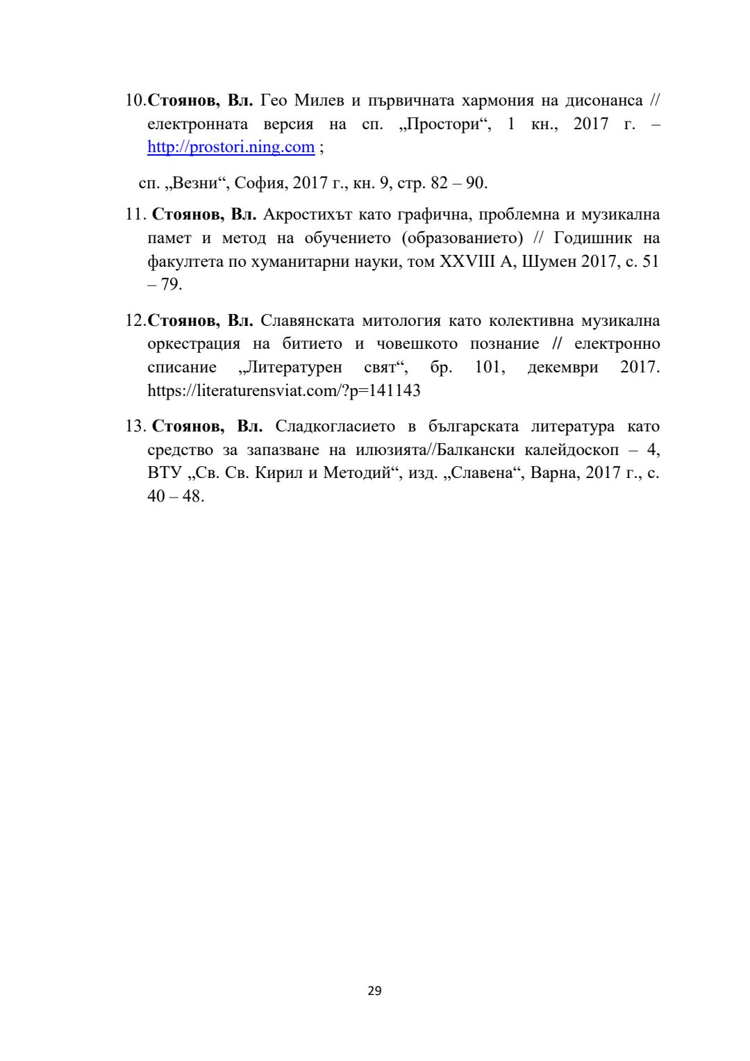Слово и музика в обучението по българска литература в училище (V - ХІІ клас) : Автореферат / Владимир Стоянов Стоянов ; Науч. ръководител Радослав Радев