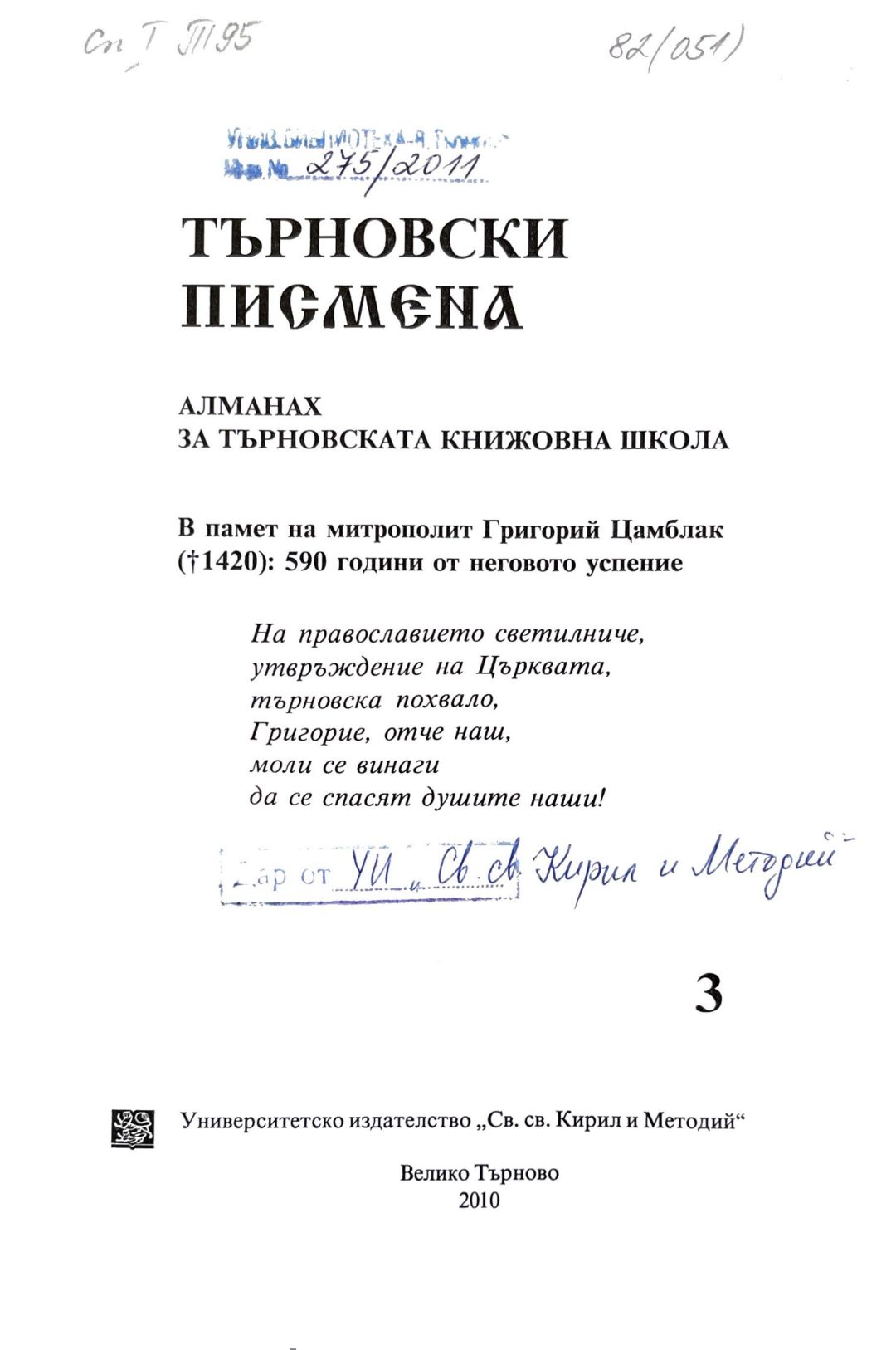 Кн. 3 (2010). Търновски писмена : Алманах за Търновската книжовна школа