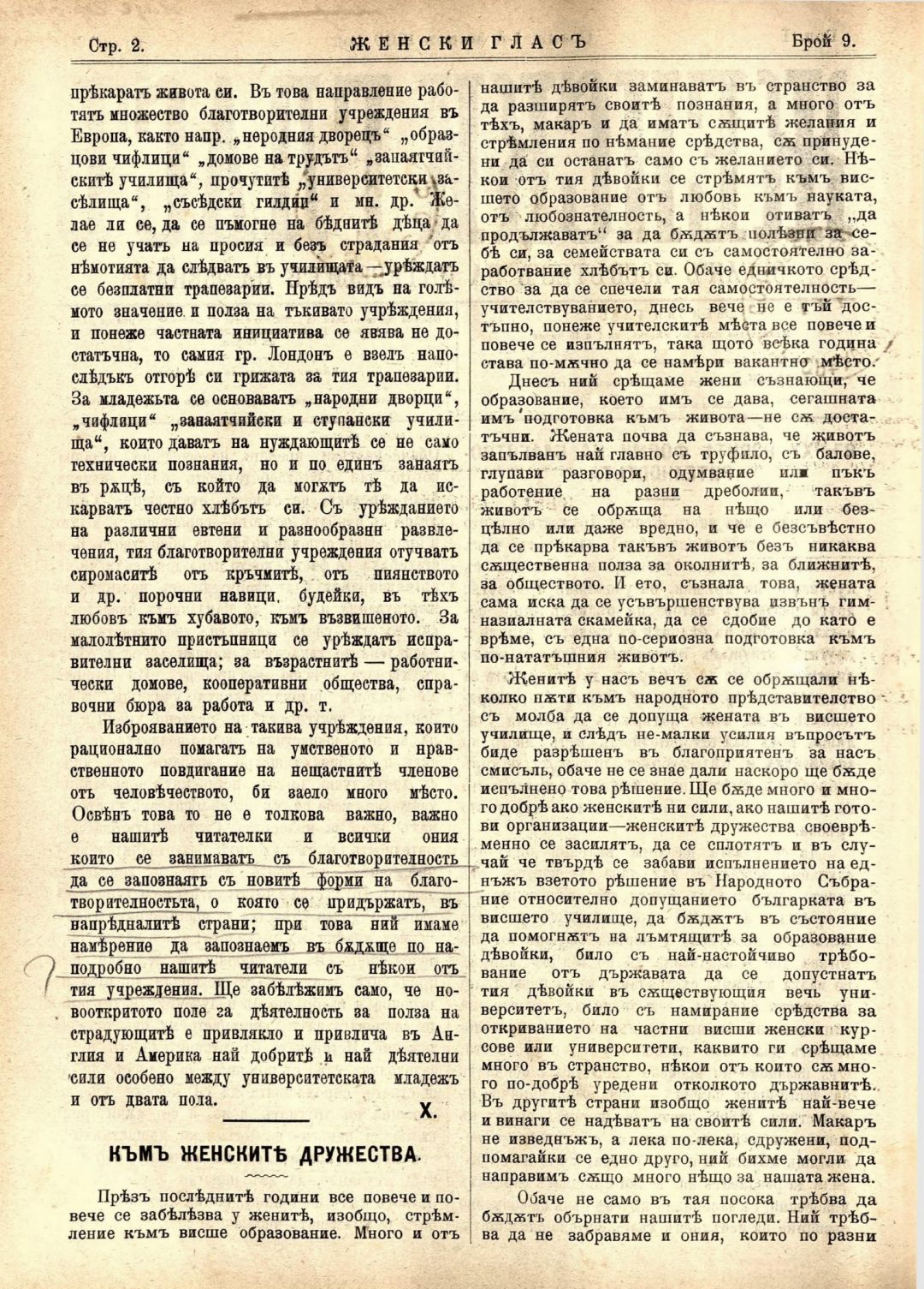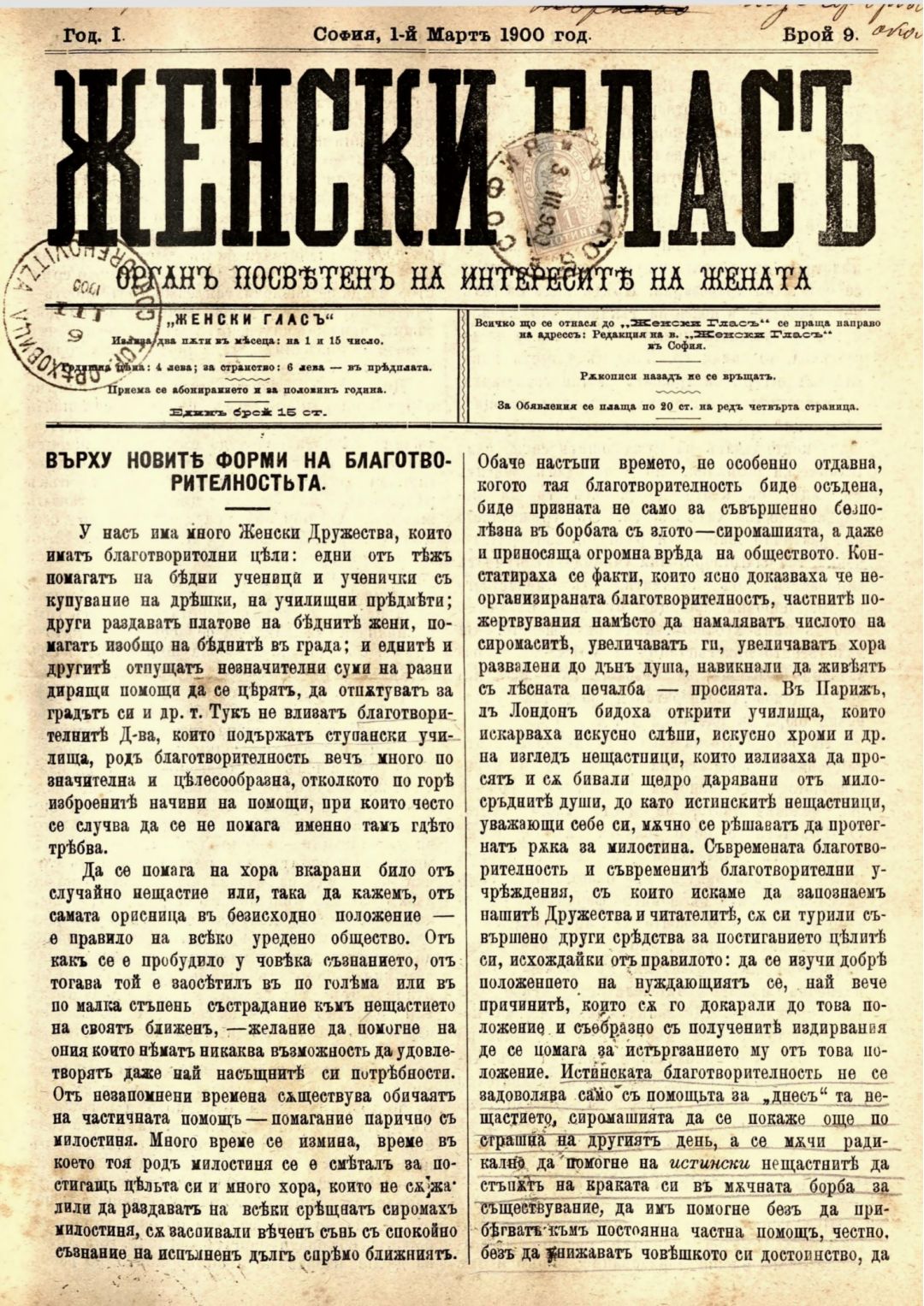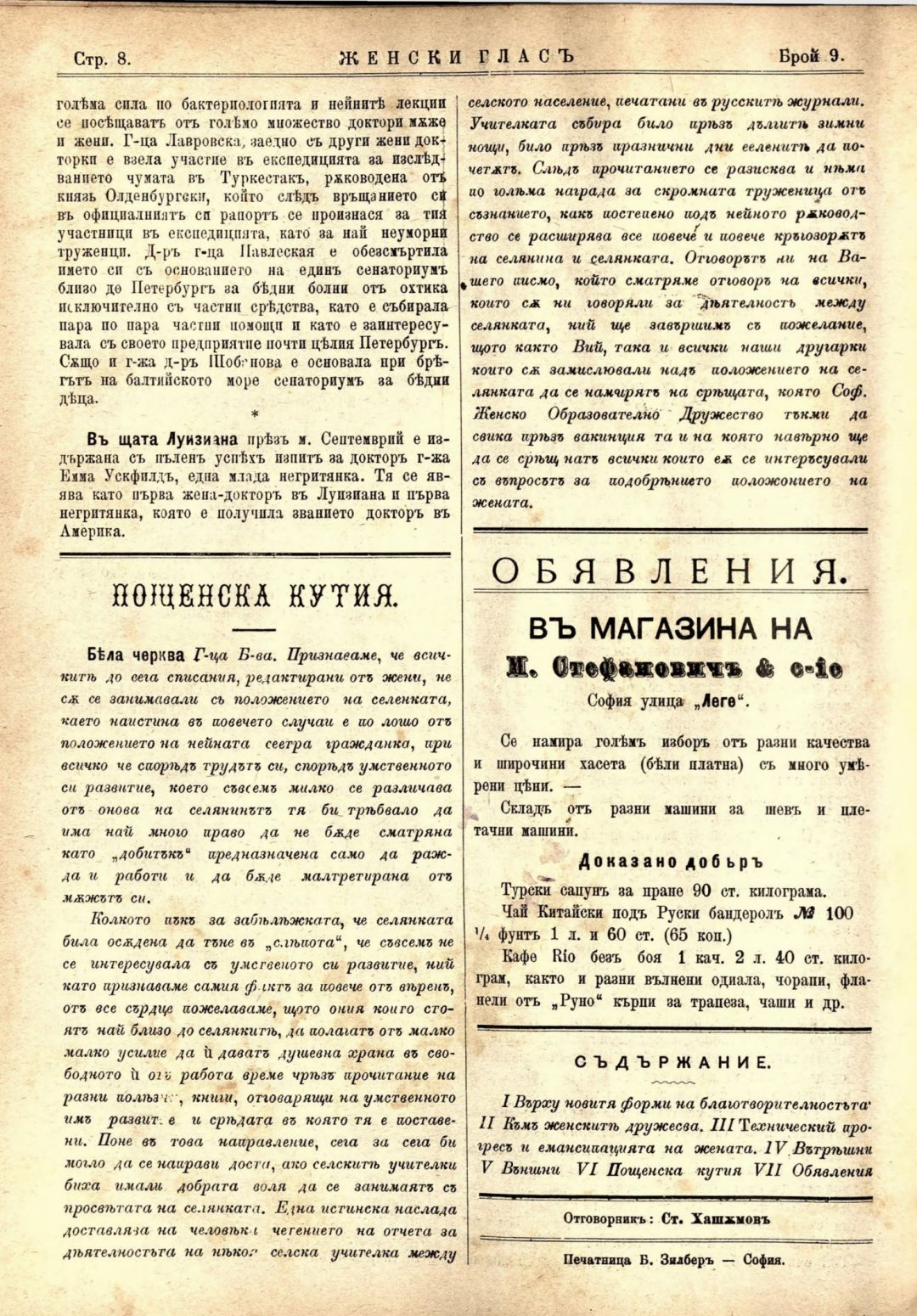 Год. 1, № 9. Женски глас : Орган, посветен на интересите на жената
