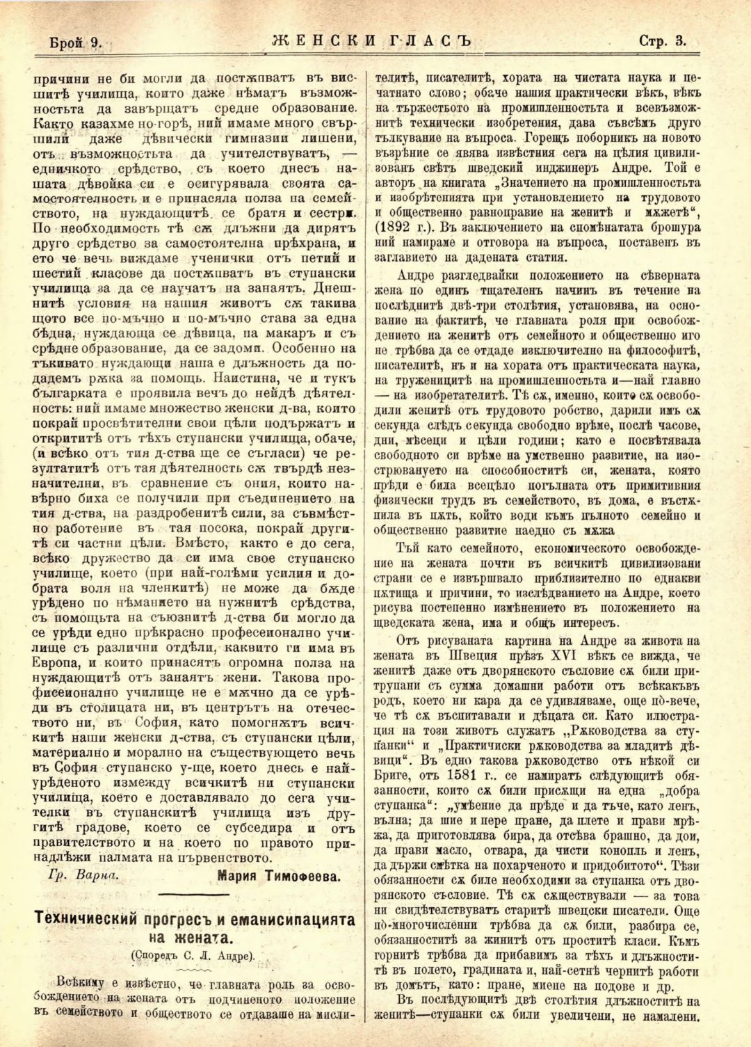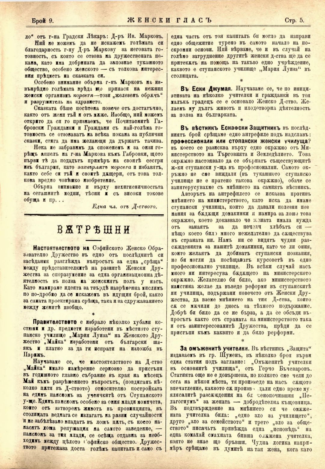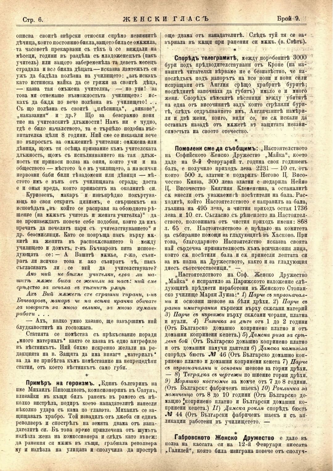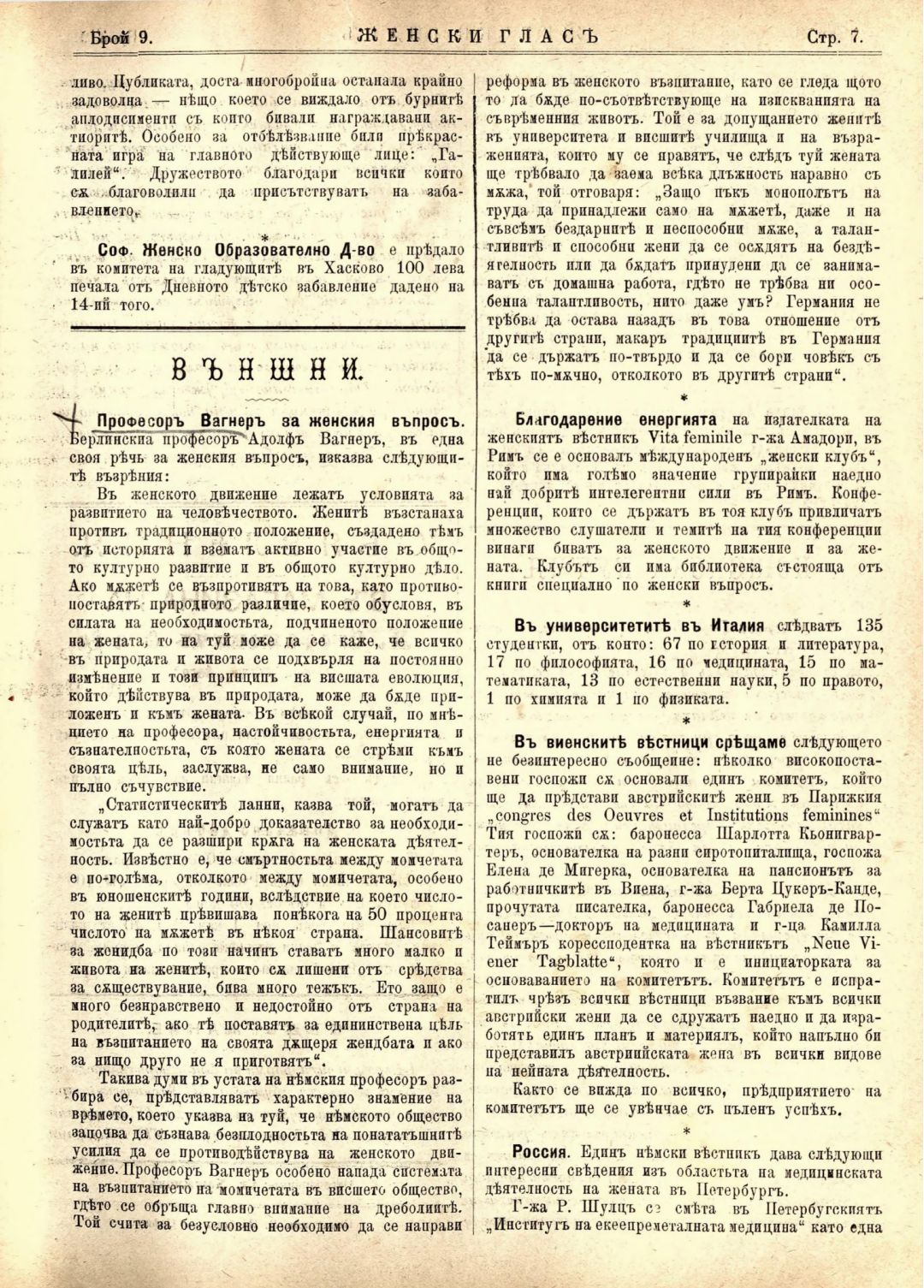Год. 1, № 9. Женски глас : Орган, посветен на интересите на жената